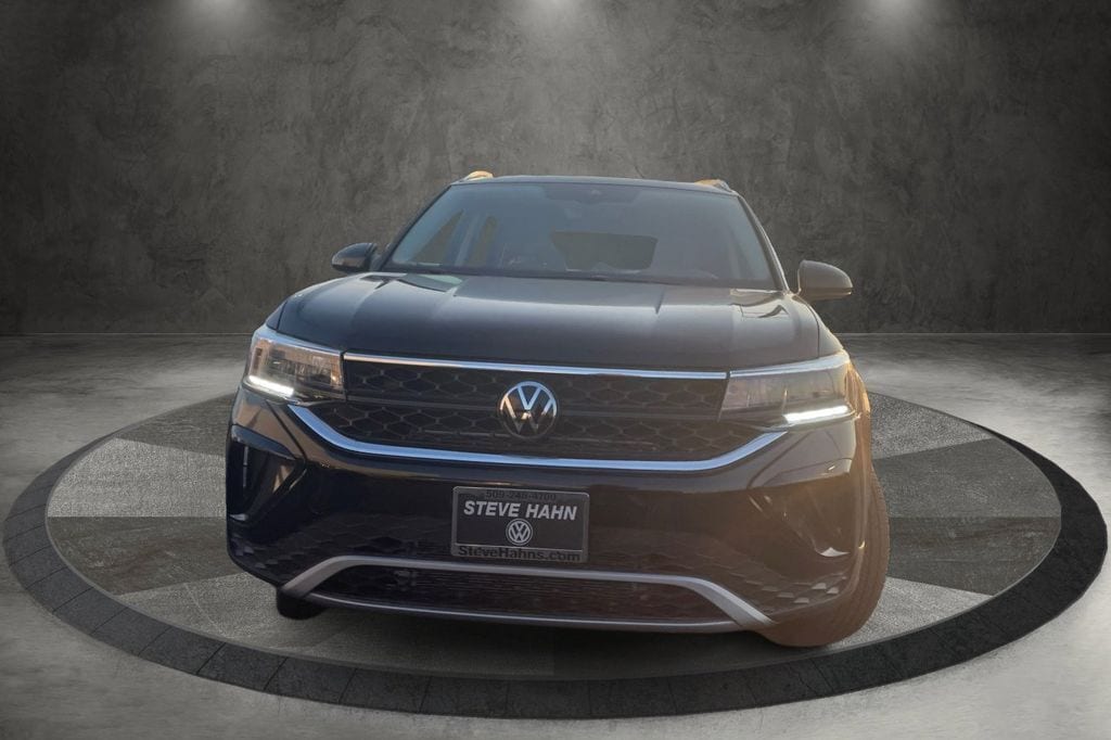 Pearl 2024 Volkswagen Taos 1.5T SE 1.5L I4 Turbocharged DOHC 16V LEV3-SULEV30 158hp 7-Speed DSG Automatic with Tiptronic AWD 4D Sport Utility 4-Wheel Disc Brakes, 5.20 Axle Ratio, 6 Speakers, ABS brakes, Active Blind Spot Monitor, Air Conditioning, Alloy wheels, AM/FM radio: SiriusXM with 360L, Auto High-beam Headlights, Automatic temperature control, Brake assist, Bumpers: body-color, CloudTex & Cloth Seating Surfaces, Compass, Delay-off headlights, Driver door bin, Driver vanity mirror, Dual front impact airbags, Dual front side impact airbags, Electronic Stability Control, Emergency communication system: VW Car-Net Safe & Secure 5-year, Exterior Parking Camera Rear, Four wheel independent suspension, Front anti-roll bar, Front Bucket Seats, Front Center Armrest, Front dual zone A/C, Front reading lights, Front Strut Rear Multi-Link Suspension, Fully automatic headlights, Heated door mirrors, Heated Front Bucket Seats, Heated front seats, Heated steering wheel, Illuminated entry, Leather Shift Knob, Low tire pressure warning, Occupant sensing airbag, Outside temperature display, Overhead airbag, Overhead console, Panic alarm, Passenger door bin, Passenger vanity mirror, Power door mirrors, Power driver seat, Power steering, Power windows, Radio data system, Radio: MIB3 Composition Media AM/FM/HD, Rain sensing wipers, Rear anti-roll bar, Rear seat center armrest, Rear window defroster, Rear window wiper, Remote keyless entry, Security system, Speed control, Speed-sensing steering, Split folding rear seat, Spoiler, Steering wheel mounted audio controls, Tachometer, Telescoping steering wheel, Tilt steering wheel, Traction control, Trip computer, Variably intermittent wipers, Wheels: 18" 2-Tone Machined Alloy.