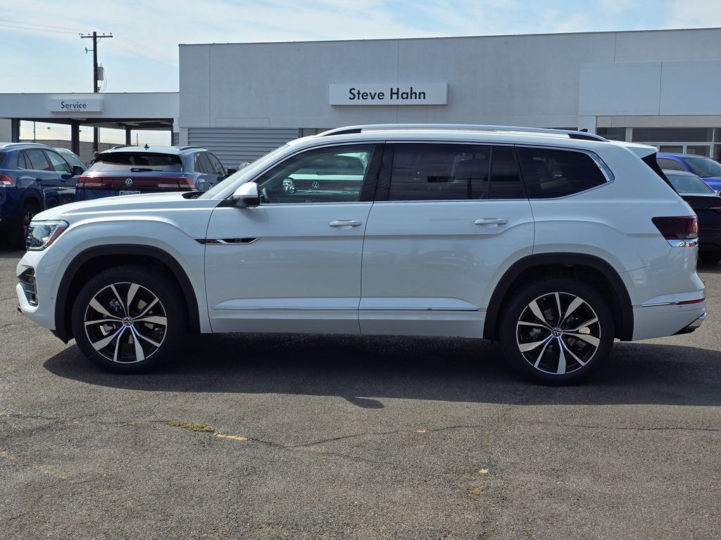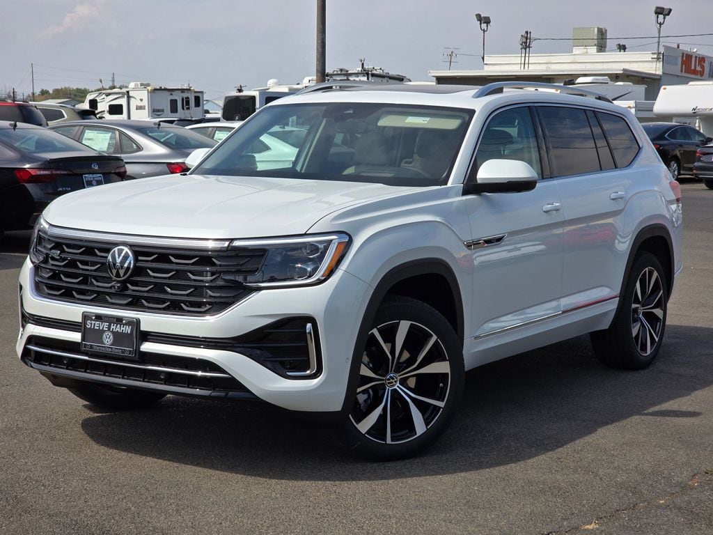 Opal White 2025 Volkswagen Atlas 2.0T SEL Premium R-Line 2.0L TSI 8-Speed Automatic with Tiptronic AWD 4D Sport Utility 10 Speakers, 3rd row seats: split-bench, 4-Wheel Disc Brakes, ABS brakes, Air Conditioning, Alloy wheels, AM/FM radio: SiriusXM with 360L, Auto High-beam Headlights, Auto-dimming Rear-View mirror, Automatic temperature control, Brake assist, Bumpers: body-color, Compass, Delay-off headlights, Driver door bin, Driver vanity mirror, Dual front impact airbags, Dual front side impact airbags, Electronic Stability Control, Emergency communication system: VW Car-Net Safe & Secure 5-year, Exterior Parking Camera Rear, Four wheel independent suspension, Four-wheel Independent Suspension, Front anti-roll bar, Front Bucket Seats, Front Center Armrest, Front dual zone A/C, Front fog lights, Front reading lights, Fully automatic headlights, harman/kardon® Speakers, Heads-Up Display, Heated & Actively Ventilated Front Bucket Seats, Heated door mirrors, Heated front seats, Heated rear seats, Heated steering wheel, Illuminated entry, Leather steering wheel, Low tire pressure warning, Memory seat, Navigation System, Occupant sensing airbag, Outside temperature display, Overhead airbag, Overhead console, Panic alarm, Passenger door bin, Passenger vanity mirror, Perforated Vienna Leather Seating Surfaces, Power door mirrors, Power driver seat, Power Liftgate, Power moonroof: Panoramic, Power passenger seat, Power steering, Power windows, Radio data system, Radio: MIB3 Discover Media w/Navigation, Rain sensing wipers, Rear air conditioning, Rear anti-roll bar, Rear audio controls, Rear reading lights, Rear seat center armrest, Rear window defroster, Rear window wiper, Remote keyless entry, Security system, Speed control, Speed-sensing steering, Split folding rear seat, Spoiler, Sport steering wheel, Steering wheel mounted audio controls, Tachometer, Telescoping steering wheel, Tilt steering wheel, Traction control, Trip computer, Turn signal indicator mirrors, Variably intermittent wipers, Ventilated front seats, Wheels: 21" 2-Tone Machined Alloy. Price includes: $3500 - Retail Customer Bonus. Exp. 11/03/2025