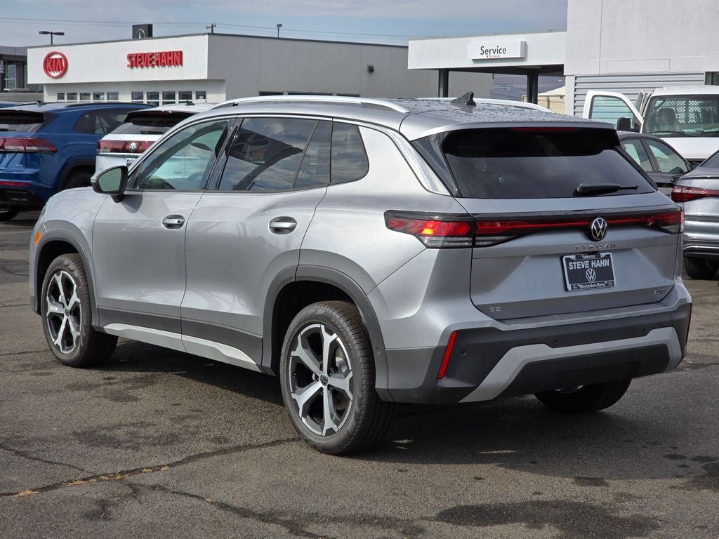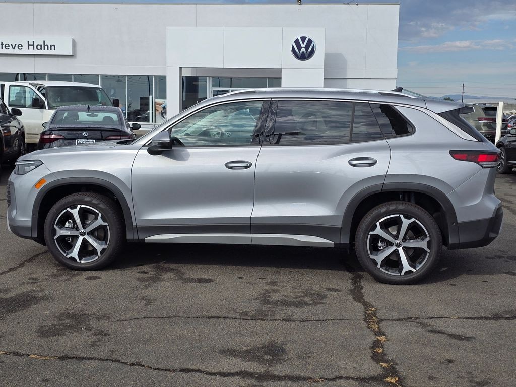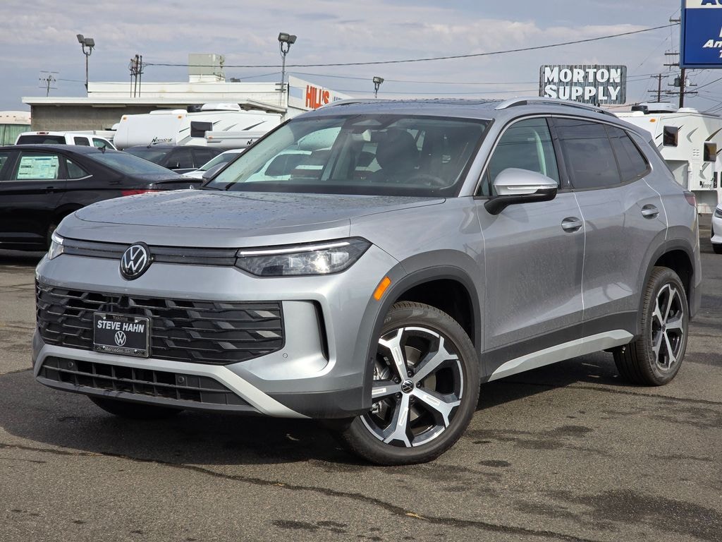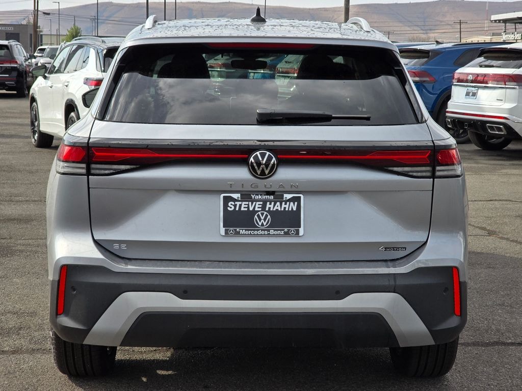 Silver Metallic 2025 Volkswagen Tiguan 2.0T SE 2.0L TSI DOHC 8-Speed Automatic AWD 4D Sport Utility AWD, 4-Wheel Disc Brakes, 4-Wheel Independent Suspension, 7 Speakers, ABS brakes, Air Conditioning, Alloy wheels, AM/FM radio: SiriusXM with 360L, Auto High-beam Headlights, Auto-dimming Rear-View mirror, Automatic temperature control, Brake assist, Bumpers: body-color, Compass, Delay-off headlights, Driver door bin, Driver vanity mirror, Dual front impact airbags, Dual front side impact airbags, Electronic Stability Control, Emergency communication system: VW Car-Net Safe & Secure 5-year, Exterior Parking Camera Rear, Four wheel independent suspension, Front anti-roll bar, Front Bucket Seats, Front Center Armrest, Front dual zone A/C, Front reading lights, Fully automatic headlights, Heated door mirrors, Heated Front Seats, Heated front seats, Illuminated entry, Knee airbag, Leather Shift Knob, Low tire pressure warning, Occupant sensing airbag, Outside temperature display, Overhead airbag, Overhead console, Panic alarm, Passenger door bin, Passenger vanity mirror, Perforated V-Tex Leatherette Seating Surfaces, Power door mirrors, Power driver seat, Power Liftgate, Power steering, Power windows, Radio data system, Radio: MIB4 Composition Media Touchscreen AM/FM, Rain sensing wipers, Rear anti-roll bar, Rear reading lights, Rear seat center armrest, Rear side impact airbag, Rear window defroster, Rear window wiper, Remote keyless entry, Security system, Speed control, Speed-sensing steering, Split folding rear seat, Spoiler, Steering wheel mounted audio controls, Tachometer, Telescoping steering wheel, Tilt steering wheel, Traction control, Trip computer, Turn signal indicator mirrors, Variably intermittent wipers, Wheels: 19" 2-Tone Machined Alloy, AWD. Price includes: $1500 - Retail Customer Bonus. Exp. 11/03/2025