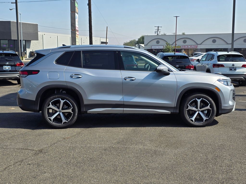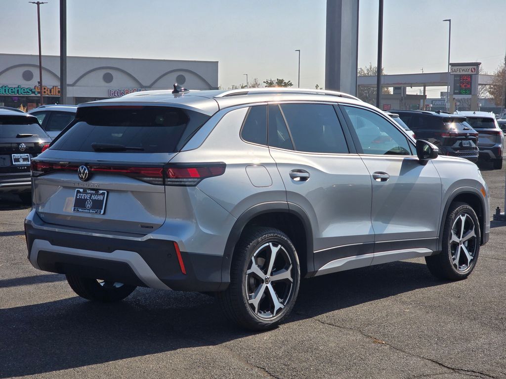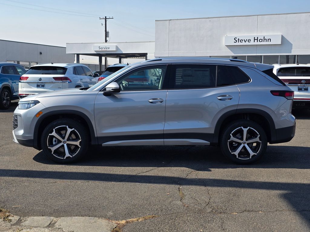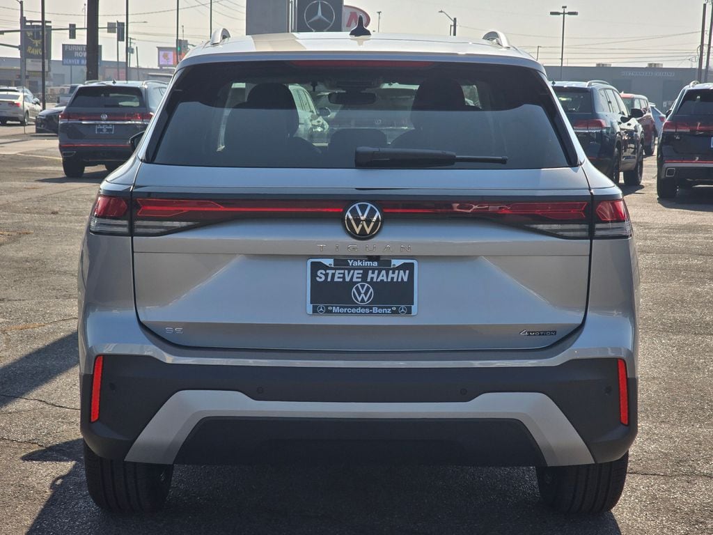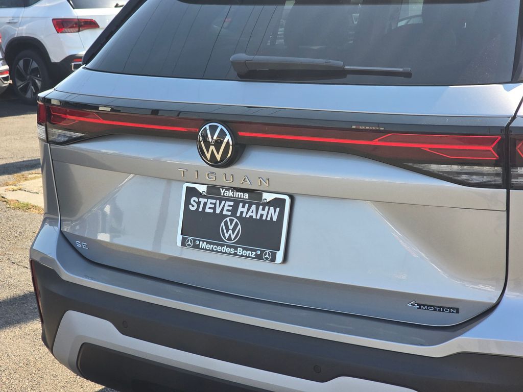Silver Metallic 2025 Volkswagen Tiguan 2.0T SE 2.0L TSI DOHC 8-Speed Automatic AWD 4D Sport Utility AWD, 4-Wheel Disc Brakes, 4-Wheel Independent Suspension, 7 Speakers, ABS brakes, Air Conditioning, Alloy wheels, AM/FM radio: SiriusXM with 360L, Auto High-beam Headlights, Auto-dimming Rear-View mirror, Automatic temperature control, Brake assist, Bumpers: body-color, Compass, Delay-off headlights, Driver door bin, Driver vanity mirror, Dual front impact airbags, Dual front side impact airbags, Electronic Stability Control, Emergency communication system: VW Car-Net Safe & Secure 5-year, Exterior Parking Camera Rear, Four wheel independent suspension, Front anti-roll bar, Front Bucket Seats, Front Center Armrest, Front dual zone A/C, Front reading lights, Fully automatic headlights, Heated door mirrors, Heated Front Seats, Heated front seats, Illuminated entry, Knee airbag, Leather Shift Knob, Low tire pressure warning, Occupant sensing airbag, Outside temperature display, Overhead airbag, Overhead console, Panic alarm, Passenger door bin, Passenger vanity mirror, Perforated V-Tex Leatherette Seating Surfaces, Power door mirrors, Power driver seat, Power Liftgate, Power steering, Power windows, Radio data system, Radio: MIB4 Composition Media Touchscreen AM/FM, Rain sensing wipers, Rear anti-roll bar, Rear reading lights, Rear seat center armrest, Rear side impact airbag, Rear window defroster, Rear window wiper, Remote keyless entry, Security system, Speed control, Speed-sensing steering, Split folding rear seat, Spoiler, Steering wheel mounted audio controls, Tachometer, Telescoping steering wheel, Tilt steering wheel, Traction control, Trip computer, Turn signal indicator mirrors, Variably intermittent wipers, Wheels: 19" 2-Tone Machined Alloy, AWD. Price includes: $1500 - Retail Customer Bonus. Exp. 01/05/2026