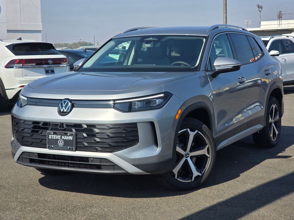 Silver Metallic 2025 Volkswagen Tiguan 2.0T SE 2.0L TSI DOHC 8-Speed Automatic AWD 4D Sport Utility AWD, 4-Wheel Disc Brakes, 4-Wheel Independent Suspension, 7 Speakers, ABS brakes, Air Conditioning, Alloy wheels, AM/FM radio: SiriusXM with 360L, Auto High-beam Headlights, Auto-dimming Rear-View mirror, Automatic temperature control, Brake assist, Bumpers: body-color, Compass, Delay-off headlights, Driver door bin, Driver vanity mirror, Dual front impact airbags, Dual front side impact airbags, Electronic Stability Control, Emergency communication system: VW Car-Net Safe & Secure 5-year, Exterior Parking Camera Rear, Four wheel independent suspension, Front anti-roll bar, Front Bucket Seats, Front Center Armrest, Front dual zone A/C, Front reading lights, Fully automatic headlights, Heated door mirrors, Heated Front Seats, Heated front seats, Illuminated entry, Knee airbag, Leather Shift Knob, Low tire pressure warning, Occupant sensing airbag, Outside temperature display, Overhead airbag, Overhead console, Panic alarm, Passenger door bin, Passenger vanity mirror, Perforated V-Tex Leatherette Seating Surfaces, Power door mirrors, Power driver seat, Power Liftgate, Power steering, Power windows, Radio data system, Radio: MIB4 Composition Media Touchscreen AM/FM, Rain sensing wipers, Rear anti-roll bar, Rear reading lights, Rear seat center armrest, Rear side impact airbag, Rear window defroster, Rear window wiper, Remote keyless entry, Security system, Speed control, Speed-sensing steering, Split folding rear seat, Spoiler, Steering wheel mounted audio controls, Tachometer, Telescoping steering wheel, Tilt steering wheel, Traction control, Trip computer, Turn signal indicator mirrors, Variably intermittent wipers, Wheels: 19" 2-Tone Machined Alloy, AWD. Price includes: $1500 - Retail Customer Bonus. Exp. 11/03/2025