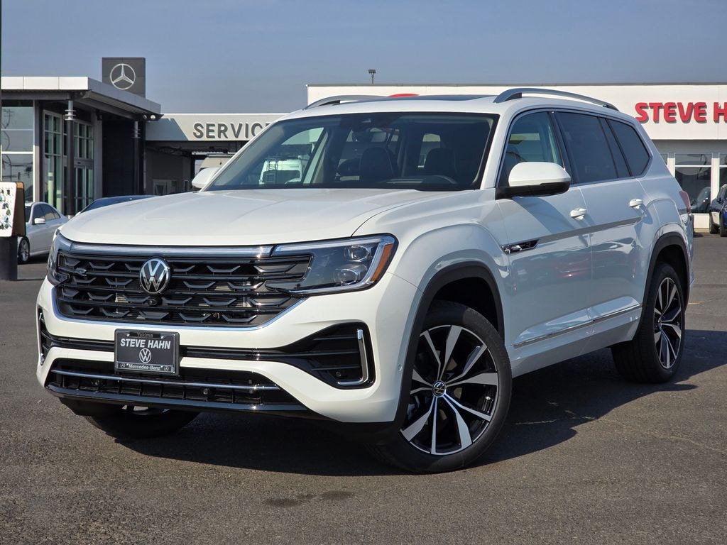 Opal White 2026 Volkswagen Atlas 2.0T SEL Premium R-Line 2.0L TSI 8-Speed Automatic with Tiptronic AWD 4D Sport Utility 10 Speakers, 3rd row seats: split-bench, 4-Wheel Disc Brakes, ABS brakes, Air Conditioning, Alloy wheels, AM/FM radio: SiriusXM with 360L, Auto High-beam Headlights, Auto-dimming Rear-View mirror, Automatic temperature control, Brake assist, Bumpers: body-color, Compass, Delay-off headlights, Driver door bin, Driver vanity mirror, Dual front impact airbags, Dual front side impact airbags, Electronic Stability Control, Emergency communication system: VW Car-Net Safe & Secure 5-year, Exterior Parking Camera Rear, Four wheel independent suspension, Four-wheel Independent Suspension, Front anti-roll bar, Front Bucket Seats, Front Center Armrest, Front dual zone A/C, Front fog lights, Front reading lights, Fully automatic headlights, Garage door transmitter: HomeLink Connect, harman/kardon® Speakers, Heads-Up Display, Heated & Actively Ventilated Front Bucket Seats, Heated door mirrors, Heated front seats, Heated rear seats, Heated steering wheel, Illuminated entry, Leather steering wheel, Low tire pressure warning, Memory seat, Navigation System, Occupant sensing airbag, Outside temperature display, Overhead airbag, Overhead console, Panic alarm, Passenger door bin, Passenger vanity mirror, Perforated Vienna Leather Seating Surfaces, Power door mirrors, Power driver seat, Power Liftgate, Power moonroof: Panoramic, Power passenger seat, Power steering, Power windows, Radio data system, Radio: MIB3 Discover Pro w/Navigation, Rain sensing wipers, Rear air conditioning, Rear anti-roll bar, Rear audio controls, Rear reading lights, Rear seat center armrest, Rear window defroster, Rear window wiper, Remote keyless entry, Security system, Speed control, Speed-sensing steering, Split folding rear seat, Spoiler, Sport steering wheel, Steering wheel mounted audio controls, Tachometer, Telescoping steering wheel, Tilt steering wheel, Traction control, Trip computer, Turn signal indicator mirrors, Variably intermittent wipers, Ventilated front seats, Wheels: 21" 2-Tone Machined Alloy. Price includes: $1000 - Retail Customer Bonus. Exp. 11/03/2025