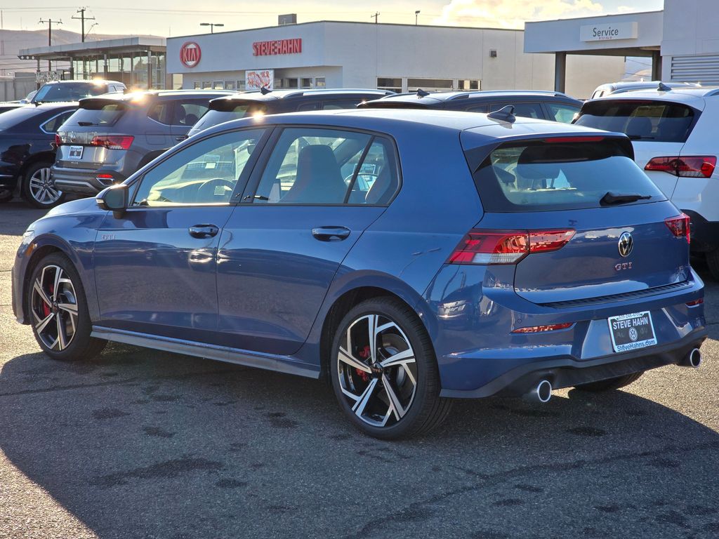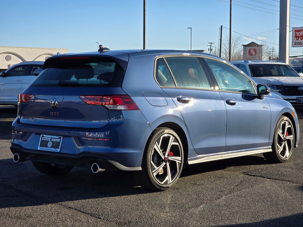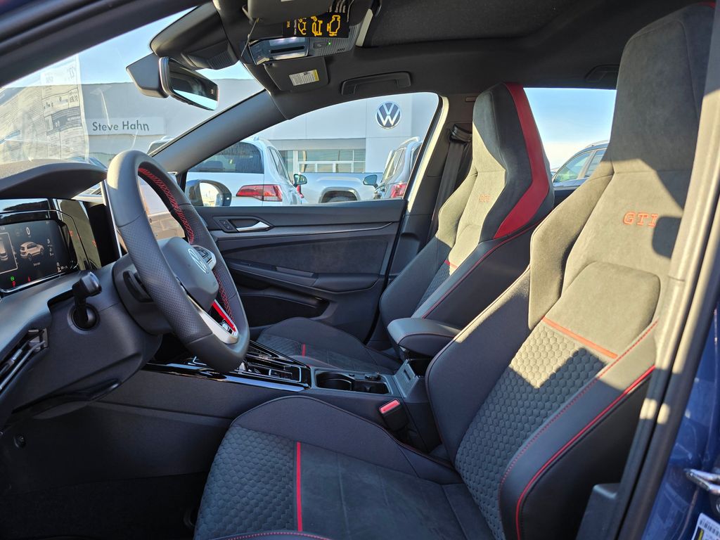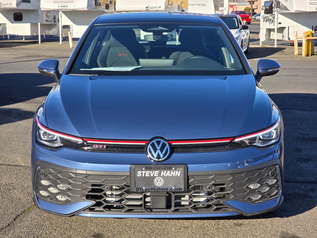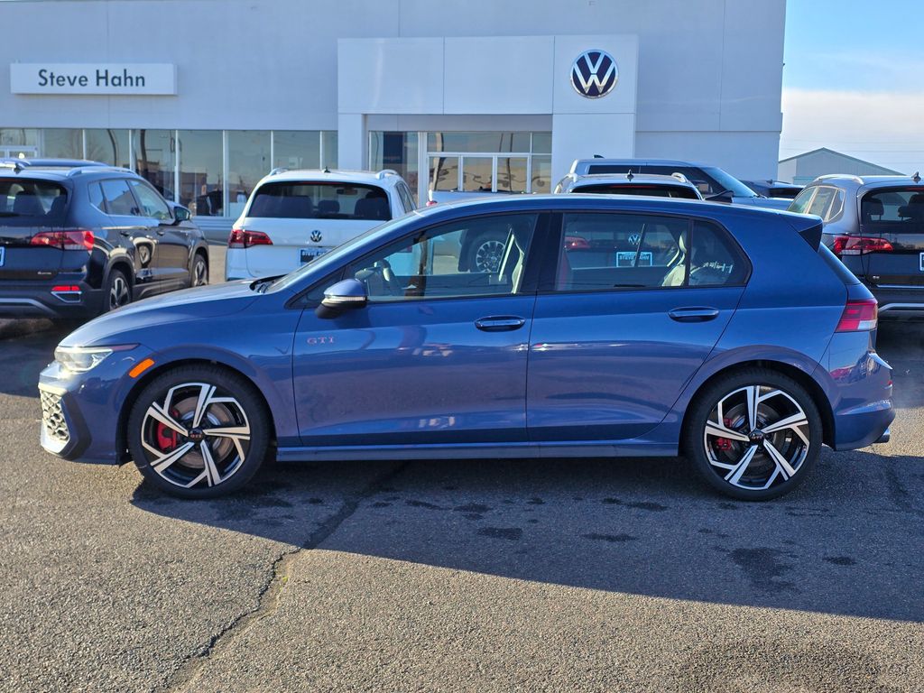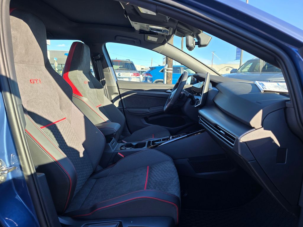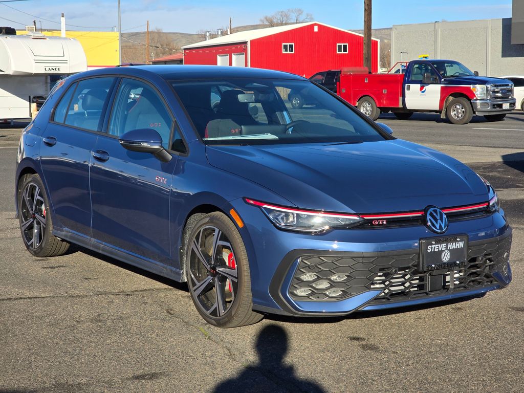 Slate Blue Metallic 2026 Volkswagen Golf GTI 2.0T SE 2.0L TSI DOHC 7-Speed DSG Automatic with Tiptronic FWD 4D Hatchback 4-Wheel Disc Brakes, 9 Speakers, ABS brakes, Air Conditioning, Alloy wheels, AM/FM radio: SiriusXM with 360L, ArtVelours Seating Surfaces, Auto High-beam Headlights, Auto-dimming Rear-View mirror, Automatic temperature control, Brake assist, Bumpers: body-color, Compass, Delay-off headlights, Driver door bin, Driver vanity mirror, Dual front impact airbags, Dual front side impact airbags, Electronic Stability Control, Emergency communication system: VW Car-Net Safe & Secure 5-year, Exterior Parking Camera Rear, Forward collision: FCW w/Autonomous Emergency Braking mitigation, Four wheel independent suspension, Front anti-roll bar, Front Bucket Seats, Front Center Armrest, Front fog lights, Front reading lights, Fully automatic headlights, harman/kardon® Speakers, Heated door mirrors, Heated front seats, Heated Front Top Sport Seats, Heated steering wheel, Illuminated entry, Leather steering wheel, Low tire pressure warning, Navigation System, Occupant sensing airbag, Outside temperature display, Overhead airbag, Overhead console, Panic alarm, Passenger door bin, Passenger vanity mirror, Power door mirrors, Power driver seat, Power moonroof: Panoramic, Power passenger seat, Power steering, Power windows, Radio data system, Radio: MIB3 Discover Pro AM/FM/HD w/12.9" Touchscreen Navigation, Rain sensing wipers, Rear anti-roll bar, Rear reading lights, Rear seat center armrest, Rear window defroster, Rear window wiper, Remote keyless entry, Security system, Speed control, Speed-sensing steering, Speed-Sensitive Wipers, Split folding rear seat, Spoiler, Sport steering wheel, Steering wheel mounted audio controls, Tachometer, Telescoping steering wheel, Tilt steering wheel, Traction control, Trip computer, Turn signal indicator mirrors, Variably intermittent wipers, Wheels: 18" 2-Tone Diamond-Turned Alloy.