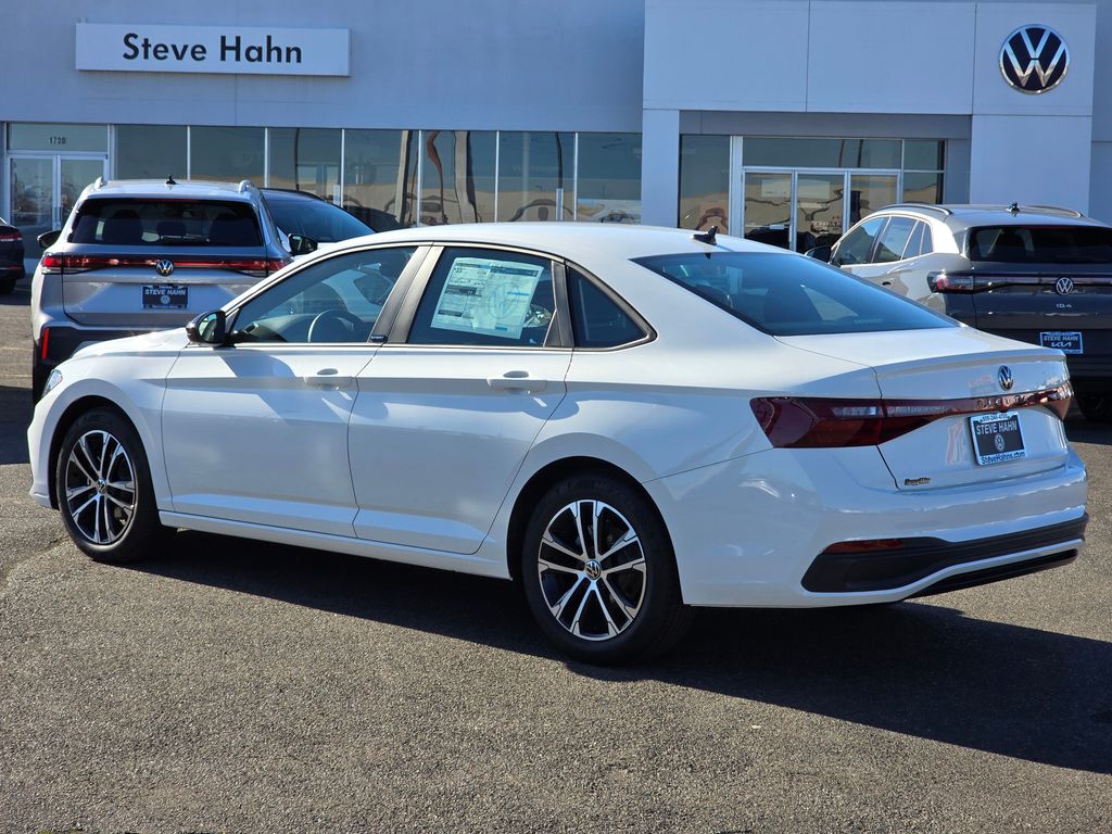 Pure White 2026 Volkswagen Jetta 1.5T Sport 1.5L I-4 DI DOHC Turbocharged 8-Speed Automatic with Tiptronic FWD 4D Sedan Cloth, 4 Speakers, 4-Wheel Disc Brakes, ABS brakes, Active Blind Spot Monitor, Air Conditioning, Alloy wheels, Auto-dimming Rear-View mirror, Automatic temperature control, Brake assist, Bumpers: body-color, Cloth Seat Trim, Delay-off headlights, Driver door bin, Driver vanity mirror, Dual front impact airbags, Dual front side impact airbags, Electronic Stability Control, Emergency communication system: VW Car-Net Safe & Secure 5-year, Exterior Parking Camera Rear, Front anti-roll bar, Front Bucket Seats, Front Center Armrest, Front dual zone A/C, Front wheel independent suspension, Fully automatic headlights, Heated door mirrors, Heated Front Seats, Heated front seats, Illuminated entry, Leather Shift Knob, Leather steering wheel, Low tire pressure warning, Occupant sensing airbag, Outside temperature display, Overhead airbag, Overhead console, Panic alarm, Passenger door bin, Passenger vanity mirror, Power door mirrors, Power steering, Power windows, Radio data system, Radio: MIB3 Composition Color with 8" Touchscreen, Rain sensing wipers, Rear anti-roll bar, Rear reading lights, Rear seat center armrest, Rear window defroster, Remote keyless entry, Speed control, Speed-sensing steering, Split folding rear seat, Steering wheel mounted audio controls, Tachometer, Telescoping steering wheel, Tilt steering wheel, Traction control, Trip computer, Variably intermittent wipers, Wheels: 17" 2-Tone Machined Alloy, Cloth. Price includes: $1000 - Customer Bonus. Exp. 04/30/2026