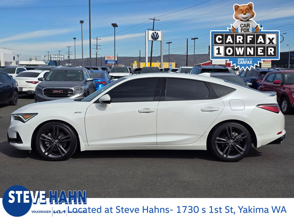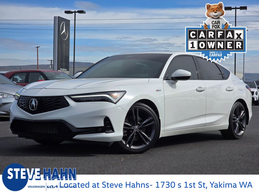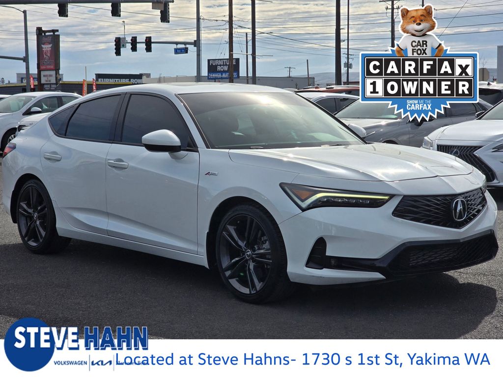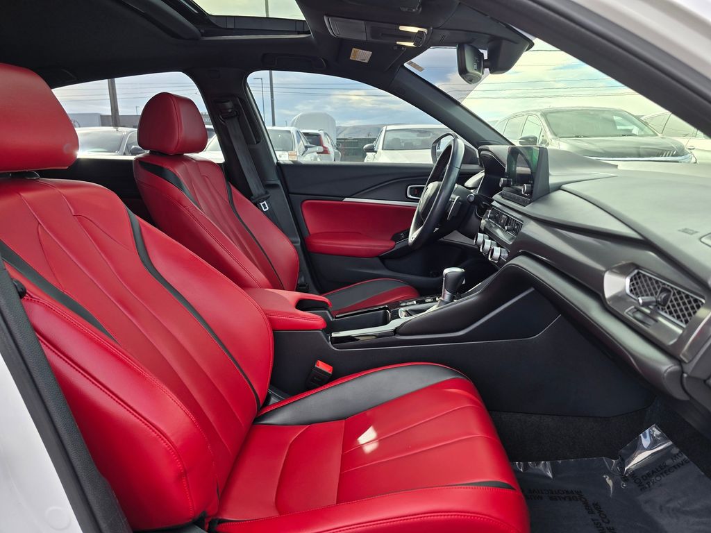 CARFAX One-Owner. Clean CARFAX. White 2023 Acura Integra A-Spec Package 1.5L I4 DOHC 16V CVT FWD 4D Hatchback 18" Alloy Wheels, 4-Wheel Disc Brakes, 8 Speakers, ABS brakes, Air Conditioning, Alloy wheels, AM/FM radio, Apple CarPlay/Android Auto, Auto High-beam Headlights, Auto-dimming Rear-View mirror, Automatic temperature control, Brake assist, Bumpers: body-color, Compass, Delay-off headlights, Driver door bin, Driver vanity mirror, Dual front impact airbags, Dual front side impact airbags, Electronic Stability Control, Four wheel independent suspension, Front anti-roll bar, Front Bucket Seats, Front Center Armrest, Front dual zone A/C, Front fog lights, Front reading lights, Fully automatic headlights, Heated door mirrors, Heated Front Bucket Seats, Heated front seats, Illuminated entry, Knee airbag, Lane departure: Lane Keeping Assist System (LKAS) active, Leather Shift Knob, Leatherette-Trimmed Seating Surfaces, Low tire pressure warning, Occupant sensing airbag, Outside temperature display, Overhead airbag, Overhead console, Panic alarm, Passenger door bin, Passenger vanity mirror, Power door mirrors, Power driver seat, Power moonroof, Power steering, Power windows, Radio data system, Radio: Acura Premium Audio System, Rear anti-roll bar, Rear seat center armrest, Rear side impact airbag, Rear window defroster, Remote keyless entry, Security system, Speed control, Speed-sensing steering, Speed-Sensitive Wipers, Split folding rear seat, Spoiler, Steering wheel mounted audio controls, Tachometer, Telescoping steering wheel, Tilt steering wheel, Traction control, Trip computer, Variably intermittent wipers.