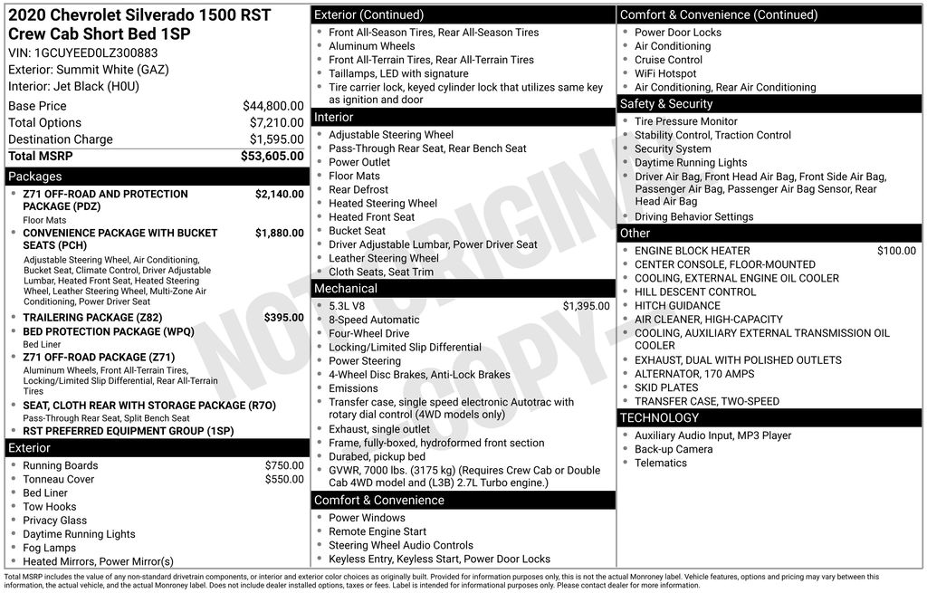 Recent Arrival! White 2020 Chevrolet Silverado 1500 RST EcoTec3 5.3L V8 8-Speed Automatic 4WD 4D Crew Cab 8-Speed Automatic, 4WD, Gone, 12-Volt Rear Auxiliary Power Outlet, 2 USB Ports (First Row), 220 Amps Alternator, 4-Way Manual Driver Seat Adjuster, 4-Wheel Disc Brakes, 4.2" Diagonal Color Display Driver Info Center, 40/20/40 Front Split-Bench Seat, 4G LTE Wi-Fi Hot Spot Capable, 6 Speakers, 6-Speaker Audio System, ABS brakes, Air Conditioning, Alloy wheels, Apple CarPlay/Android Auto, Bluetooth® For Phone, Body Color Grille, Brake assist, Bumpers: body-color, Chevrolet Connected Access Capable, Cloth Seat Trim, Color-Keyed Carpeting Floor Covering, Compass, Deep-Tinted Glass, Delay-off headlights, Driver door bin, Driver vanity mirror, Dual front impact airbags, Dual front side impact airbags, Electric Rear-Window Defogger, Electrical Lock Control Steering Column, Electronic Stability Control, Front anti-roll bar, Front Center Armrest w/Storage, Front fog lights, Front Frame-Mounted Black Recovery Hooks, Front LED Fog Lamps, Front reading lights, Front Rubberized Vinyl Floor Mats, Front wheel independent suspension, Fully automatic headlights, Heated door mirrors, Heavy Duty Suspension, High Gloss Black Mirror Caps, Illuminated entry, Keyless Open & Start, LED Cargo Area Lighting, Low tire pressure warning, Manual Tilt-Wheel Steering Column, Occupant sensing airbag, OnStar & Chevrolet Connected Services Capable, Outside temperature display, Overhead airbag, Overhead console, Panic alarm, Passenger door bin, Passenger vanity mirror, Power Door Locks, Power door mirrors, Power Front Windows w/Driver Express Up/Down, Power Front Windows w/Passenger Express Down, Power Rear Windows w/Express Down, Power steering, Power windows, Radio data system, Radio: Chevrolet Infotainment 3 System, Rear 60/40 Folding Bench Seat (Folds Up), Rear Dual USB Charging-Only Ports, Rear reading lights, Rear Rubberized-Vinyl Floor Mats, Rear step bumper, Rear Vision Camera, Rear window defroster, Remote keyless entry, Remote Vehicle Starter System, Security system, Single-Zone Manual/Semi-Automatic Air Conditioning, Speed control, Speed-sensing steering, Split folding rear seat, Steering Wheel Audio Controls, Steering wheel mounted audio controls, Steering Wheel Mounted Electronic Cruise Control, Tachometer, Theft Deterrent System (Unauthorized Entry), Tilt steering wheel, Traction control, Trip computer, Urethane Steering Wheel, Variably intermittent wipers, Voltmeter, Wheels: 18" x 8.5" Bright Silver Painted Aluminum, 8-Speed Automatic, 4WD, Gone.