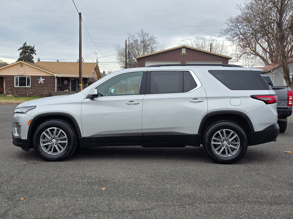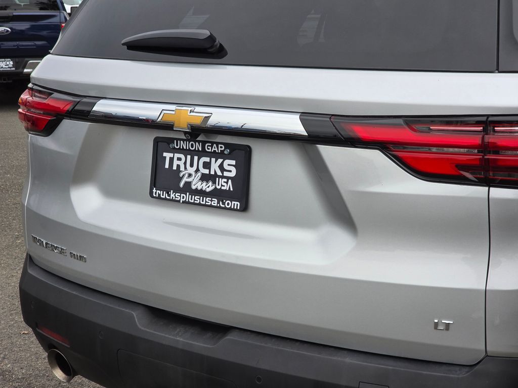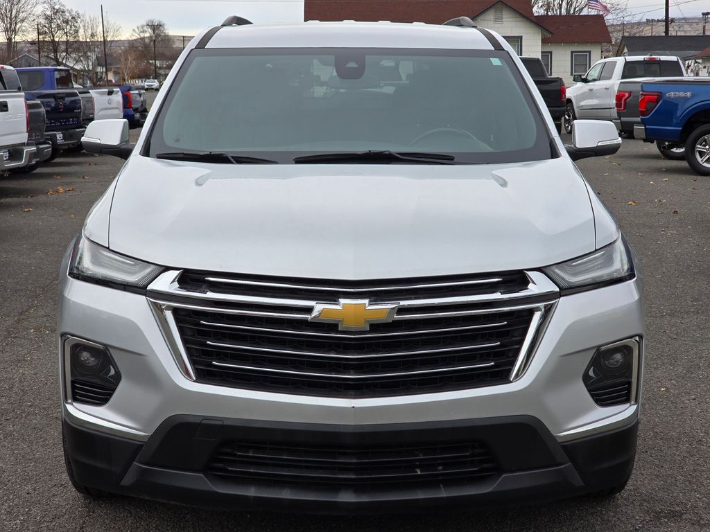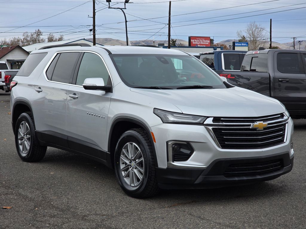 Recent Arrival! Clean CARFAX. Silver Ice Metallic 2022 Chevrolet Traverse LT 1LT 3.6L V6 SIDI VVT 9-Speed Automatic AWD 4D Sport Utility AWD, 2-Way Manual Front Passenger Seat Adjuster, 3.49 Axle Ratio, 3rd row seats: split-bench, 4-Wheel Disc Brakes, 6 Speakers, 6-Speaker Audio System Feature, 8-Way Power Driver Seat Adjuster, ABS brakes, Air Conditioning, Alloy wheels, AM/FM radio: SiriusXM, Apple CarPlay/Android Auto, Auto High-beam Headlights, Automatic temperature control, Black Roof Rails, Brake assist, Bumpers: body-color, Compass, Delay-off headlights, Driver door bin, Driver vanity mirror, Dual front impact airbags, Dual front side impact airbags, Electronic Stability Control, Emergency communication system: OnStar Guidance, Exterior Parking Camera Rear, Four wheel independent suspension, Front anti-roll bar, Front Bucket Seats, Front Center Armrest, Front dual zone A/C, Front reading lights, Fully automatic headlights, Garage door transmitter, Heated door mirrors, Heated Driver & Front Passenger Seats, Heated front seats, Illuminated entry, Leather steering wheel, Low tire pressure warning, Not Equipped w/Rear Park Assist, Occupant sensing airbag, Outside temperature display, Overhead airbag, Overhead console, Panic alarm, Passenger door bin, Passenger vanity mirror, Power door mirrors, Power Driver Lumbar Control, Power driver seat, Power Liftgate, Power steering, Power windows, Preferred Equipment Group 1LT, Premium Cloth Seat Trim, Radio data system, Radio: Chevrolet Infotainment 3 Plus System, Rear air conditioning, Rear anti-roll bar, Rear Park Assist w/Audible Warning, Rear reading lights, Rear window defroster, Rear window wiper, Remote keyless entry, Roof rack: rails only, Security system, SiriusXM w/360L, Speed control, Speed-sensing steering, Spoiler, Steering wheel mounted audio controls, Tachometer, Telescoping steering wheel, Tilt steering wheel, Traction control, Trip computer, Turn signal indicator mirrors, Variably intermittent wipers, Voltmeter, Wheels: 18" Bright Silver-Painted Aluminum, AWD.