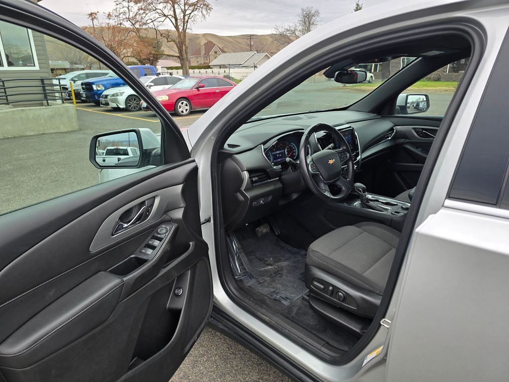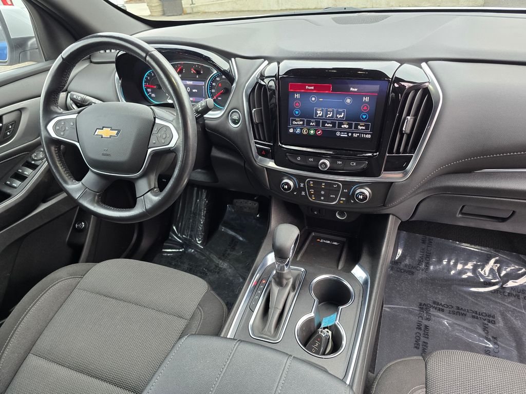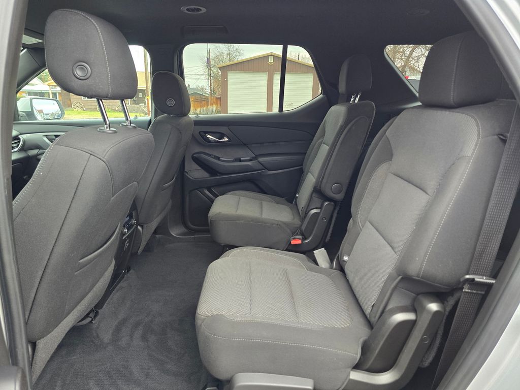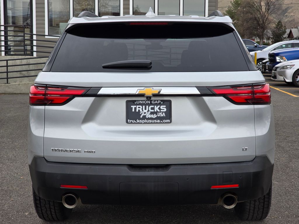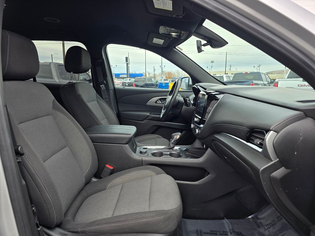 Recent Arrival! Clean CARFAX. Silver Ice Metallic 2022 Chevrolet Traverse LT 1LT 3.6L V6 SIDI VVT 9-Speed Automatic AWD 4D Sport Utility AWD, 2-Way Manual Front Passenger Seat Adjuster, 3.49 Axle Ratio, 3rd row seats: split-bench, 4-Wheel Disc Brakes, 6 Speakers, 6-Speaker Audio System Feature, 8-Way Power Driver Seat Adjuster, ABS brakes, Air Conditioning, Alloy wheels, AM/FM radio: SiriusXM, Apple CarPlay/Android Auto, Auto High-beam Headlights, Automatic temperature control, Black Roof Rails, Brake assist, Bumpers: body-color, Compass, Delay-off headlights, Driver door bin, Driver vanity mirror, Dual front impact airbags, Dual front side impact airbags, Electronic Stability Control, Emergency communication system: OnStar Guidance, Exterior Parking Camera Rear, Four wheel independent suspension, Front anti-roll bar, Front Bucket Seats, Front Center Armrest, Front dual zone A/C, Front reading lights, Fully automatic headlights, Garage door transmitter, Heated door mirrors, Heated Driver & Front Passenger Seats, Heated front seats, Illuminated entry, Leather steering wheel, Low tire pressure warning, Not Equipped w/Rear Park Assist, Occupant sensing airbag, Outside temperature display, Overhead airbag, Overhead console, Panic alarm, Passenger door bin, Passenger vanity mirror, Power door mirrors, Power Driver Lumbar Control, Power driver seat, Power Liftgate, Power steering, Power windows, Preferred Equipment Group 1LT, Premium Cloth Seat Trim, Radio data system, Radio: Chevrolet Infotainment 3 Plus System, Rear air conditioning, Rear anti-roll bar, Rear Park Assist w/Audible Warning, Rear reading lights, Rear window defroster, Rear window wiper, Remote keyless entry, Roof rack: rails only, Security system, SiriusXM w/360L, Speed control, Speed-sensing steering, Spoiler, Steering wheel mounted audio controls, Tachometer, Telescoping steering wheel, Tilt steering wheel, Traction control, Trip computer, Turn signal indicator mirrors, Variably intermittent wipers, Voltmeter, Wheels: 18" Bright Silver-Painted Aluminum, AWD.