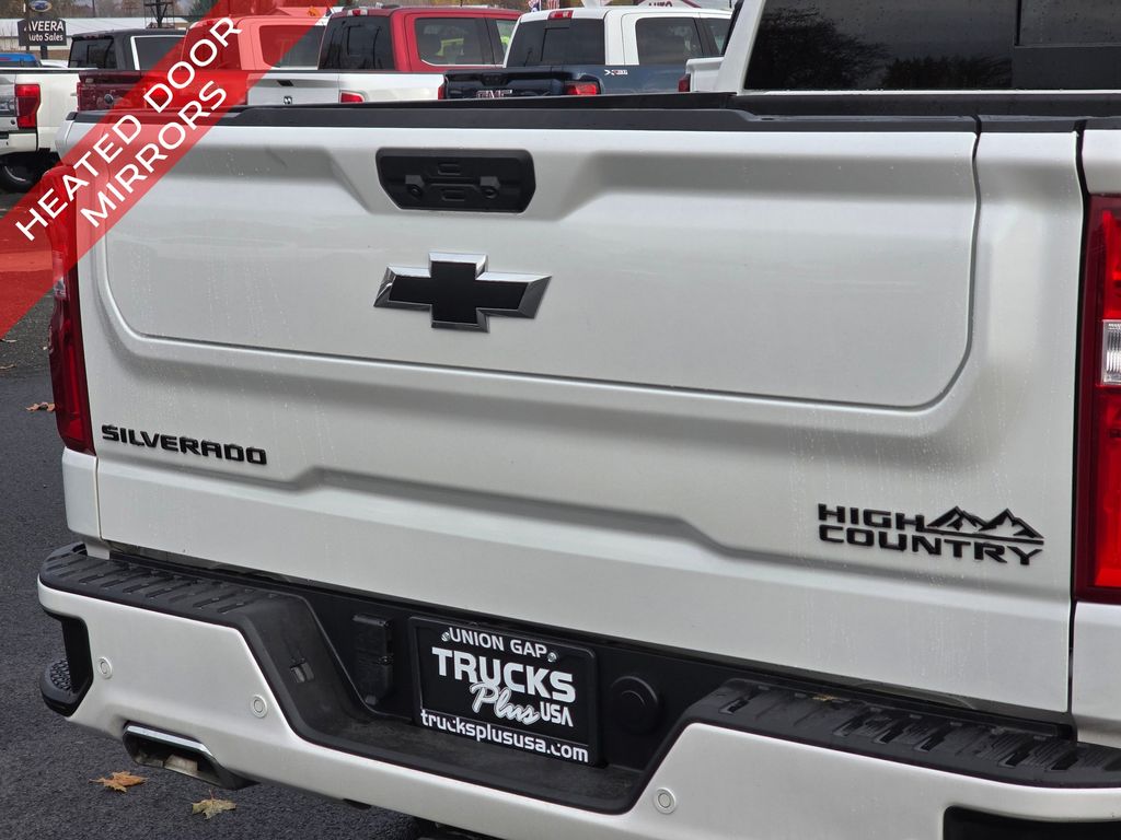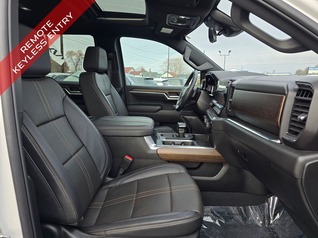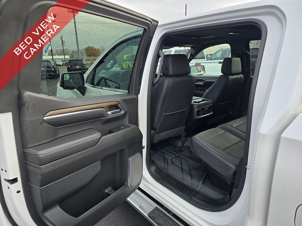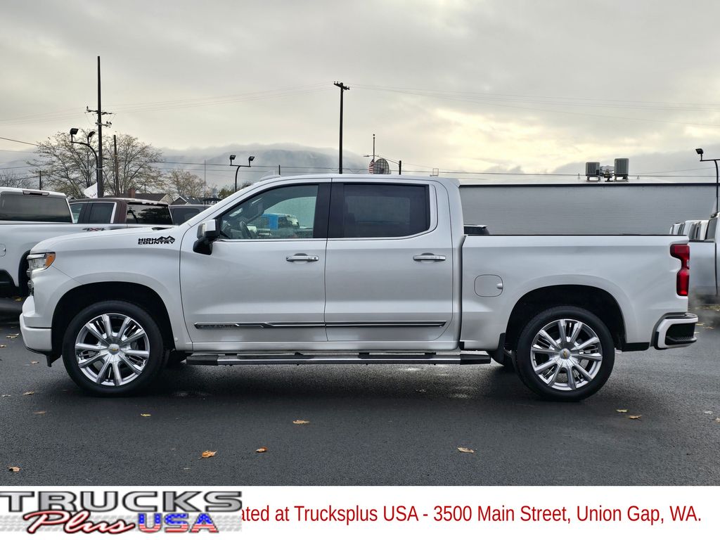 Recent Arrival! Clean CARFAX. Pearl 2024 Chevrolet Silverado 1500 High Country EcoTec3 6.2L V8 10-Speed Automatic 4WD 4D Crew Cab 10-Speed Automatic, 4WD, Black Leather, 10-Way Power Driver Seat w/Lumbar, 10-Way Power Passenger Seat Adjuster w/Lumbar, 12.3" Multicolor Reconfigurable Digital Display, 120-Volt Bed Mounted Power Outlet, 120-Volt Interior Power Outlet, 15" Diagonal Multicolor Head-Up Display, 170 Amp Alternator, 2 USB Data Ports, 2nd Row Heated Outboard Seats, 3.23 Rear Axle Ratio, 4-Wheel Disc Brakes, 7 Speakers, ABS brakes, Adaptive Cruise Control, Adaptive Ride Control Suspension, Air Conditioning, All-Weather Floor Liner (LPO), Alloy wheels, AM/FM radio: SiriusXM with 360L, Auto High-beam Headlights, Auto-dimming door mirrors, Auto-Dimming Inside Rear-View Mirror, Auto-dimming Rear-View mirror, Auto-Locking Rear Differential, Automatic temperature control, Bed View Camera, Black Name Plates (LPO), Bluetooth® For Phone, Body-Color Painted Mirror Caps, Bodyside moldings, Brake assist, Bumpers: body-color, Chevrolet Connected Access Capable, Chevytec Spray-On Black Bedliner, Chrome Assist Steps, Chrome Recovery Hooks, Color-Keyed Carpeting Floor Covering, Compass, Dark Essentials Package (LPO), Deep-Tinted Glass, Delay-off headlights, Driver door bin, Driver Memory, Driver vanity mirror, Dual Active Exhaust, Dual Exhaust w/Polished Outlets, Dual front impact airbags, Dual front side impact airbags, Dual Rear USB Ports (Charge Only), Electric Rear-Window Defogger, Electrical Steering Column Lock, Electronic Stability Control, Electronic Transmission Range Selector Shifter, Engine Block Heater, Enhanced Automatic Emergency Braking, EZ Lift Power Lock & Release Tailgate, Floor Mounted Center Console, Following Distance Indicator, Forward Collision Alert, Front anti-roll bar, Front Black Bowtie Emblem (LPO), Front Bucket Seats, Front Carpeted Floor Mats, Front Center Armrest, Front dual zone A/C, Front fog lights, Front LED Fog Lamps, Front Pedestrian Braking, Front Rain-Sensing Wipers, Front reading lights, Front wheel independent suspension, Fully automatic headlights, Garage door transmitter, Genuine wood console insert, Genuine wood dashboard insert, Genuine wood door panel insert, HD Surround Vision, Heated door mirrors, Heated Driver & Front Outboard Passenger Seats, Heated front seats, Heated rear seats, Heated Steering Wheel, Heated steering wheel, High Capacity Suspension Package, High Country Premium Package, Hitch Guidance, Hitch Guidance w/Hitch View, Illuminated entry, In-Vehicle Trailering System App, Integrated Trailer Brake Controller, IntelliBeam Automatic High Beam On/Off, Keyless Open & Start, Lane Keep Assist w/Lane Departure Warning, LED Cargo Area Lighting, Low tire pressure warning, Memory seat, Multi-Flex Tailgate, Occupant sensing airbag, OnStar & Chevrolet Connected Services Capable, Outside Heated Power-Adjustable Mirrors, Outside temperature display, Overhead airbag, Overhead console, Panic alarm, Passenger door bin, Passenger vanity mirror, Perforated Leather Seat Trim, Perimeter Lighting, Power door mirrors, Power driver seat, Power Front Passenger Windows w/Express Up/Down, Power Front Windows w/Driver Express Up/Down, Power passenger seat, Power Rear Windows w/Express Down, Power Sliding Rear Window w/Rear Defogger, Power steering, Power Sunroof, Power Tailgate, Power Tilt & Telescoping Steering Column, Power windows, Preferred Equipment Group 3LZ, Premium audio system: Chevrolet Infotainment 3 Premium, Premium Bose 7-Speaker Sound System, Radio data system, Radio: Chevrolet Infotainment 3 Premium System, Rain sensing wipers, Rear Camera Mirror, Rear Carpeted Floor Mats, Rear Cross Traffic Braking, Rear Pedestrian Alert, Rear reading lights, Rear seat center armrest, Rear step bumper, Rear Wheelhouse Liners, Rear window defroster, Remote keyless entry, Remote Vehicle Starter System, Safety Alert Seat, Security system, SiriusXM w/360L, Speed control, Speed-sensing steering, Split foldi