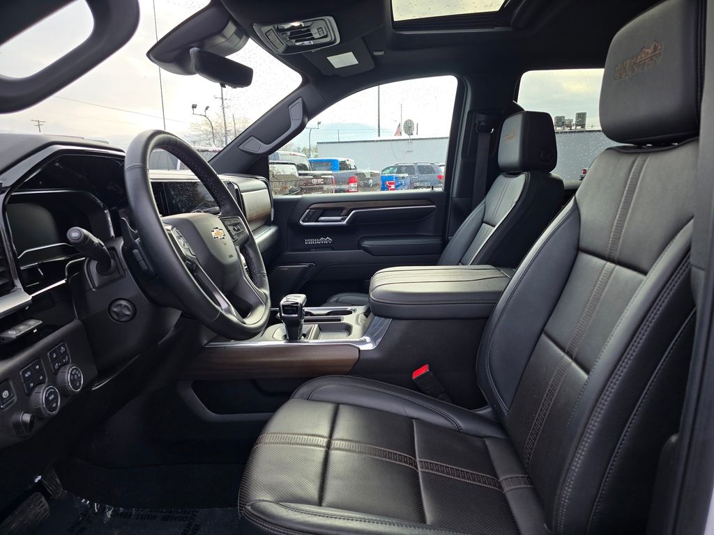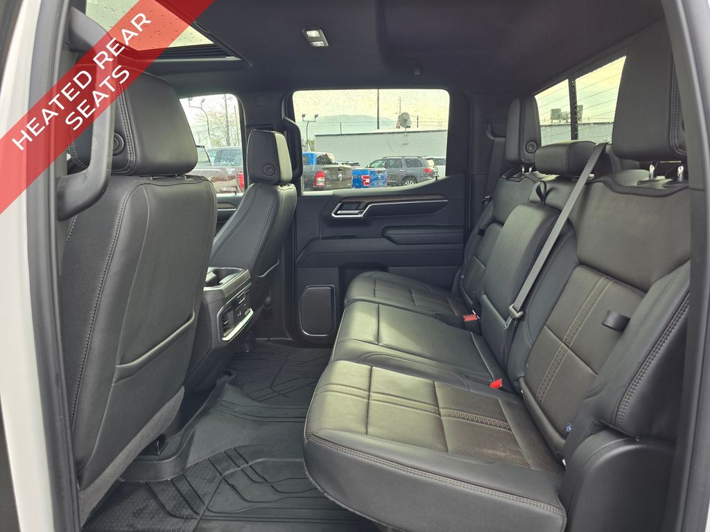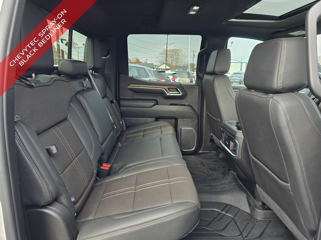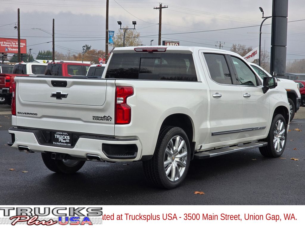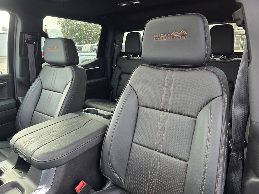 Recent Arrival! Clean CARFAX. Pearl 2024 Chevrolet Silverado 1500 High Country EcoTec3 6.2L V8 10-Speed Automatic 4WD 4D Crew Cab 10-Speed Automatic, 4WD, Black Leather, 10-Way Power Driver Seat w/Lumbar, 10-Way Power Passenger Seat Adjuster w/Lumbar, 12.3" Multicolor Reconfigurable Digital Display, 120-Volt Bed Mounted Power Outlet, 120-Volt Interior Power Outlet, 15" Diagonal Multicolor Head-Up Display, 170 Amp Alternator, 2 USB Data Ports, 2nd Row Heated Outboard Seats, 3.23 Rear Axle Ratio, 4-Wheel Disc Brakes, 7 Speakers, ABS brakes, Adaptive Cruise Control, Adaptive Ride Control Suspension, Air Conditioning, All-Weather Floor Liner (LPO), Alloy wheels, AM/FM radio: SiriusXM with 360L, Auto High-beam Headlights, Auto-dimming door mirrors, Auto-Dimming Inside Rear-View Mirror, Auto-dimming Rear-View mirror, Auto-Locking Rear Differential, Automatic temperature control, Bed View Camera, Black Name Plates (LPO), Bluetooth® For Phone, Body-Color Painted Mirror Caps, Bodyside moldings, Brake assist, Bumpers: body-color, Chevrolet Connected Access Capable, Chevytec Spray-On Black Bedliner, Chrome Assist Steps, Chrome Recovery Hooks, Color-Keyed Carpeting Floor Covering, Compass, Dark Essentials Package (LPO), Deep-Tinted Glass, Delay-off headlights, Driver door bin, Driver Memory, Driver vanity mirror, Dual Active Exhaust, Dual Exhaust w/Polished Outlets, Dual front impact airbags, Dual front side impact airbags, Dual Rear USB Ports (Charge Only), Electric Rear-Window Defogger, Electrical Steering Column Lock, Electronic Stability Control, Electronic Transmission Range Selector Shifter, Engine Block Heater, Enhanced Automatic Emergency Braking, EZ Lift Power Lock & Release Tailgate, Floor Mounted Center Console, Following Distance Indicator, Forward Collision Alert, Front anti-roll bar, Front Black Bowtie Emblem (LPO), Front Bucket Seats, Front Carpeted Floor Mats, Front Center Armrest, Front dual zone A/C, Front fog lights, Front LED Fog Lamps, Front Pedestrian Braking, Front Rain-Sensing Wipers, Front reading lights, Front wheel independent suspension, Fully automatic headlights, Garage door transmitter, Genuine wood console insert, Genuine wood dashboard insert, Genuine wood door panel insert, HD Surround Vision, Heated door mirrors, Heated Driver & Front Outboard Passenger Seats, Heated front seats, Heated rear seats, Heated Steering Wheel, Heated steering wheel, High Capacity Suspension Package, High Country Premium Package, Hitch Guidance, Hitch Guidance w/Hitch View, Illuminated entry, In-Vehicle Trailering System App, Integrated Trailer Brake Controller, IntelliBeam Automatic High Beam On/Off, Keyless Open & Start, Lane Keep Assist w/Lane Departure Warning, LED Cargo Area Lighting, Low tire pressure warning, Memory seat, Multi-Flex Tailgate, Occupant sensing airbag, OnStar & Chevrolet Connected Services Capable, Outside Heated Power-Adjustable Mirrors, Outside temperature display, Overhead airbag, Overhead console, Panic alarm, Passenger door bin, Passenger vanity mirror, Perforated Leather Seat Trim, Perimeter Lighting, Power door mirrors, Power driver seat, Power Front Passenger Windows w/Express Up/Down, Power Front Windows w/Driver Express Up/Down, Power passenger seat, Power Rear Windows w/Express Down, Power Sliding Rear Window w/Rear Defogger, Power steering, Power Sunroof, Power Tailgate, Power Tilt & Telescoping Steering Column, Power windows, Preferred Equipment Group 3LZ, Premium audio system: Chevrolet Infotainment 3 Premium, Premium Bose 7-Speaker Sound System, Radio data system, Radio: Chevrolet Infotainment 3 Premium System, Rain sensing wipers, Rear Camera Mirror, Rear Carpeted Floor Mats, Rear Cross Traffic Braking, Rear Pedestrian Alert, Rear reading lights, Rear seat center armrest, Rear step bumper, Rear Wheelhouse Liners, Rear window defroster, Remote keyless entry, Remote Vehicle Starter System, Safety Alert Seat, Security system, SiriusXM w/360L, Speed control, Speed-sensing steering, Split foldi