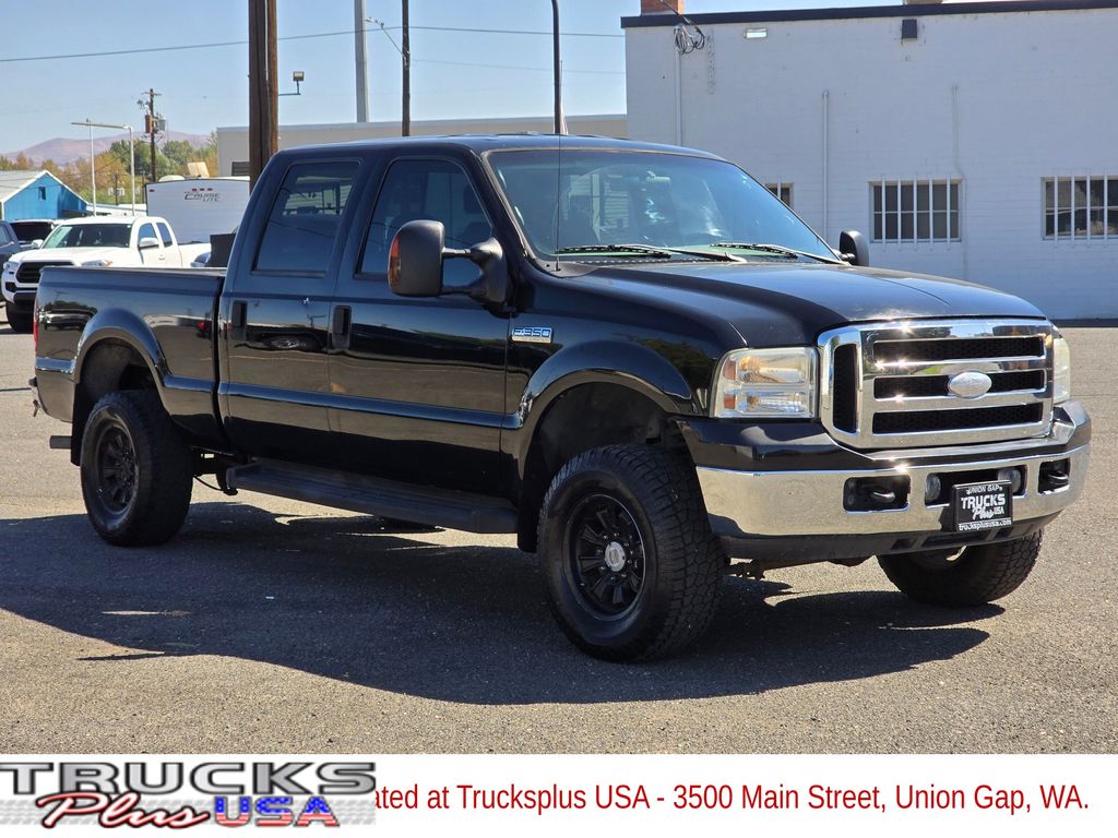 Recent Arrival! Clean CARFAX. Black 2006 Ford F-350SD XLT Triton 5.4L V8 EFI SOHC 24V 6-Speed Manual with Overdrive 4WD 4D Crew Cab 4WD, ABS brakes.