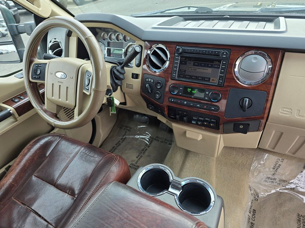 This 1 ton pickup keeps you comfortable with Auto Climate. The leather seats are soft and supportive on this model. The Ford F-350 has a V8, 6.4L high output engine. The vehicle shines with a refined green finish. It has four wheel drive capabilities. It is outfitted with a Powerstroke diesel engine Maintaining a stable interior temperature in the vehicle is easy with the climate control system. This vehicle has fog lights for all weather conditions. The vehicle has an automatic transmission. With the adjustable lumbar support in this 1 ton pickup your back will love you. This 2008 Ford F-350 Super Duty features cruise control for long trips. The vehicle has a diesel engine. Anti-lock brakes will help you stop in an emergency. Get the big jobs done with this one-ton truck. From hauling to towing it is ready for your toughest jobs.