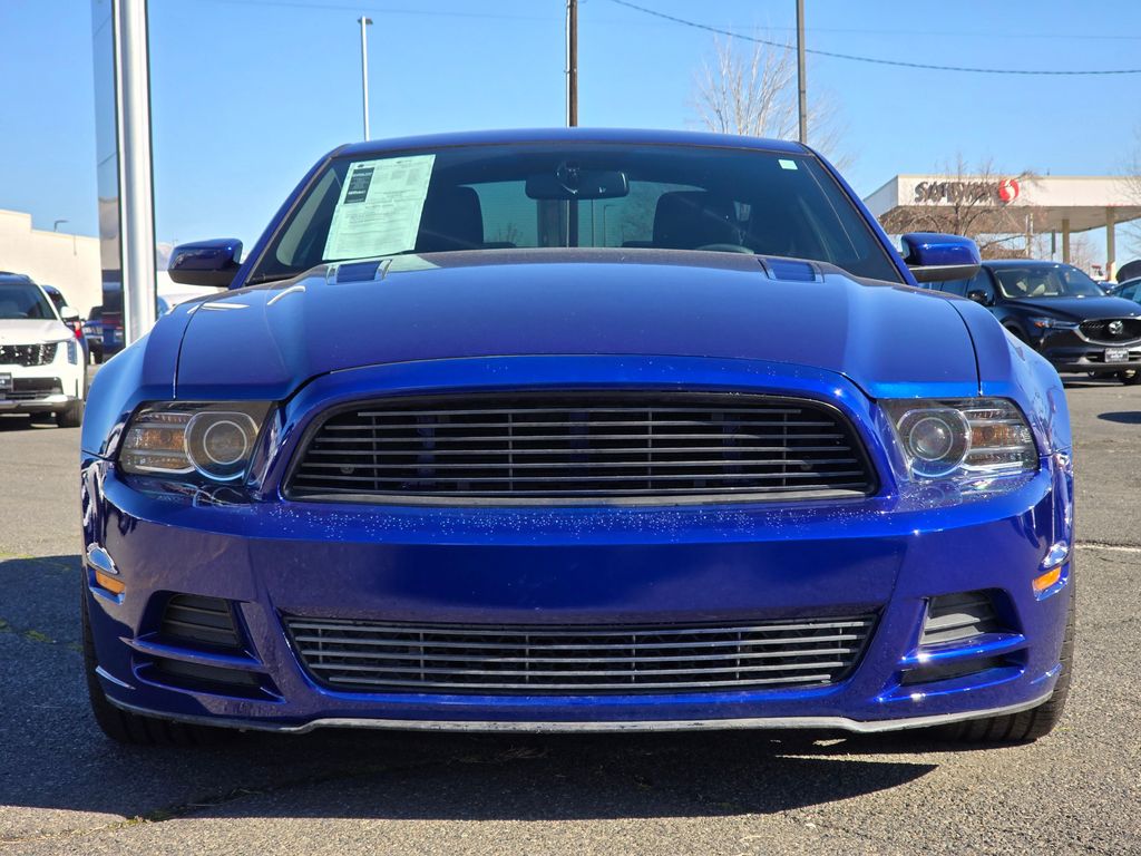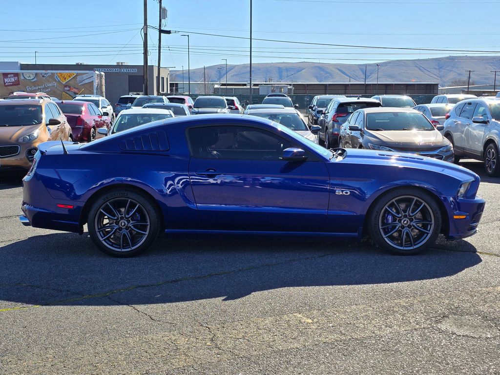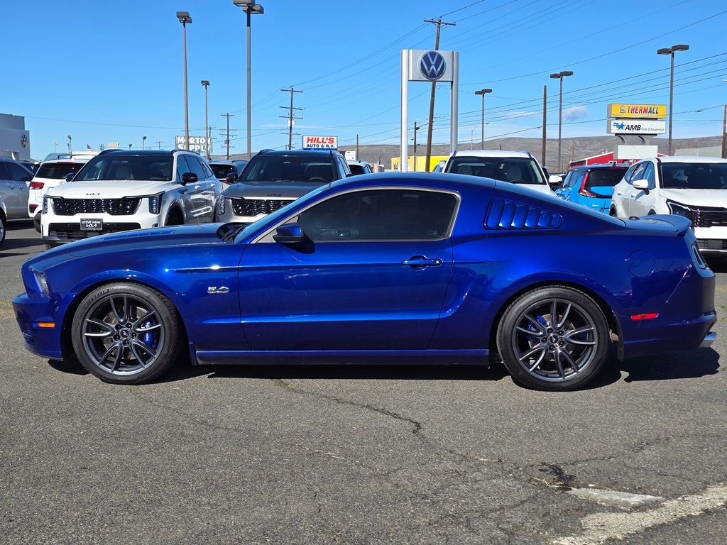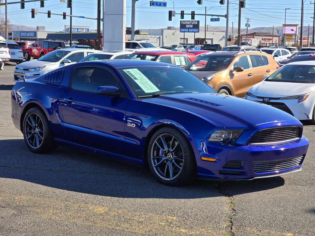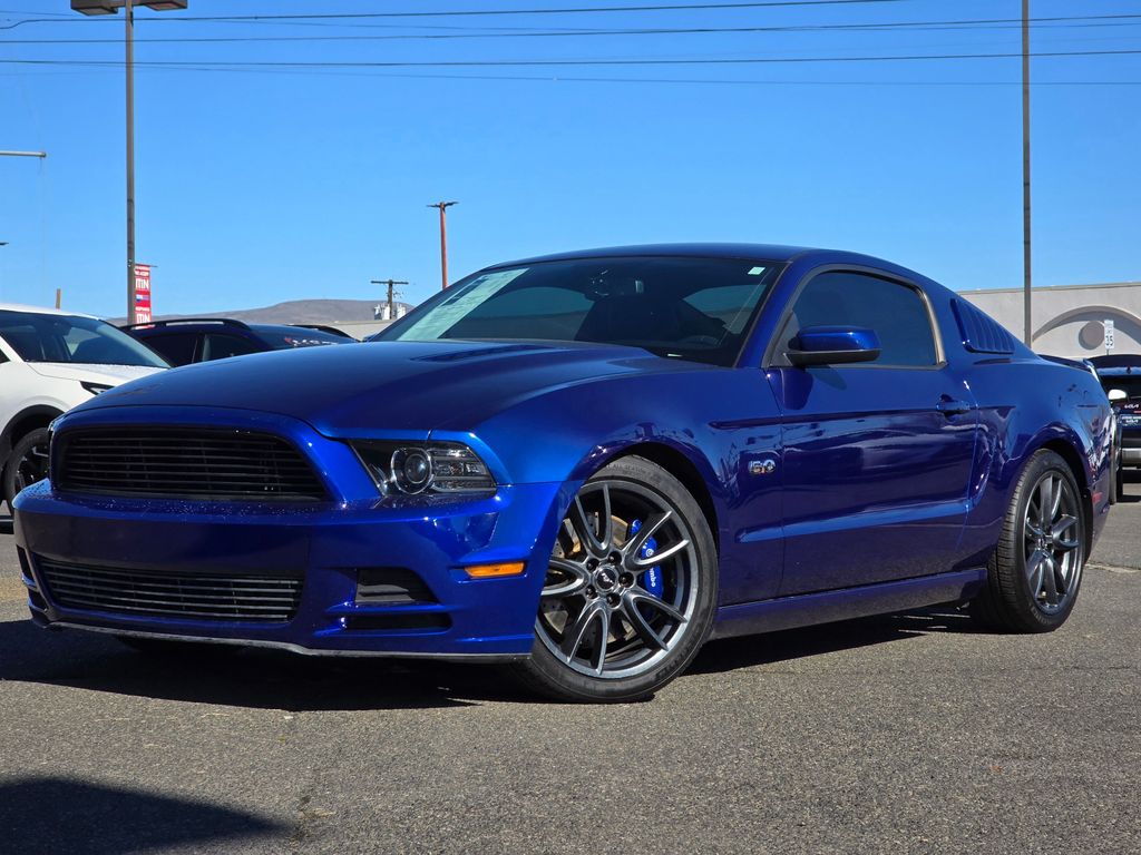 Blue Metallic 2013 Ford Mustang GT Premium 5.0L V8 Ti-VCT 32V 6-Speed Manual RWD 2D Coupe 11.8" Vented Rear Rotors, 14" Brembo Vented Front Rotors, 18" x 8" Sparkle Silver Painted Aluminum Wheels, 19" x 9.0" Dark Stainless Painted Aluminum Wheels, 4-Wheel Disc Brakes, ABS brakes, Active Anti-Theft System, Aggressive Suspension Tuning, Air Conditioning, Alloy wheels, Boss 302 Radiator, Brake assist, Bumpers: body-color, CD player, Compass, Delay-off headlights, Driver door bin, Driver vanity mirror, Dual front impact airbags, Dual front side impact airbags, Electronic Stability Control, Engine Oil Cooler, Front anti-roll bar, Front Bucket Seats, Front Center Armrest, Front fog lights, Front reading lights, Front wheel independent suspension, Fully automatic headlights, GT Track Package, High-Intensity Discharge Headlights, Illuminated entry, Low tire pressure warning, Occupant sensing airbag, Outside temperature display, Panic alarm, Passenger door bin, Passenger vanity mirror, Power door mirrors, Power steering, Power windows, Radio data system, Rear anti-roll bar, Rear window defroster, Remote keyless entry, Reverse Sensing System, Reverse Sensing System & Security Package, Speed control, Speed-sensing steering, Split folding rear seat, Spoiler, Steering wheel mounted audio controls, Tachometer, Tilt steering wheel, Tire Mobility Kit, TORSEN Helical Differential w/3.73 Axle Ratio, Traction control, Trip computer, Unique Electronic Stability Control Tuning, Variably intermittent wipers, Voltmeter, Wheel Locking Kit.