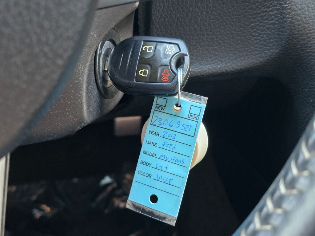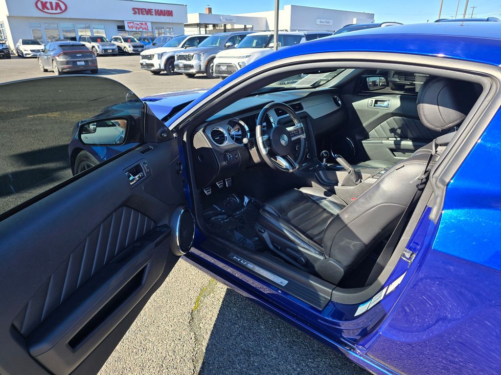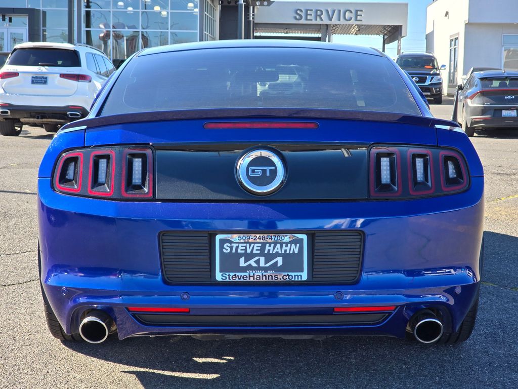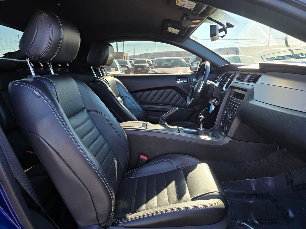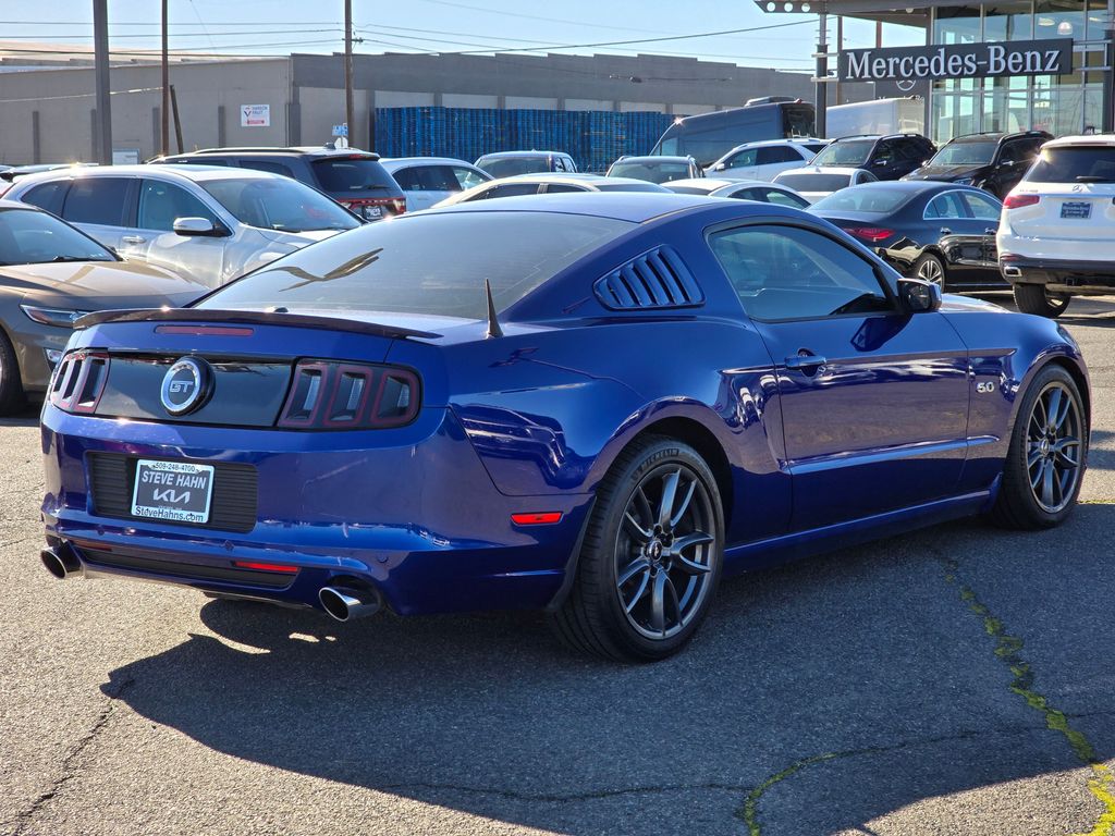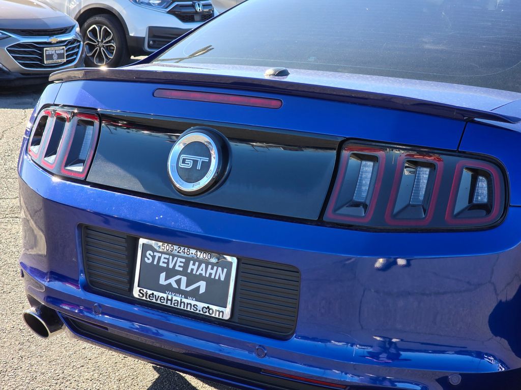 Blue Metallic 2013 Ford Mustang GT Premium 5.0L V8 Ti-VCT 32V 6-Speed Manual RWD 2D Coupe 11.8" Vented Rear Rotors, 14" Brembo Vented Front Rotors, 18" x 8" Sparkle Silver Painted Aluminum Wheels, 19" x 9.0" Dark Stainless Painted Aluminum Wheels, 4-Wheel Disc Brakes, ABS brakes, Active Anti-Theft System, Aggressive Suspension Tuning, Air Conditioning, Alloy wheels, Boss 302 Radiator, Brake assist, Bumpers: body-color, CD player, Compass, Delay-off headlights, Driver door bin, Driver vanity mirror, Dual front impact airbags, Dual front side impact airbags, Electronic Stability Control, Engine Oil Cooler, Front anti-roll bar, Front Bucket Seats, Front Center Armrest, Front fog lights, Front reading lights, Front wheel independent suspension, Fully automatic headlights, GT Track Package, High-Intensity Discharge Headlights, Illuminated entry, Low tire pressure warning, Occupant sensing airbag, Outside temperature display, Panic alarm, Passenger door bin, Passenger vanity mirror, Power door mirrors, Power steering, Power windows, Radio data system, Rear anti-roll bar, Rear window defroster, Remote keyless entry, Reverse Sensing System, Reverse Sensing System & Security Package, Speed control, Speed-sensing steering, Split folding rear seat, Spoiler, Steering wheel mounted audio controls, Tachometer, Tilt steering wheel, Tire Mobility Kit, TORSEN Helical Differential w/3.73 Axle Ratio, Traction control, Trip computer, Unique Electronic Stability Control Tuning, Variably intermittent wipers, Voltmeter, Wheel Locking Kit.
