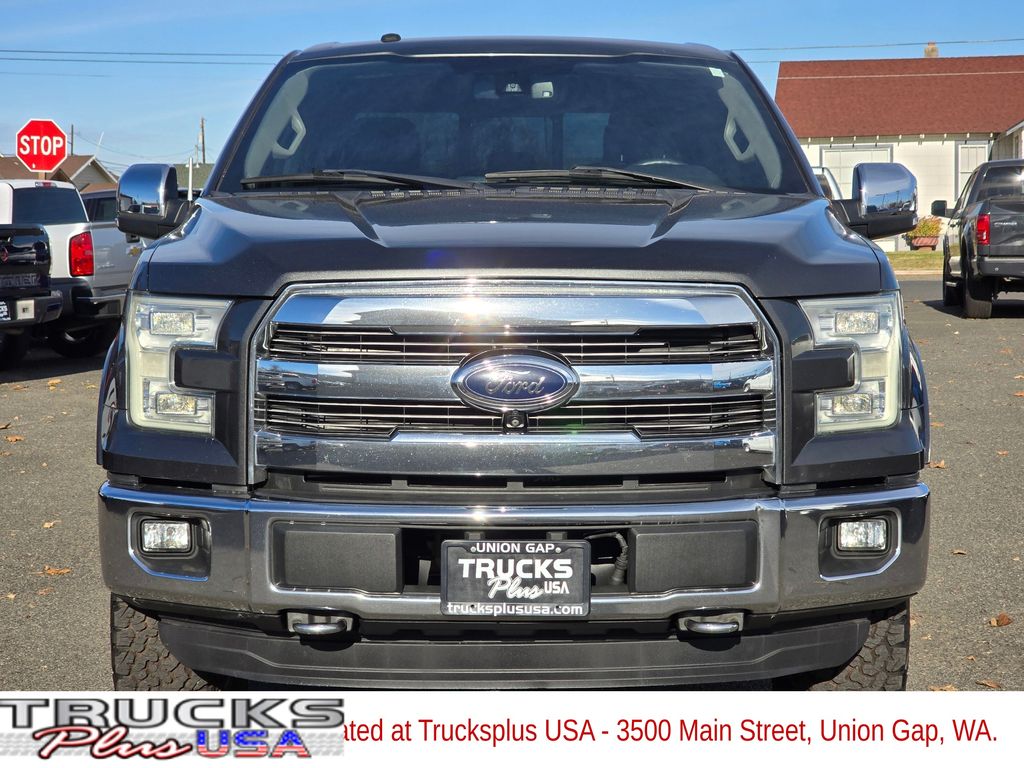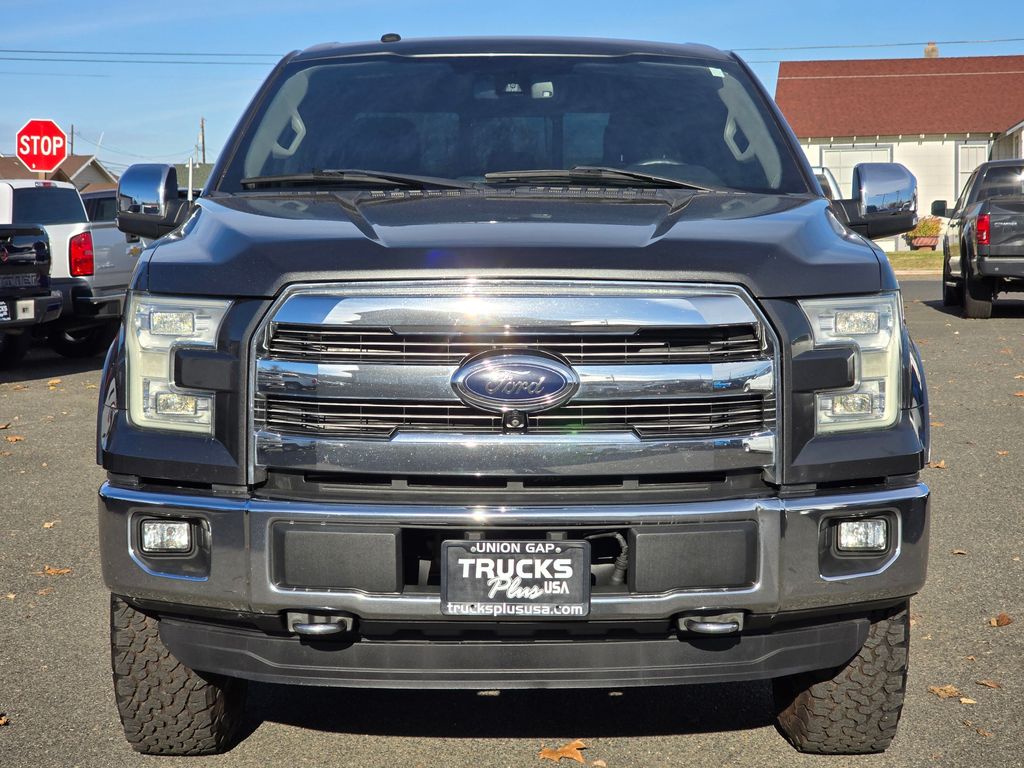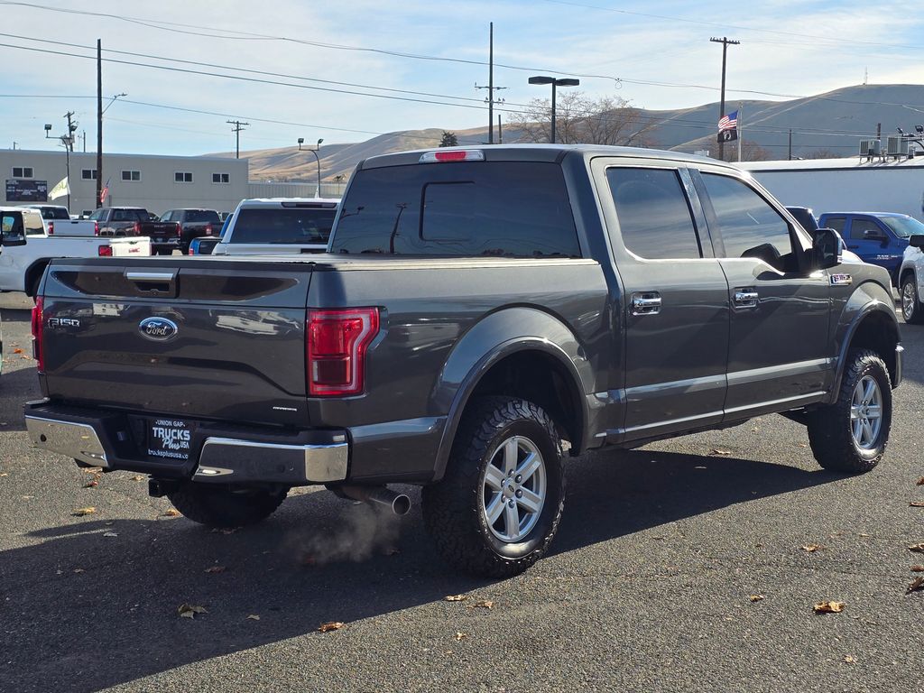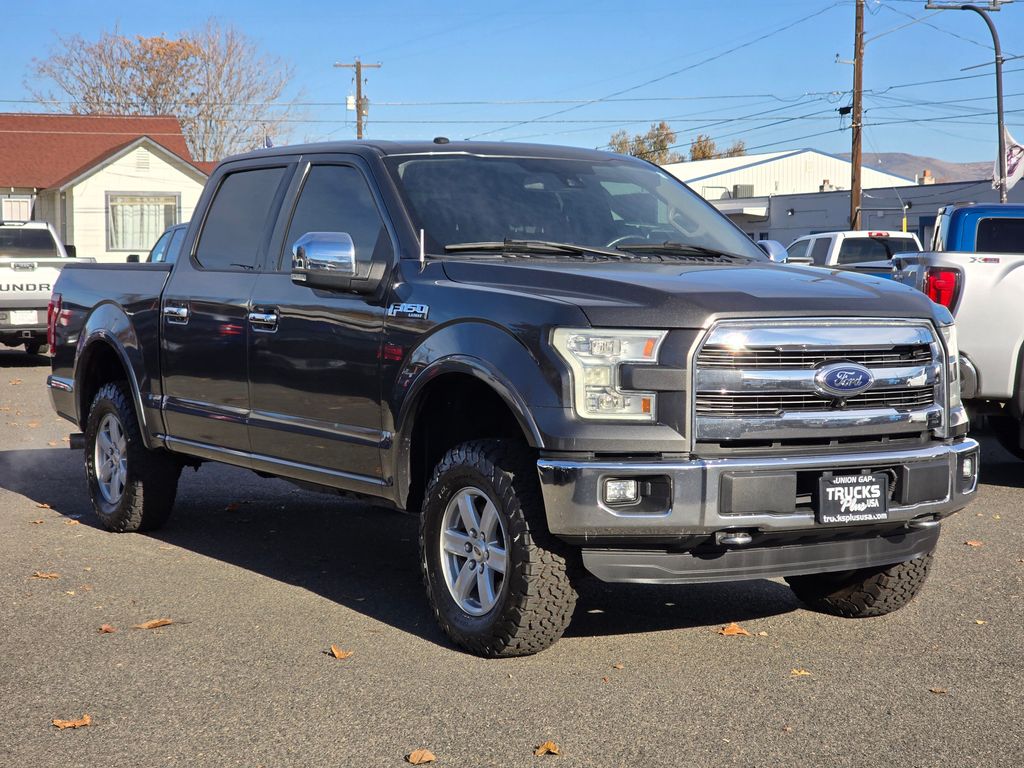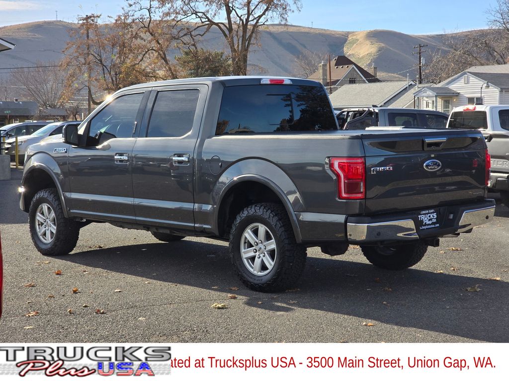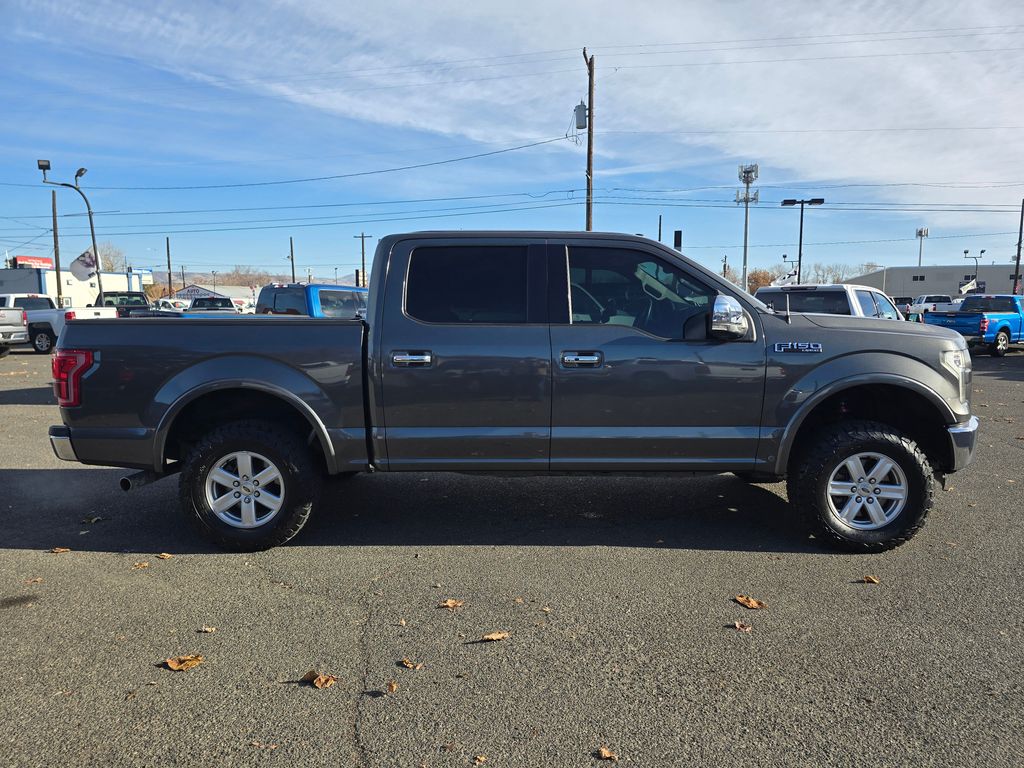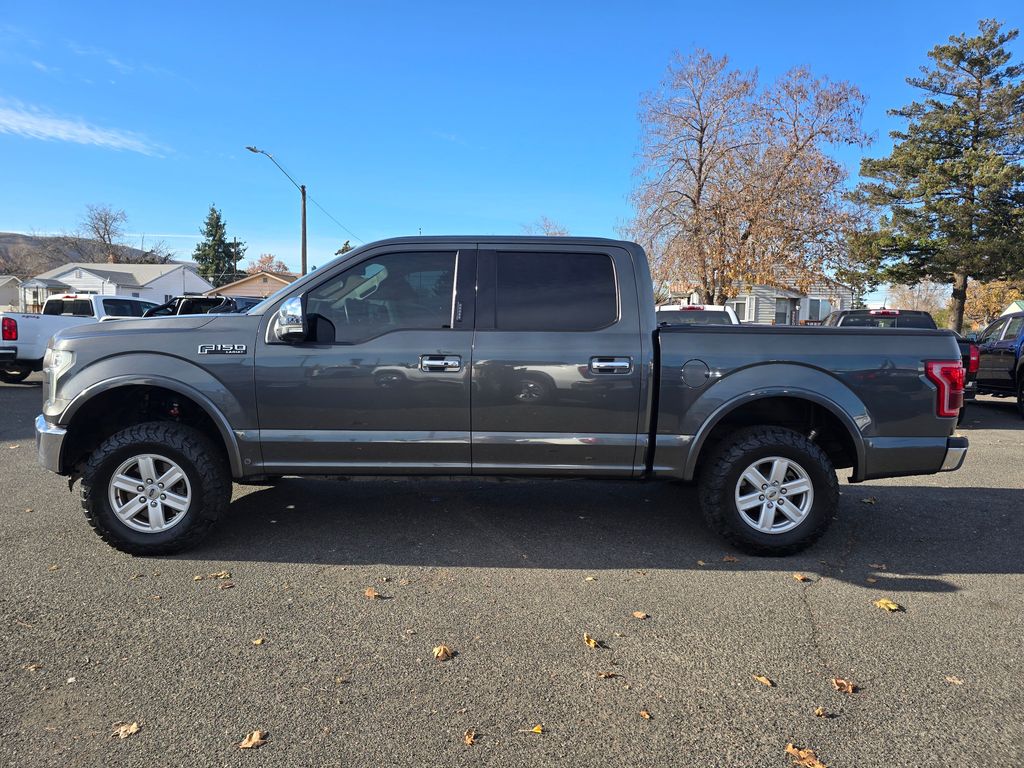Gray 2016 Ford F-150 5.0L V8 FFV 6-Speed Automatic Electronic 4WD 4D SuperCrew 4WD, 3.31 Axle Ratio, 4-Wheel Disc Brakes, ABS brakes, Air Conditioning, Brake assist, Compass, Delay-off headlights, Driver door bin, Dual front impact airbags, Dual front side impact airbags, Electronic Stability Control, Front anti-roll bar, Front wheel independent suspension, Fully automatic headlights, Integrated Trailer Brake Controller, Low tire pressure warning, Occupant sensing airbag, Outside temperature display, Overhead airbag, Passenger door bin, Passenger vanity mirror, Power steering, Rear step bumper, Speed-sensing steering, Split folding rear seat, Tachometer, Telescoping steering wheel, Tilt steering wheel, Traction control, Variably intermittent wipers, Voltmeter, 4WD.