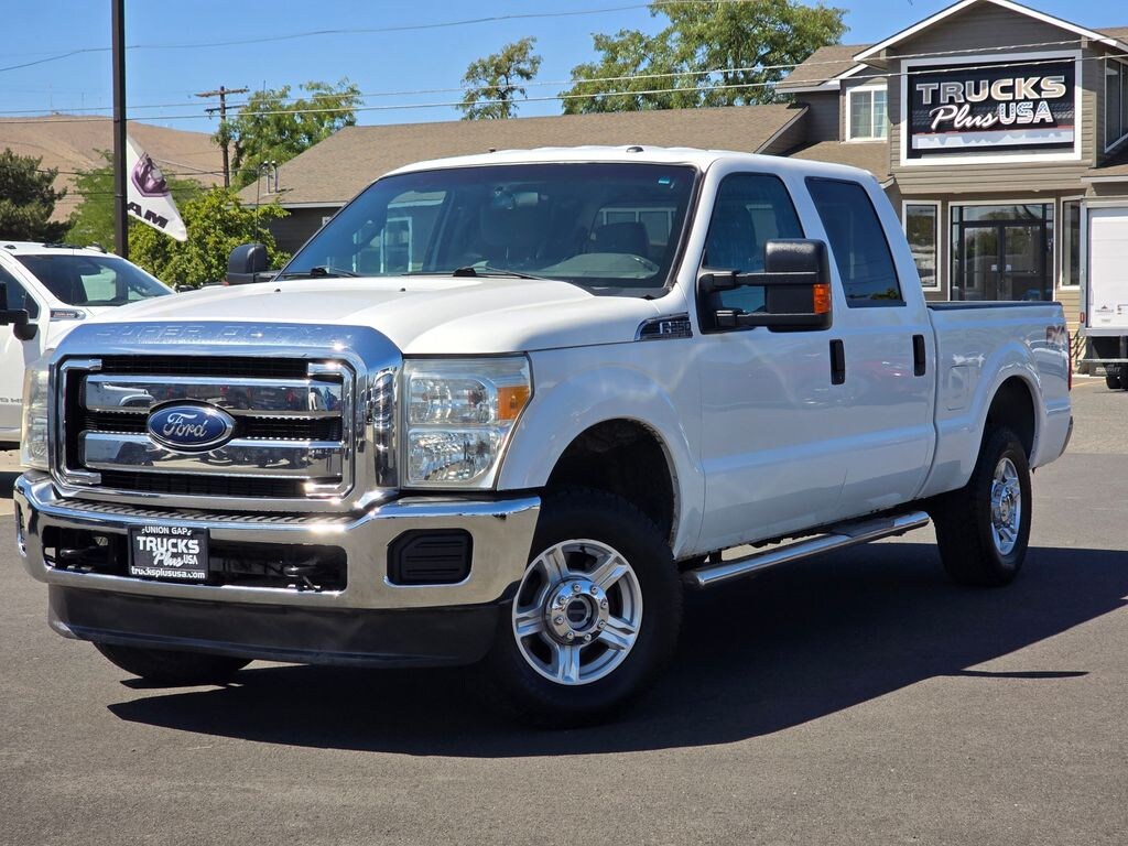 Clean CARFAX. White 2016 Ford F-250SD 6.2L V8 EFI SOHC 16V Flex Fuel TorqShift 6-Speed Automatic 4WD 4D Crew Cab 4WD, 3.73 Axle Ratio, 4-Wheel Disc Brakes, ABS brakes, Air Conditioning, Brake assist, Dual front impact airbags, Dual front side impact airbags, Electronic Stability Control, Extra Heavy-Duty 200-Amp Alternator, Front anti-roll bar, Front reading lights, GVWR: 10,000 lb Payload Package, Low tire pressure warning, Outside temperature display, Overhead airbag, Overhead console, Passenger vanity mirror, Power steering, Rear reading lights, Rear step bumper, Split folding rear seat, Tachometer, Telescoping steering wheel, Tilt steering wheel, Traction control, Variably intermittent wipers, 4WD.