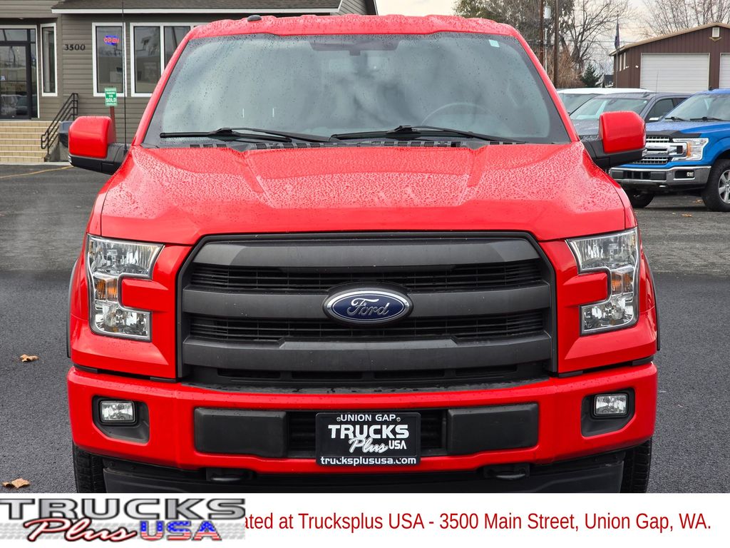 Recent Arrival! Race Red 2017 Ford F-150 Lariat 3.5L V6 10-Speed Automatic 4WD 4D SuperCrew 4WD, 110V/400W Outlet, 18" Machined-Aluminum Wheels, 4-Wheel Disc Brakes, 7 Speakers, ABS brakes, Accent-Color 3-Bar Style Grille, Accent-Color Angular Step Bars, Adjustable pedals, Air Conditioning, Alloy wheels, AM/FM radio: SiriusXM, Auto-dimming door mirrors, Auto-dimming Rear-View mirror, Automatic temperature control, Auxiliary Transmission Oil Cooler, BLIS Blind Spot Information System, Body-Color Front & Rear Bumpers, Box Side Decal, Brake assist, Bumpers: chrome, CD player, Class IV Trailer Hitch Receiver, Compass, Delay-off headlights, Driver door bin, Driver vanity mirror, Dual front impact airbags, Dual front side impact airbags, Electronic Stability Control, Engine Oil Cooler, Equipment Group 501A Mid, Extended Range 36 Gallon Fuel Tank, Exterior Parking Camera Rear, Front anti-roll bar, Front Center Armrest w/Storage, Front dual zone A/C, Front fog lights, Front reading lights, Front wheel independent suspension, Fully automatic headlights, GVWR: 6,500 lbs Payload Package, Heated door mirrors, Heated front seats, Illuminated entry, Integrated Trailer Brake Controller, Lariat Sport Appearance Package, Leather-Trimmed 40/20/40 Front Seat, LED Side-Mirror Spotlights, Low tire pressure warning, Max Trailer Tow Package, Memory seat, Occupant sensing airbag, Outside temperature display, Overhead airbag, Overhead console, Panic alarm, Passenger door bin, Passenger vanity mirror, Pedal memory, Power door mirrors, Power driver seat, Power Glass Sideview Mirr w/Body-Color Skull Caps, Power passenger seat, Power steering, Power windows, Pro Trailer Backup Assist, Radio data system, Radio: Single-CD w/SiriusXM Satellite, Rear reading lights, Rear seat center armrest, Rear step bumper, Rear window defroster, Remote keyless entry, Remote Start System w/Remote Tailgate Release, Reverse Sensing System, Security system, Single-Tip Chrome Exhaust, Speed control, Speed-sensing steering, Split folding rear seat, Steering wheel mounted audio controls, SYNC 3, Tachometer, Tailgate Step w/Tailgate Lift Assist, Telescoping steering wheel, Tilt steering wheel, Traction control, Trip computer, Turn signal indicator mirrors, Universal Garage Door Opener, Upgraded Front Stabilizer Bar, Variably intermittent wipers, Ventilated front seats, Voltmeter, Wheels: 18" 6-Spoke Machined-Aluminum, 4WD.