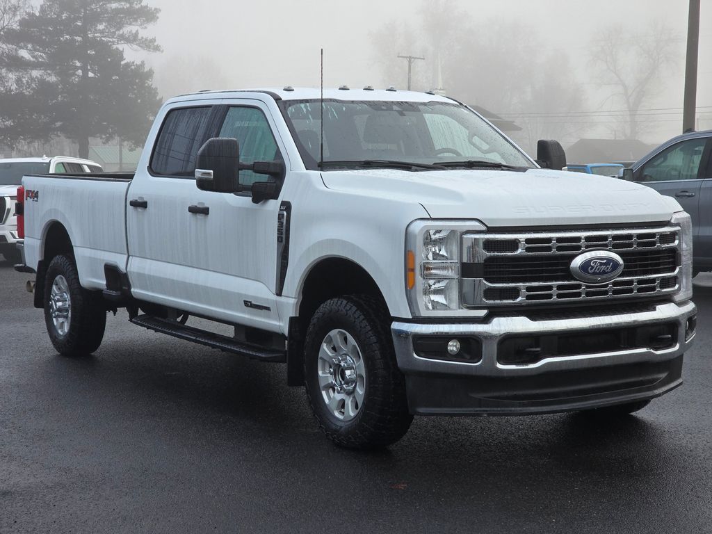 Recent Arrival! Clean CARFAX. White 2023 Ford F-350SD Power Stroke 6.7L V8 DI 32V OHV Turbodiesel 10-Speed Automatic 4WD 4D Crew Cab 4WD, 4-Wheel Disc Brakes, ABS brakes, Air Conditioning, Brake assist, Compass, Delay-off headlights, Dual front impact airbags, Dual front side impact airbags, Electronic Stability Control, Electronic-Locking w/3.73 Axle Ratio, Emergency communication system: SYNC 4 911 Assist, Exterior Parking Camera Rear, Front anti-roll bar, Front reading lights, Fully automatic headlights, Heated door mirrors, Illuminated entry, Low tire pressure warning, Outside temperature display, Overhead airbag, Overhead console, Panic alarm, Passenger vanity mirror, Power door mirrors, Power steering, Power windows, Rear reading lights, Rear step bumper, Remote keyless entry, Speed control, Split folding rear seat, Steering wheel mounted audio controls, Tachometer, Telescoping steering wheel, Tilt steering wheel, Traction control, Trip computer, Turn signal indicator mirrors, Variably intermittent wipers, 4WD.