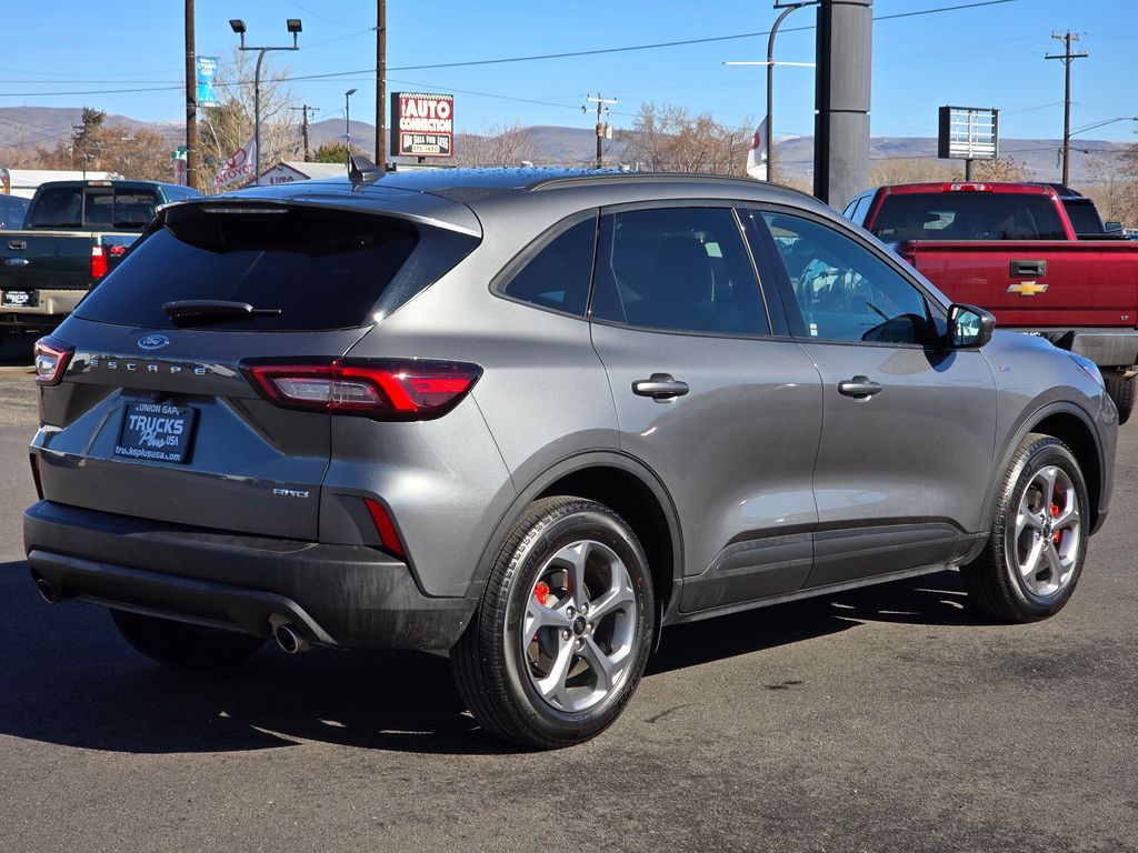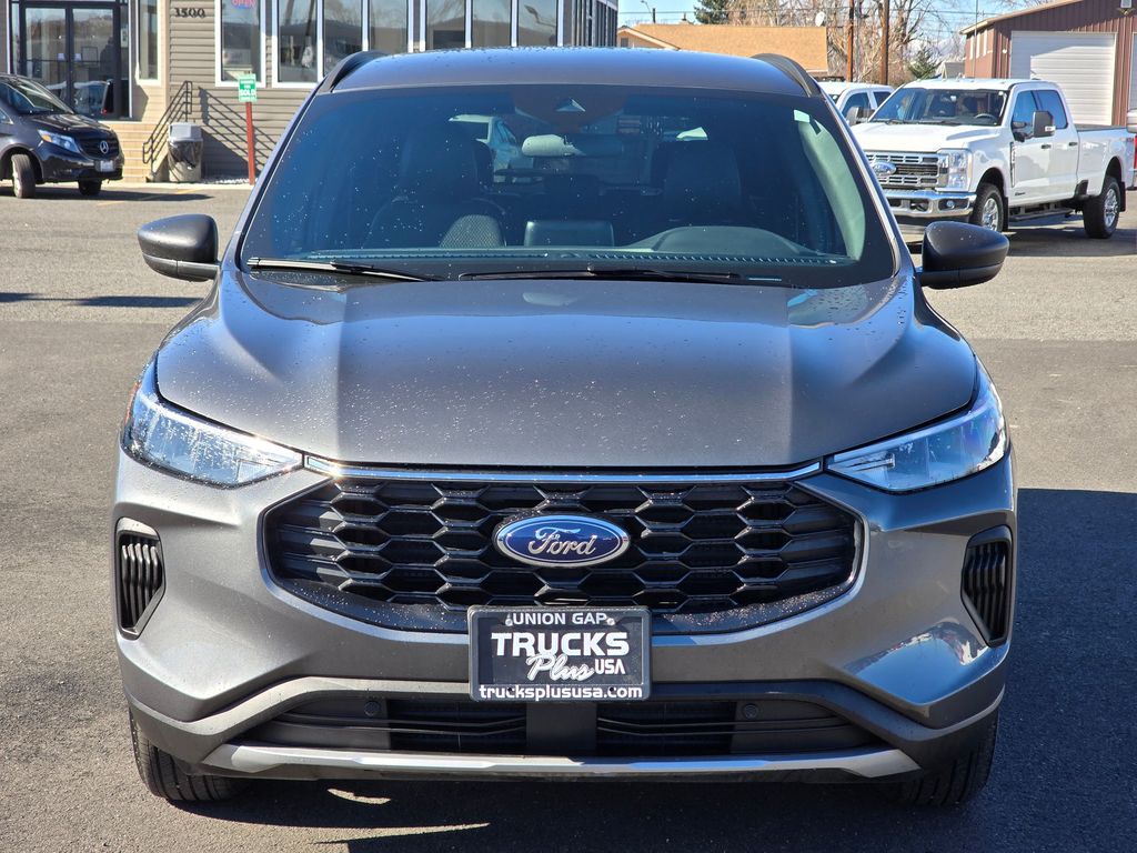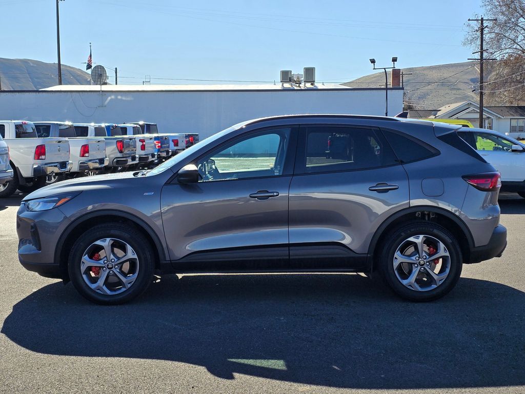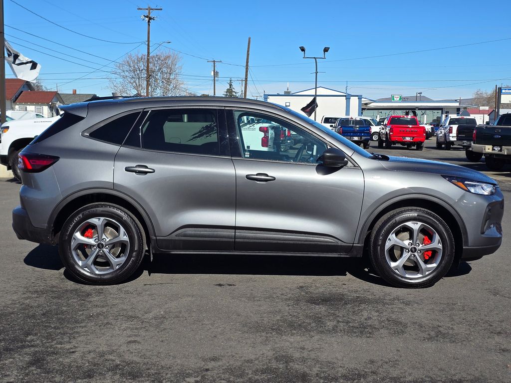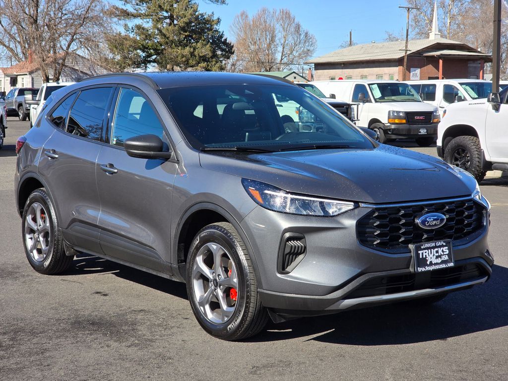 Recent Arrival! Clean CARFAX. Gray Metallic 2025 Ford Escape ST-Line 1.5L EcoBoost 8-Speed Automatic AWD 4D Sport Utility AWD, 3.81 Axle Ratio, 4-Wheel Disc Brakes, 6 Speakers, ABS brakes, Air Conditioning, Alloy wheels, AM/FM radio: SiriusXM, AM/FM Stereo, Auto High-beam Headlights, Automatic temperature control, Brake assist, Bumpers: body-color, Compass, Delay-off headlights, Driver door bin, Driver vanity mirror, Dual front impact airbags, Dual front side impact airbags, Electronic Stability Control, Emergency communication system: SYNC 4 911 Assist, Equipment Group 300A, FordPass Connect, Four wheel independent suspension, Front anti-roll bar, Front Bucket Seats, Front Center Armrest, Front dual zone A/C, Front License Plate Bracket, Front reading lights, Fully automatic headlights, Illuminated entry, Internet access capable: FordPass Connect 4G, Knee airbag, Low tire pressure warning, Occupant sensing airbag, Outside temperature display, Overhead airbag, Overhead console, Panic alarm, Passenger door bin, Passenger vanity mirror, Power door mirrors, Power driver seat, Power steering, Power windows, Radio data system, Rear anti-roll bar, Rear reading lights, Rear seat center armrest, Rear window defroster, Rear window wiper, Remote keyless entry, Speed control, Speed-sensing steering, Speed-Sensitive Wipers, Split folding rear seat, Spoiler, Sport steering wheel, Steering wheel mounted audio controls, SYNC 4, Tachometer, Telescoping steering wheel, Tilt steering wheel, Traction control, Trip computer, Variably intermittent wipers, Vinyl/Cloth Front Sport Contour Bucket Seats, Wheels: 18" Rock Metallic Painted Aluminum, AWD.