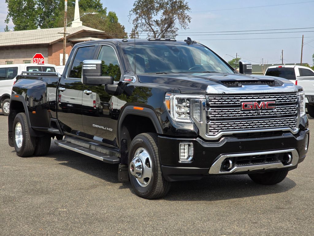 Clean CARFAX. Onyx Black 2022 GMC Sierra 3500HD Denali Duramax 6.6L V8 Turbodiesel 10-Speed Automatic 4WD 4D Crew Cab 10-Speed Automatic, 4WD, Black Leather, 10-Way Power Driver Seat Adjuster w/Lumbar, 10-Way Power Passenger Seat Adjuster w/Lumbar, 12-Volt Rear Auxiliary Power Outlet, 120-Volt Bed Mounted Power Outlet, 120-Volt Instrument Panel Power Outlet, 2 USB Ports (First Row), 2 USB Ports Inside Console, 2-Speed Active Transfer Case, 2nd Row Dual USB Charge-Only Ports, 3.42 Rear Axle Ratio, 3.73 Rear Axle Ratio, 4-Wheel Disc Brakes, 6" Rectangular Chromed Tubular Assist Steps, 7 Speakers, ABS brakes, Air Conditioning, Alloy wheels, AM/FM radio: SiriusXM with 360L, Apple CarPlay/Android Auto, Auto High-beam Headlights, Auto-dimming door mirrors, Auto-Dimming Inside Rearview Mirror w/Camera, Auto-dimming Rear-View mirror, Automatic Emergency Braking, Automatic temperature control, Bed View Camera w/2 Trailer Camera Provisions, Bose Premium 7 Speaker Sound System, Brake assist, Bumpers: body-color, Cargo Tie-Down Rings (Set of 4) (LPO), Compass, Compass Located In Instrument Cluster, Deep-Tinted Glass, Delay-off headlights, Denali Ultimate Package, Driver Alert Package I, Driver Alert Package II, Driver door bin, Driver Memory, Driver vanity mirror, Dual 220-Amps Primary/170-Amps Aux Alternators, Dual front impact airbags, Dual front side impact airbags, Electric Rear-Window Defogger, Electrical Lock Control Steering Column, Electronic Stability Control, Engine Block Heater, Exhaust Brake, Exterior Parking Camera Rear, Floor-Mounted Center Console, Following Distance Indicator, Forge Perforated Leather-Appointed Seat Trim, Forward Collision Alert, Front anti-roll bar, Front Bucket Seats, Front Center Armrest, Front Chrome Recovery Hooks, Front dual zone A/C, Front fog lights, Front reading lights, Front wheel independent suspension, Fully automatic headlights, Garage door transmitter, Genuine wood console insert, Genuine wood door panel insert, GMC Connected Access Capable, HD Rear Vision Camera, HD Surround Vision w/2 Trailer View Camera Provisions, Heated door mirrors, Heated Driver & Front Outboard Passenger Seats, Heated front seats, Heated steering wheel, Heavy Duty Front Spring/Camper Package, Heavy-Duty 80 Amp Battery, High Idle Switch, Hill Descent Control, Hitch Guidance w/Hitch View, Illuminated entry, In-Vehicle Trailering System App, Integrated Trailer Brake Controller, IntelliBeam Automatic High Beam On/Off, Keyless Open & Start, Lane Change Alert w/Side Blind Zone Alert, Lane Departure Warning System, LED Cargo Area Lighting, Low tire pressure warning, Manual Tilt-Wheel/Telescoping Steering Column, Memory seat, Multicolor 15" Diagonal Head-Up Display, Navigation System, Not Equipped w/Heated 2nd Row Outboard Seats, Occupant sensing airbag, Off-Road Suspension, OnStar & GMC Connected Services Capable, Outside temperature display, Overhead airbag, Overhead console, Panic alarm, Passenger door bin, Passenger vanity mirror, Pickup Bed, Polished Exhaust Tip, Power Door Locks, Power door mirrors, Power driver seat, Power Front Passenger Windows w/Express Up/Down, Power Front Windows w/Driver Express Up/Down, Power passenger seat, Power Rear Windows w/Express Down, Power Sliding Rear Window w/Defogger, Power steering, Power Sunroof, Power windows, Preferred Equipment Group 5SA, Prem Front Floor Liners w/Removable Carpet Insert, Prem Rear Floor Liners w/Removable Carpet Insert, Premium audio system: Premium GMC Infotainment System, ProGrade Trailering System, Radio: AM/FM w/Prem GMC Infotainment System & Navi, Rear Cross Traffic Alert, Rear reading lights, Rear seat center armrest, Rear step bumper, Rear Wheelhouse Liners, Rear window defroster, Remote keyless entry, Remote Vehicle Starter System, Safety Alert Seat, Security system, Signature Denali Grille w/High Gloss Black Mesh, SiriusXM w/360L, Speed control, Speed-sensing steering, Split folding rear seat, Spray-On Pickup Bed Liner w/Denali Logo, Steering Wheel Au