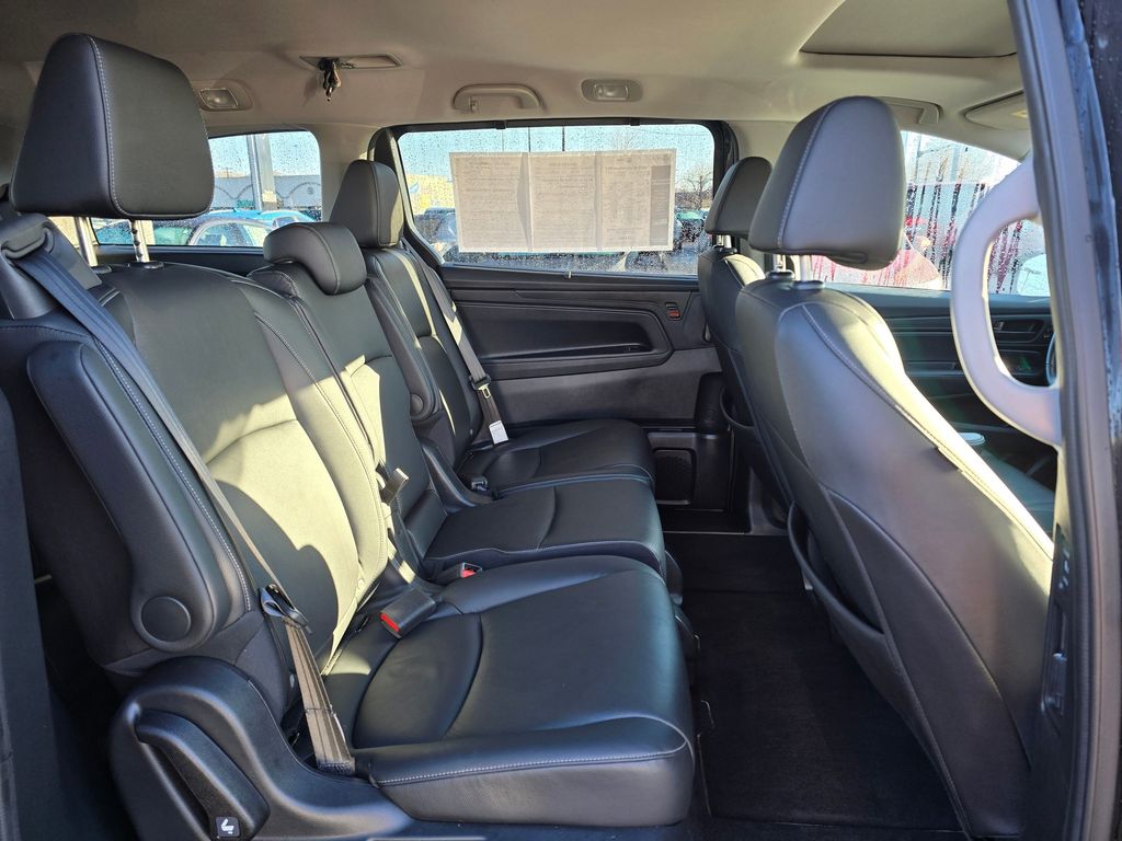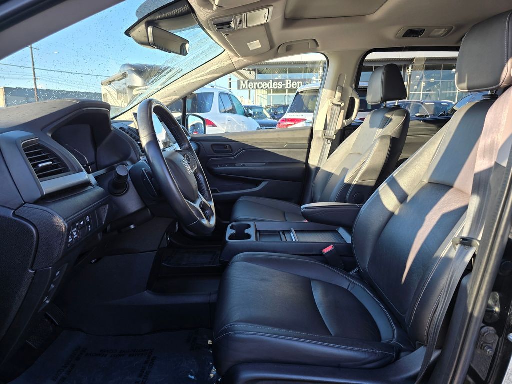 Bluetooth technology is built into this unit, keeping your hands on the steering wheel and your focus on the road. This Honda Odyssey comes equipped with Android Auto for seamless smartphone integration on the road. The Honda Odyssey's Forward Collision Warning system alerts the driver to potential front-end collisions, enhancing safety. The leather seats in it are a must for buyers looking for comfort, durability, and style. Never get into a cold vehicle again with the remote start feature on the Honda Odyssey. This unit offers Apple CarPlay for seamless connectivity. See what's behind you with the back up camera on this model. This mini van offers Automatic Climate Control for personalized comfort. This Honda Odyssey has auto-adjust speed for safe following. This mini van is front wheel drive. This model has a V6, 3.5L high output engine. Maintaining a stable interior temperature in this Honda Odyssey is easy with the climate control system.