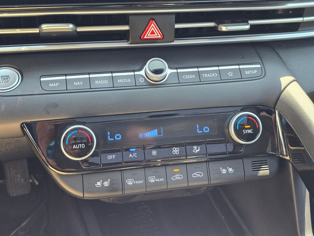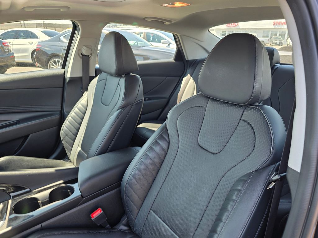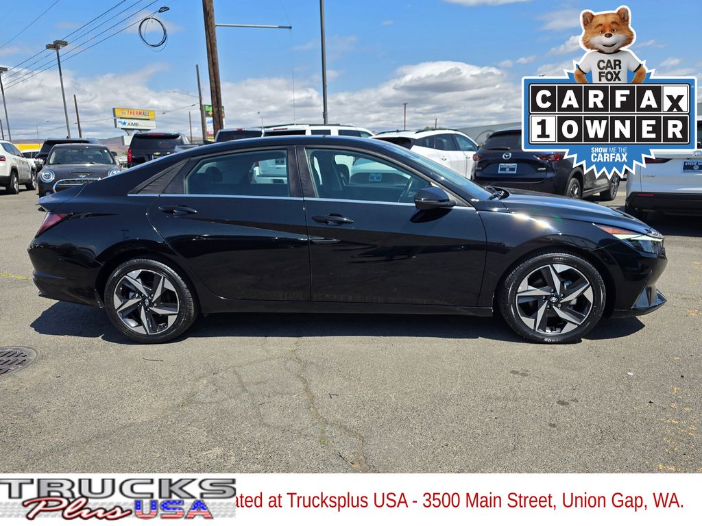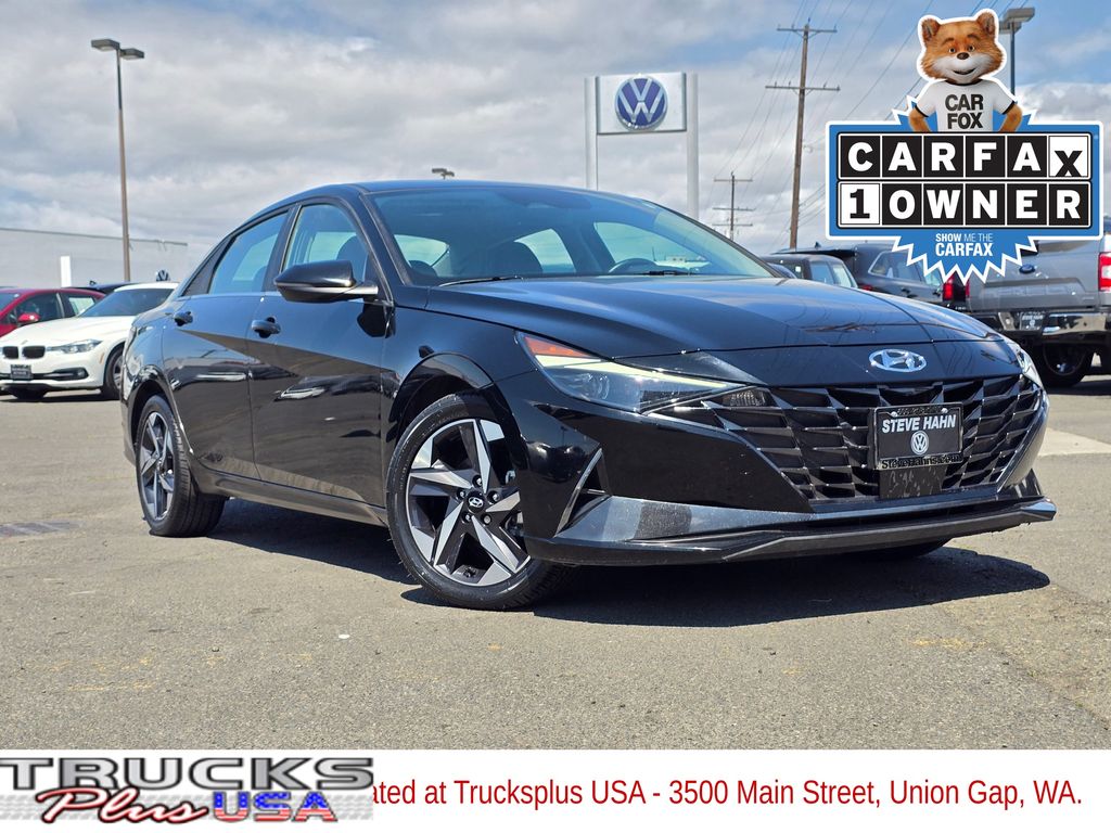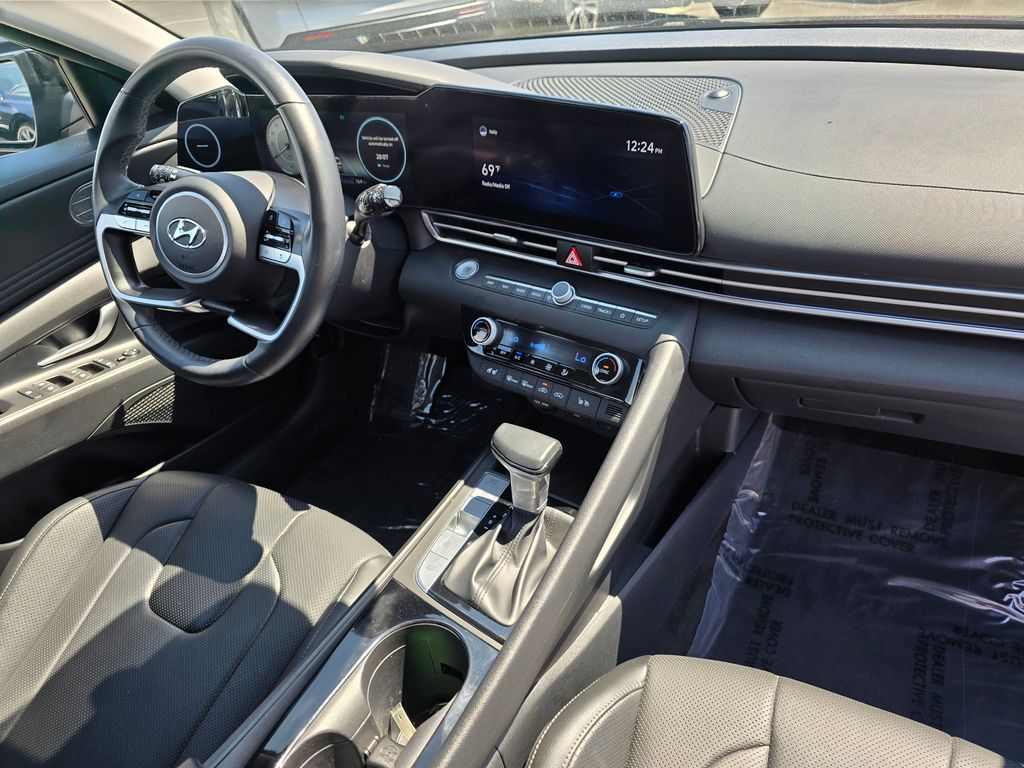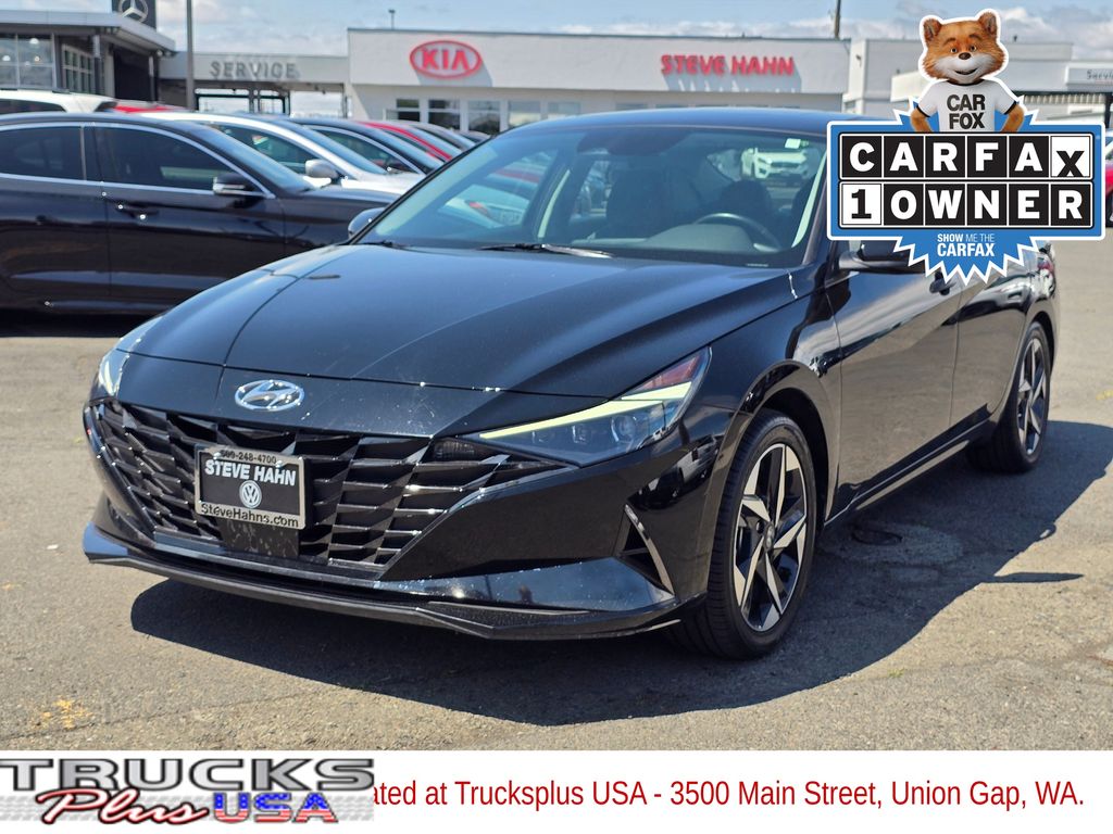Recent Arrival! CARFAX One-Owner. Phantom Black 2022 Hyundai Elantra Hybrid Limited 1.6L I4 DGI Hybrid DOHC 16V 6-Speed EcoShift Dual Clutch FWD 4D Sedan 1.6L I4 DGI Hybrid DOHC 16V, 17" x 7.0J Alloy Wheels, 4-Wheel Disc Brakes, 8 Speakers, ABS brakes, Air Conditioning, Alloy wheels, AM/FM radio: SiriusXM, Apple CarPlay & Android Auto, Auto High-beam Headlights, Auto-dimming Rear-View mirror, Automatic temperature control, Brake assist, Bumpers: body-color, Cargo Block, Cargo Net, Cargo Package, Carpeted Floor Mats, Delay-off headlights, Driver door bin, Driver vanity mirror, Dual front impact airbags, Dual front side impact airbags, Electronic Stability Control, Emergency communication system: Blue Link Connected Car Service (3-year complimentary subscription), Exterior Parking Camera Rear, First Aid Kit, Front anti-roll bar, Front Bucket Seats, Front Center Armrest, Front dual zone A/C, Front reading lights, Front wheel independent suspension, Fully automatic headlights, Heated & Ventilated Front Bucket Seats, Heated door mirrors, Heated front seats, Illuminated entry, Leather Shift Knob, Leather-Trimmed Seating Surfaces, Low tire pressure warning, Memory seat, Navigation System, Occupant sensing airbag, Option Group 01, Outside temperature display, Overhead airbag, Overhead console, Panic alarm, Passenger door bin, Passenger vanity mirror, Power door mirrors, Power driver seat, Power moonroof, Power steering, Power windows, Radio: AM/FM/HD/SiriusXM Display Audio, Rear seat center armrest, Rear window defroster, Remote keyless entry, Reversible Cargo Tray, Security system, Speed control, Speed-sensing steering, Split folding rear seat, Steering wheel mounted audio controls, Tachometer, Telescoping steering wheel, Tilt steering wheel, Traction control, Trip computer, Turn signal indicator mirrors, Variably intermittent wipers, Ventilated front seats, Wheel Locks, 1.6L I4 DGI Hybrid DOHC 16V.
