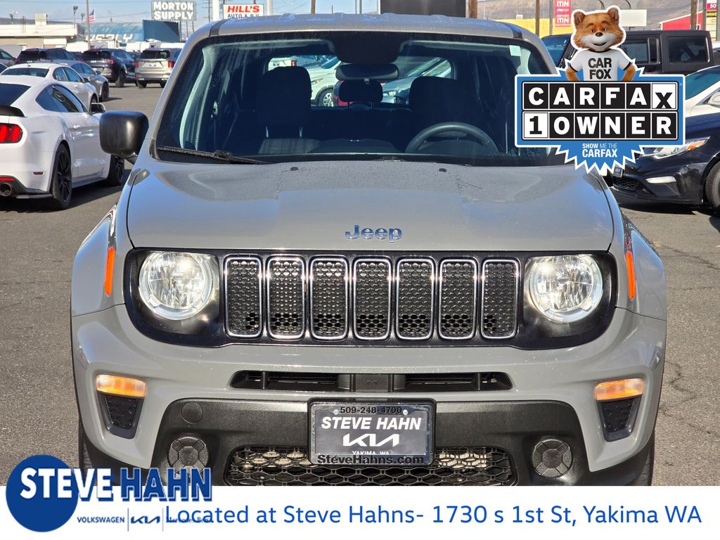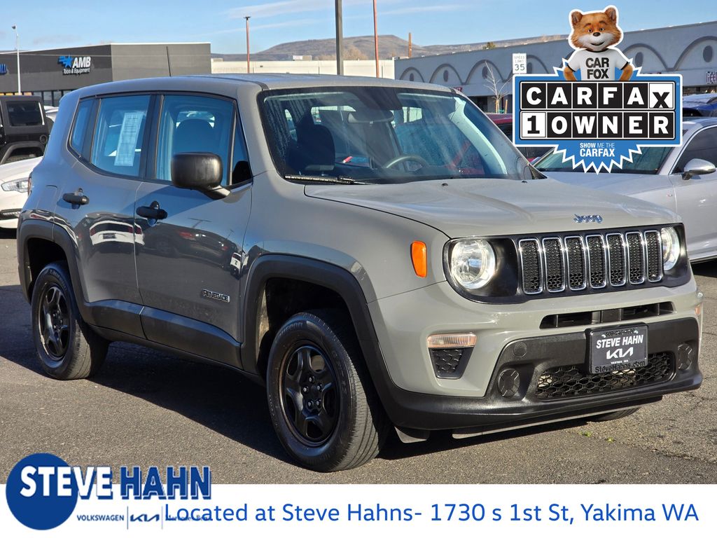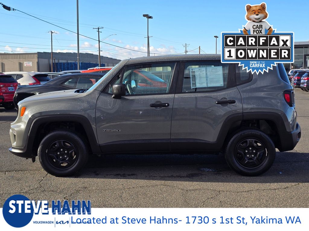 Recent Arrival! CARFAX One-Owner. Sting-Gray Clearcoat 2020 Jeep Renegade Sport 2.4L I4 9-Speed 948TE Automatic 4WD 4D Sport Utility 16" x 6.5" Styled Steel Wheels, 3.734 Final Drive Ratio, 4-Wheel Disc Brakes, 6 Speakers, ABS brakes, Air Conditioning, AM/FM radio, Anti-whiplash front head restraints, Brake assist, Cloth Low-Back Bucket Seats, Compass, Delay-off headlights, Driver door bin, Driver vanity mirror, Dual front impact airbags, Dual front side impact airbags, Electronic Stability Control, Emergency communication system, Four wheel independent suspension, Front anti-roll bar, Front Bucket Seats, Front Center Armrest, Front reading lights, Heated door mirrors, Illuminated entry, Knee airbag, Low tire pressure warning, Manufacturer's Statement of Origin, Normal Duty Suspension, Occupant sensing airbag, Outside temperature display, Overhead airbag, Panic alarm, ParkView Rear Back-Up Camera, Passenger door bin, Passenger vanity mirror, Power door mirrors, Power steering, Power windows, Quick Order Package 2XA, Radio data system, Radio: Uconnect 3 w/5" Display, Rear anti-roll bar, Rear window defroster, Rear window wiper, Remote keyless entry, Speed control, Split folding rear seat, Spoiler, Steering wheel mounted audio controls, Tachometer, Telescoping steering wheel, Tilt steering wheel, Traction control, Trip computer, Variably intermittent wipers, Voltmeter.