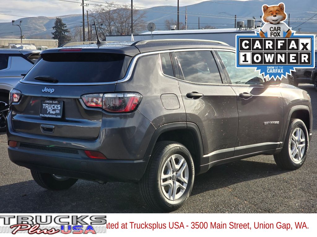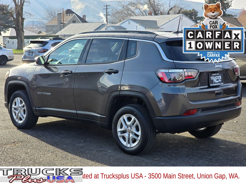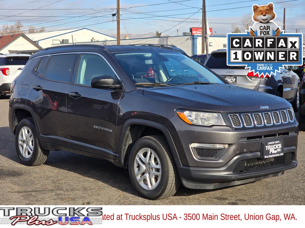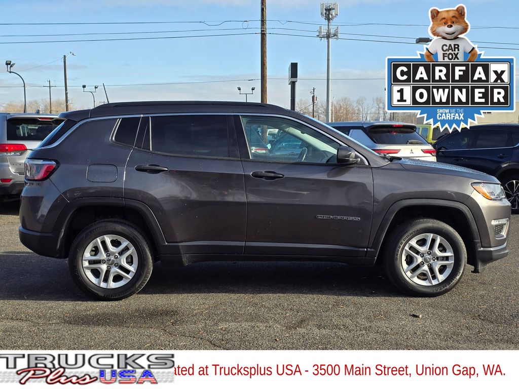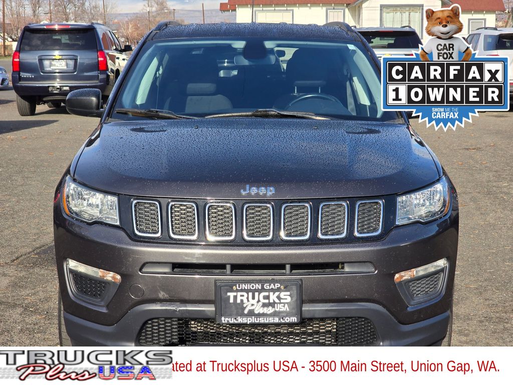 Recent Arrival! Clean CARFAX. Granite Crystal Metallic Clearcoat 2021 Jeep Compass Sport 2.4L I4 9-Speed 948TE Automatic 4WD 4D Sport Utility 4WD, 3.73 Axle Ratio, 4-Wheel Disc Brakes, 6 Speakers, ABS brakes, Air Conditioning, All-Season Floor Mats, AM/FM radio, Anti-whiplash front head restraints, Apple CarPlay/Android Auto, Automatic temperature control, Black Side Roof Rails, Brake assist, Bright Day Light Opening Moldings, Bumpers: body-color, Cloth Low-Back Bucket Seats, Cold Weather Group, Compass, Deep Tint Sunscreen Glass, Delay-off headlights, Driver door bin, Driver vanity mirror, Dual front impact airbags, Dual front side impact airbags, Electronic Stability Control, Four wheel independent suspension, Front anti-roll bar, Front Bucket Seats, Front Center Armrest w/Storage, Front dual zone A/C, Front License Plate Bracket, Front reading lights, Heated door mirrors, Heated Front Seats, Heated Steering Wheel, Illuminated entry, Knee airbag, Leather Wrapped Steering Wheel, Low tire pressure warning, Manufacturer's Statement of Origin, Occupant sensing airbag, Outside temperature display, Overhead airbag, Overhead console, Panic alarm, ParkView Rear Back-Up Camera, Passenger door bin, Passenger vanity mirror, Power door mirrors, Power steering, Power windows, Quick Order Package 2GA, Radio: Uconnect 4 w/7" Display, Rear anti-roll bar, Rear seat center armrest, Rear window defroster, Rear window wiper, Remote keyless entry, Remote Start System, Reversible Carpet/Vinyl Cargo Mat, Speed control, Split folding rear seat, Spoiler, Sport Appearance Plus, Steering wheel mounted audio controls, Tachometer, Telescoping steering wheel, Tilt steering wheel, Traction control, Trip computer, Variably intermittent wipers, Wheels: 16" x 6.5" Silver Painted Aluminum, Wheels: 16" x 6.5" Styled Black Steel, Windshield Wiper De-Icer, 4WD.
