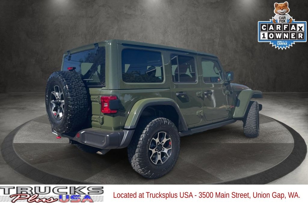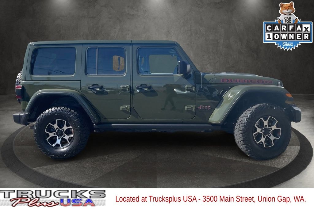 Recent Arrival! CARFAX One-Owner. Clean CARFAX. Sarge Green Clearcoat 2021 Jeep Wrangler Unlimited Rubicon 2.0L I4 DOHC 8-Speed Automatic 4WD 4D Sport Utility 1-Year SiriusXM Guardian Trial, 240 Amp Alternator, 4G LTE Wi-Fi Hot Spot, 5-Year SiriusXM Traffic Service, 5-Year SiriusXM Travel Link Service, 7 & 4 Pin Wiring Harness, 700 Amp Maintenance Free Battery, 8.4" Radio & Premium Audio Group, 8.4" Touchscreen Display, Alpine Premium Audio System, Auto-Dimming Rear-View Mirror, Auxiliary Switches, Blind Spot & Cross Path Detection, Class II Receiver Hitch, Cold Weather Group, Daytime Running Lamps LED Accents, Emergency/Assistance Call, For Details, Visit DriveUconnect.com, Front LED Fog Lamps, GPS Navigation, HD Radio, Heated Front Seats, Heated Steering Wheel, LED Lighting Group, LED Premium Reflector Headlamps, LED Taillamps, Off-Road Info Pages, ParkSense Rear Park Assist System, Quick Order Package 22R, Radio: Uconnect 4C Nav w/8.4" Display, Safety Group, SiriusXM Traffic Plus, SiriusXM Travel Link, Trailer Tow & HD Electrical Group, 4-Wheel Disc Brakes, 4.10 Rear Axle Ratio, 8 Speakers, ABS brakes, Air Conditioning, Alloy wheels, AM/FM radio: SiriusXM, Apple CarPlay/Android Auto, Automatic temperature control, Aux Battery, Body Color 3-Piece Hard Top, Body Color Fender Flares, Brake assist, Compass, Delay-off headlights, Driver door bin, Driver vanity mirror, Dual front impact airbags, Dual front side impact airbags, Electronic Stability Control, Front anti-roll bar, Front Bucket Seats, Front Center Armrest w/Storage, Front dual zone A/C, Front fog lights, Front License Plate Bracket, Front reading lights, Fully automatic headlights, Garage door transmitter, Heated door mirrors, Illuminated entry, Integrated roll-over protection, Leather steering wheel, Low tire pressure warning, Manufacturer's Statement of Origin, MOPAR Hardtop Headliner, Non-Lock Fuel Cap w/o Discriminator, Occupant sensing airbag, Outside temperature display, Panic alarm, ParkView Rear Back-Up Camera, Passenger door bin, Passenger vanity mirror, Performance Suspension, Power door mirrors, Power steering, Power windows, Premium Cloth Low-Back Bucket Seats, Radio data system, Radio: Uconnect 4 w/7" Display, Rear anti-roll bar, Rear reading lights, Remote keyless entry, Remote Start System, Security system, Speed control, Split folding rear seat, Steering wheel mounted audio controls, Stop-Start Dual Battery System, Tachometer, Telescoping steering wheel, Tilt steering wheel, Traction control, Trip computer, Variably intermittent wipers, Voltmeter, Wheels: 17" x 7.5" Machined w/Black Pockets, 1-Year SiriusXM Guardian Trial, 240 Amp Alternator, 4G LTE Wi-Fi Hot Spot, 5-Year SiriusXM Traffic Service, 5-Year SiriusXM Travel Link Service, 7 & 4 Pin Wiring Harness, 700 Amp Maintenance Free Battery, 8.4" Radio & Premium Audio Group, 8.4" Touchscreen Display, Alpine Premium Audio System, Auto-Dimming Rear-View Mirror, Auxiliary Switches, Blind Spot & Cross Path Detection, Class II Receiver Hitch, Cold Weather Group, Daytime Running Lamps LED Accents, Emergency/Assistance Call, For Details, Visit DriveUconnect.com, Front LED Fog Lamps, GPS Navigation, HD Radio, Heated Front Seats, Heated Steering Wheel, LED Lighting Group, LED Premium Reflector Headlamps, LED Taillamps, Off-Road Info Pages, ParkSense Rear Park Assist System, Quick Order Package 22R, Radio: Uconnect 4C Nav w/8.4" Display, Safety Group, SiriusXM Traffic Plus, SiriusXM Travel Link, Trailer Tow & HD Electrical Group.