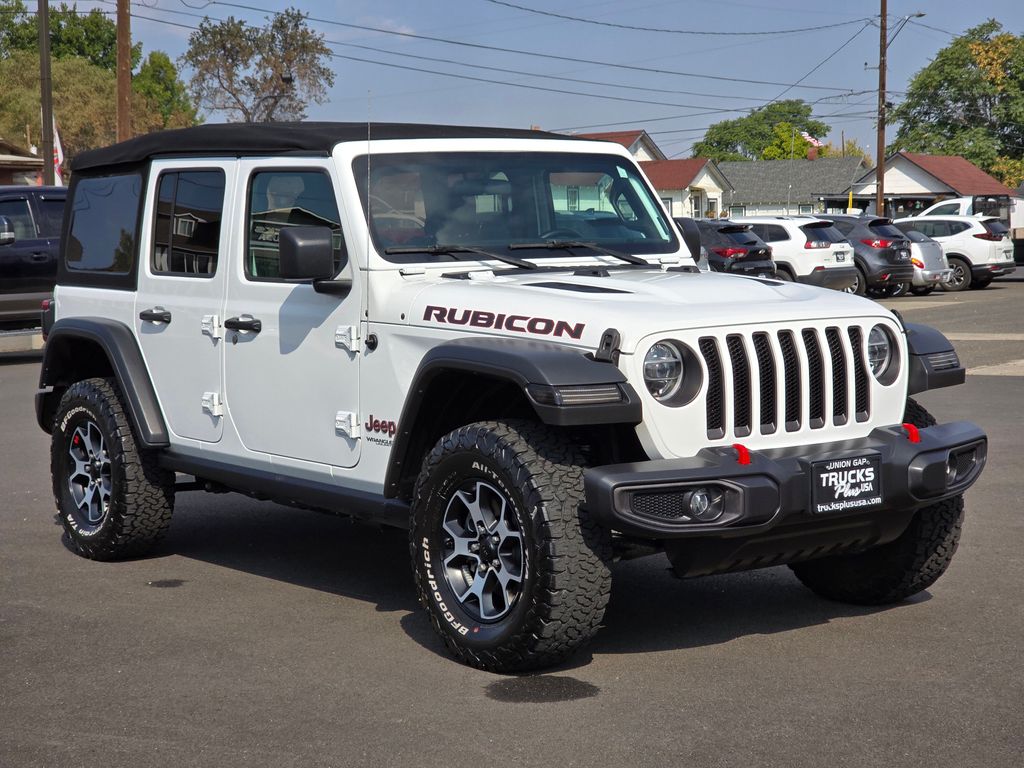 Recent Arrival! CARFAX One-Owner. Clean CARFAX. Bright White Clearcoat 2021 Jeep Wrangler Unlimited Rubicon 3.6L V6 24V VVT 8-Speed Automatic 4WD 4D Sport Utility 240 Amp Alternator, 4-Wheel Disc Brakes, 4.10 Rear Axle Ratio, 7 & 4 Pin Wiring Harness, 700 Amp Maintenance Free Battery, 8 Speakers, ABS brakes, Air Conditioning, Alloy wheels, AM/FM radio: SiriusXM, Apple CarPlay/Android Auto, Automatic temperature control, Aux Battery, Auxiliary Switches, Blind Spot & Cross Path Detection, Body Color Fender Flares, Brake assist, Class II Receiver Hitch, Compass, Daytime Running Lamps LED Accents, Delay-off headlights, Driver door bin, Driver vanity mirror, Dual front impact airbags, Dual front side impact airbags, Electronic Stability Control, Front anti-roll bar, Front Bucket Seats, Front Center Armrest w/Storage, Front dual zone A/C, Front fog lights, Front LED Fog Lamps, Front reading lights, Fully automatic headlights, Garage door transmitter, Heated door mirrors, Illuminated entry, Integrated roll-over protection, Leather steering wheel, LED Lighting Group, LED Premium Reflector Headlamps, LED Taillamps, Low tire pressure warning, MOPAR All-Weather Floor Mats (DISC), Non-Lock Fuel Cap w/o Discriminator, Occupant sensing airbag, Outside temperature display, Panic alarm, ParkSense Rear Park Assist System, ParkView Rear Back-Up Camera, Passenger door bin, Passenger vanity mirror, Performance Suspension, Power door mirrors, Power steering, Power windows, Premium Black Sunrider Soft Top, Premium Cloth Low-Back Bucket Seats, Quick Order Package 25R, Radio data system, Radio: Uconnect 4 w/7" Display, Rear anti-roll bar, Rear reading lights, Remote keyless entry, Safety Group, Security system, Speed control, Split folding rear seat, Steering wheel mounted audio controls, Stop-Start Dual Battery System, Tachometer, Telescoping steering wheel, Tilt steering wheel, Traction control, Trailer Tow & HD Electrical Group, Trip computer, Variably intermittent wipers, Voltmeter, Wheels: 17" x 7.5" Machined w/Black Pockets.