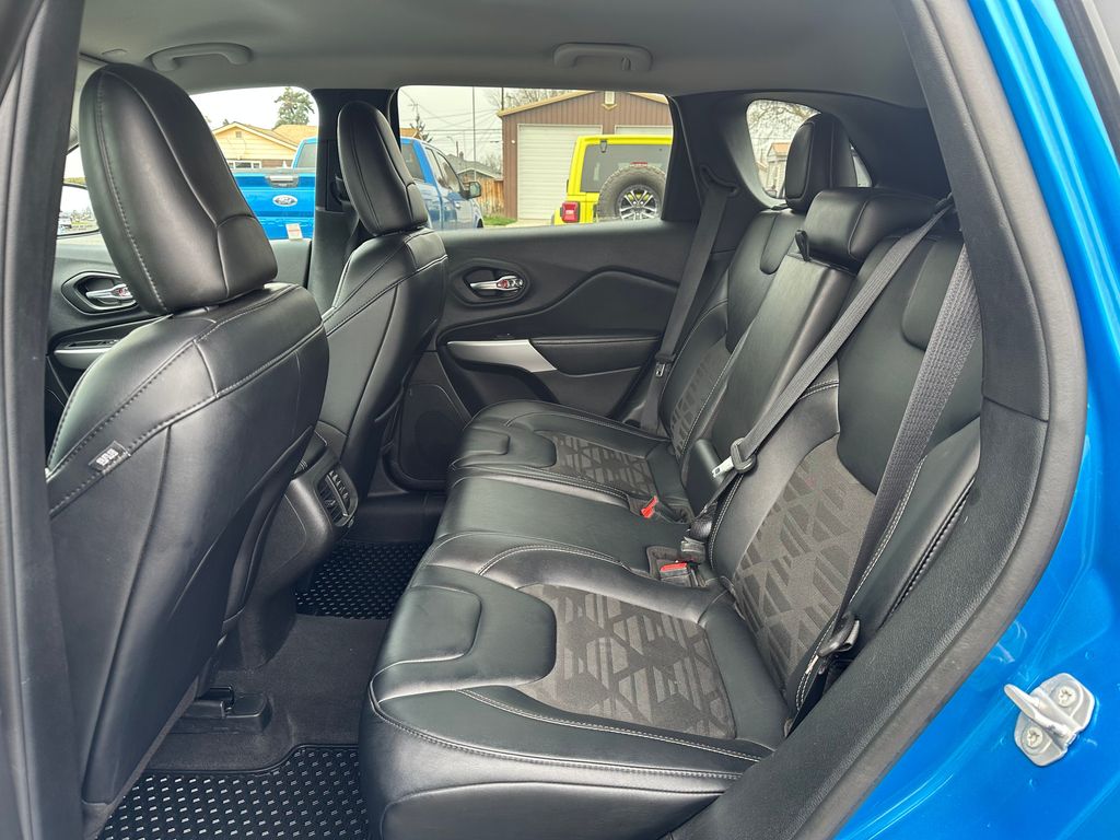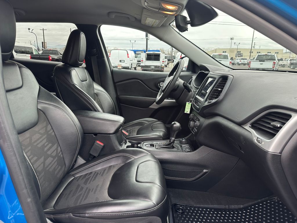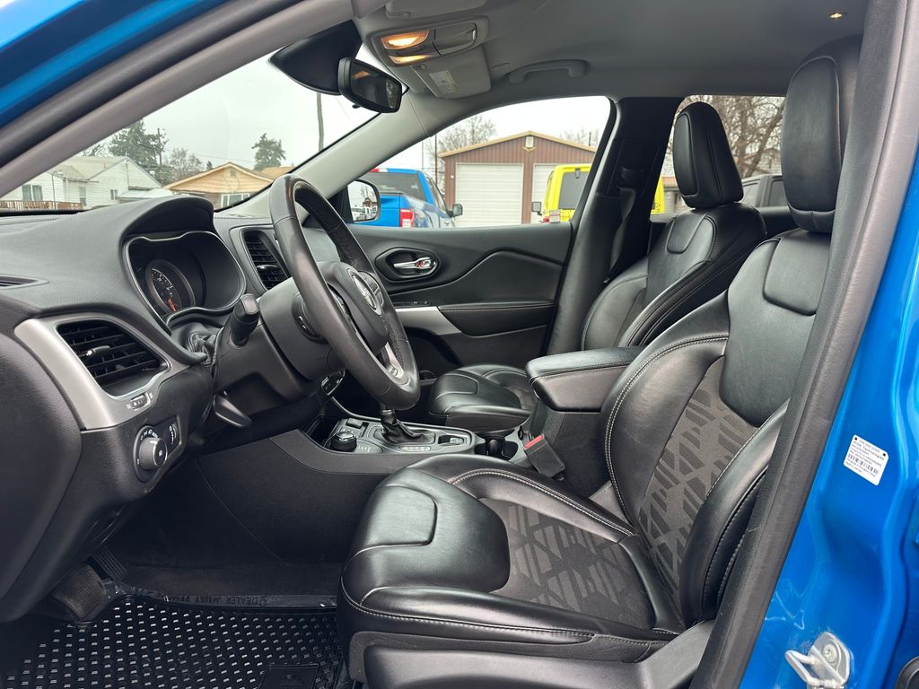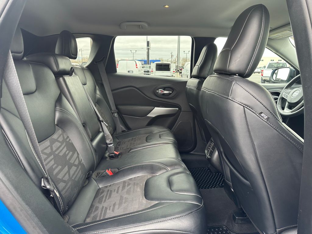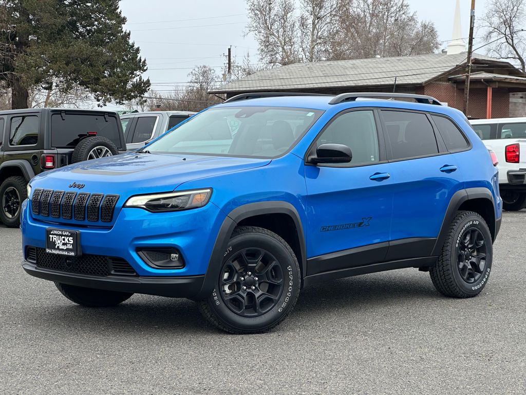 Quick Order Package 26S Cherokee X: Heated Front Seats; Silver Anodized Interior Accents; Cherokee X Hood and Liftgate Decal; Light Tungsten Interior Accents; Cherokee X; Windshield Wiper De-Icer; Gloss Black Exterior Accents; Cherokee X Fascia; Front LED Fog Lamps; Full Size Spare Tire; Heated Steering Wheel; Off Road Suspension; Gloss Black Grille Surrounds; 17 X 7.5 Black Painted Aluminum Wheels; Cloth/premium Vinyl Seats with Pixel Play; Remote Start System; Steering Wheel Mounted Audio Controls; Gloss Black Badges; Leather Wrapped Shift Knob; Cherokee X Door Decal; Matte Black Rear Tow Hook; P245/65R17 OWL All Terrain Tires; Offroad Sill Cladding; Power Adjust 8-Way Driver Seat; Off Road Wheel Flares; Premium-Wrapped Steering Wheel; All-Season Floor Mats; Sliding Sun Visors with Illuminated Mirrors; Power Driver Lumbar Adjust. Trailer Tow Group: 180 Amp Alternator; 7 and 4 Pin Wiring Harness; Full Size Spare Tire; Heavy Duty Engine Cooling; 3.517 Final Drive Ratio; Class III Receiver Hitch; Trailer Tow Wiring Harness. Hydro Blue Pearlcoat. **Equipment listed is based on original vehicle build and subject to change. Please confirm the accuracy of the included equipment by calling the dealer prior to purchase.**