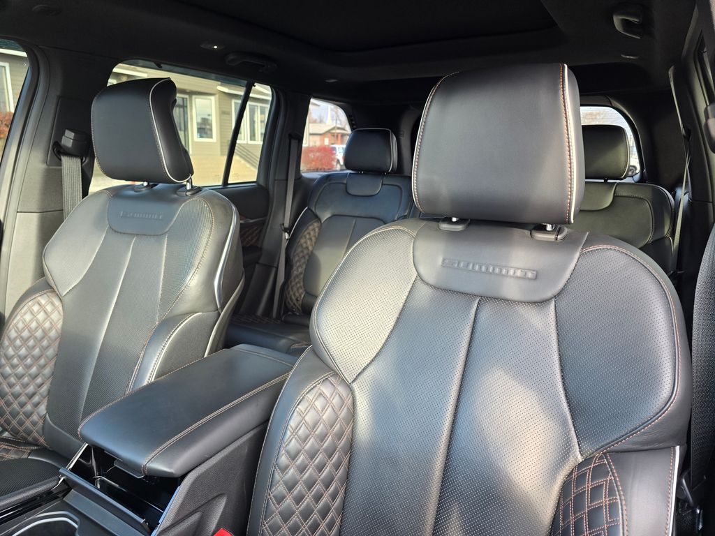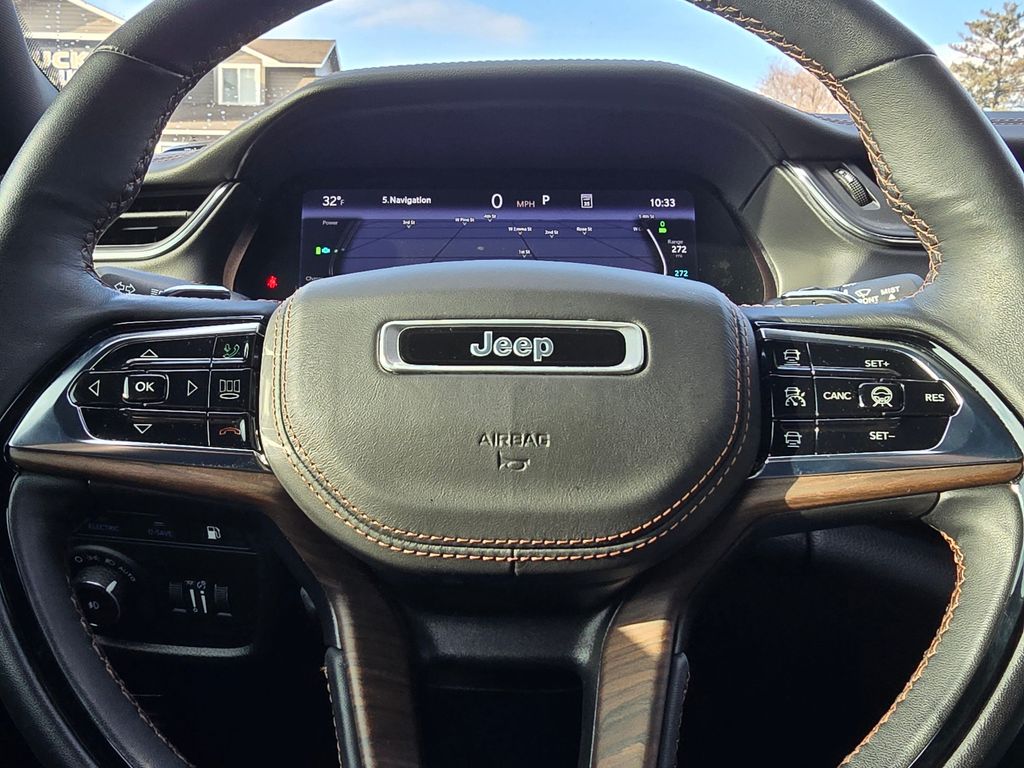 Recent Arrival! Diamond Black Crystal Pearlcoat 2022 Jeep Grand Cherokee 2.0L I4 DOHC 8-Speed Automatic 4WD 4D Sport Utility 2.0L I4 DOHC, 4WD, 10 Speakers, 19 Speaker High Performance Audio, 2nd-Row Manual Window Shades, 3.70 Rear Axle Ratio, 4-Wheel Disc Brakes, ABS brakes, Active Noise Control System, Adaptive suspension, Advanced Protech Group IV, Air Conditioning, Alloy wheels, AM/FM radio: SiriusXM with 360L, Anti-whiplash front head restraints, Audio memory, Auto High-beam Headlights, Auto-dimming door mirrors, Auto-dimming Rear-View mirror, Auto-leveling suspension, Automatic temperature control, Brake assist, Bumpers: body-color, Compass, Delay-off headlights, Driver door bin, Driver vanity mirror, Dual front impact airbags, Dual front side impact airbags, Electronic Stability Control, Four wheel independent suspension, Front anti-roll bar, Front Bucket Seats, Front Center Armrest w/Storage, Front dual zone A/C, Front fog lights, Front reading lights, Fully automatic headlights, Garage door transmitter, Genuine wood dashboard insert, Genuine wood door panel insert, Heads-Up Display, Heated door mirrors, Heated front seats, Heated rear seats, Heated steering wheel, Heavy Duty Suspension, Illuminated entry, Knee airbag, Leather steering wheel, Low tire pressure warning, Luxury Tech Group V, Memory seat, Nappa Leather Seats, Navigation System, Night Vision/Pedestrian-Animal Detection, Occupant sensing airbag, Outside temperature display, Overhead airbag, Overhead console, Panic alarm, Passenger door bin, Passenger vanity mirror, Power door mirrors, Power driver seat, Power Liftgate, Power moonroof, Power passenger seat, Power steering, Power windows, Quick Order Package 27T, Radio data system, Radio: Uconnect 5 Nav w/10.1" Display, Rain sensing wipers, Rear air conditioning, Rear anti-roll bar, Rear dual zone A/C, Rear reading lights, Rear seat center armrest, Rear window defroster, Rear window wiper, Rearview Autodim Digital Display Mirror, Remote keyless entry, Roof rack: rails only, Security system, Speed control, Speed-Sensitive Wipers, Split folding rear seat, Spoiler, Steering wheel memory, Steering wheel mounted audio controls, Tachometer, Telescoping steering wheel, Tilt steering wheel, Traction control, Trip computer, Turn signal indicator mirrors, Two Tone Paint Group, Variably intermittent wipers, Ventilated front seats, Voltmeter, Wheels: 20" x 8.5" Fully Painted Aluminum Silver, Wireless Charging Pad, 2.0L I4 DOHC, 4WD.