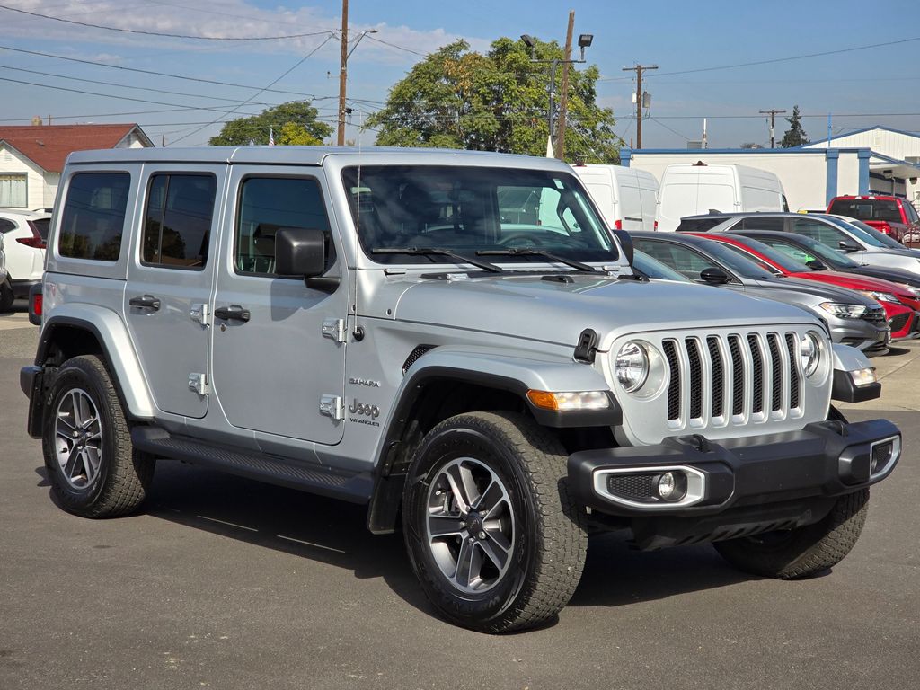 Recent Arrival! Clean CARFAX. Silver Zynith Clearcoat 2023 Jeep Wrangler Sahara 3.6L V6 24V VVT 8-Speed Automatic 4WD 4D Sport Utility 240 Amp Alternator, 3.45 Overall Top Gear Ratio, 4-Wheel Disc Brakes, 7 & 4 Pin Wiring Harness, 700 Amp Maintenance Free Battery, 9 Speakers, ABS brakes, Air Conditioning, Alloy wheels, AM/FM radio: SiriusXM, Apple CarPlay/Android Auto, Auto-dimming Rear-View mirror, Automatic temperature control, Aux Battery, Auxiliary Switches, Body Color 3-Piece Hard Top, Brake assist, Class II Receiver Hitch, Cloth Low-Back Bucket Seats, Cold Weather Group, Compass, Delay-off headlights, Driver door bin, Driver vanity mirror, Dual front impact airbags, Dual front side impact airbags, Electronic Stability Control, Emergency communication system: SiriusXM Guardian, Freedom Panel Storage Bag, Front anti-roll bar, Front Bucket Seats, Front Center Armrest w/Storage, Front dual zone A/C, Front fog lights, Front reading lights, Fully automatic headlights, Garage door transmitter, Heated door mirrors, Heated Front Seats, Heated Steering Wheel, Heavy Duty Suspension w/Gas Shocks, Illuminated entry, Integrated roll-over protection, Low tire pressure warning, Navigation System, No Soft Top, Non-Lock Fuel Cap w/o Discriminator, Occupant sensing airbag, Outside temperature display, Panic alarm, ParkView Rear Back-Up Camera, Passenger door bin, Passenger vanity mirror, Power door mirrors, Power steering, Power windows, Quick Order Package 25G Sahara, Radio data system, Radio: Uconnect 4C Nav w/8.4" Display, Rear anti-roll bar, Rear reading lights, Rear Window Defroster, Rear Window Wiper/Washer, Remote keyless entry, Remote Start System, Security system, Side Steps, Speed control, Split folding rear seat, Steering wheel mounted audio controls, Stop-Start Dual Battery System, Tachometer, Telescoping steering wheel, Tilt steering wheel, Traction control, Trailer Tow & Aux Switch Group, Trip computer, Variably intermittent wipers, Voltmeter, Wheels: 18" x 7.5" Machined w/Gray Spokes.