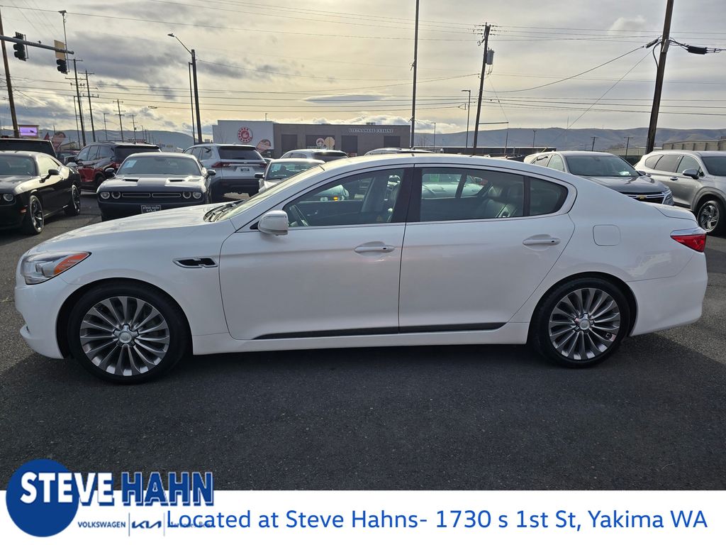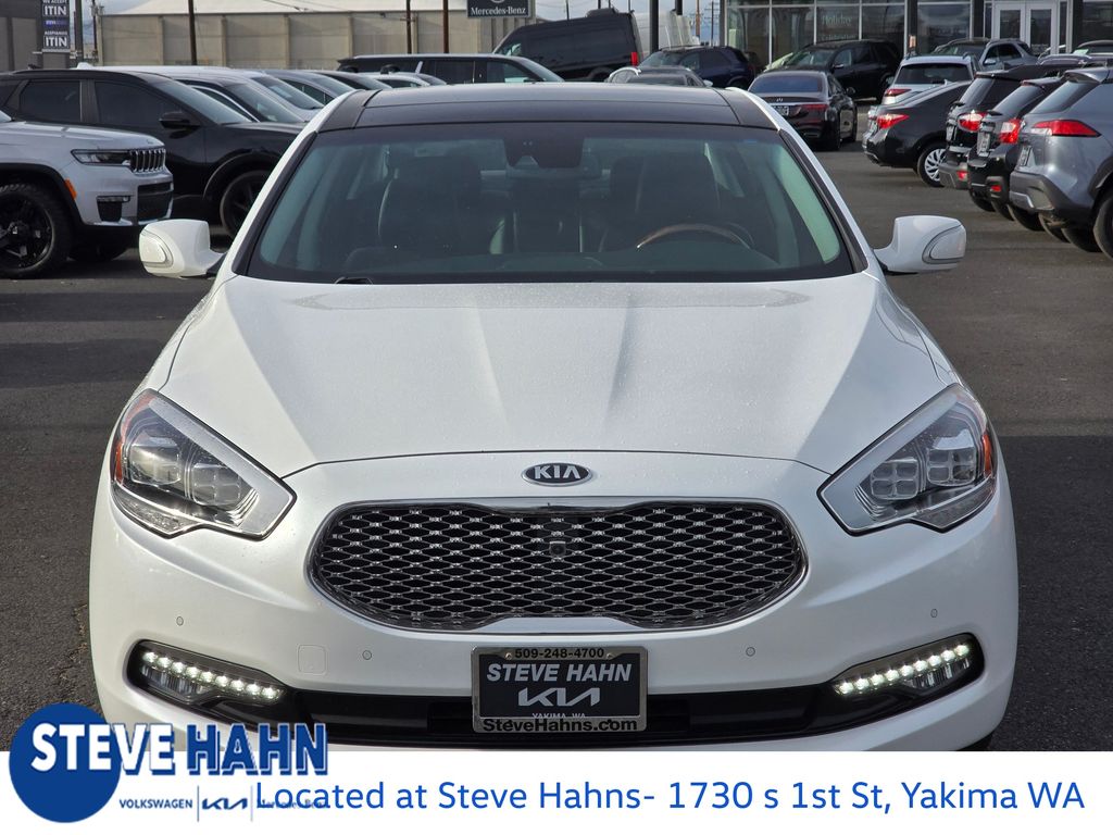 Recent Arrival! Snow White Pearl 2017 Kia K900 Luxury 5.0L V8 DGI DOHC 8-Speed Automatic RWD 4D Sedan 17 Speakers, 4-Wheel Disc Brakes, ABS brakes, Air Conditioning, Alloy wheels, AM/FM radio: SiriusXM, Anti-whiplash front head restraints, Auto tilt-away steering wheel, Auto-dimming door mirrors, Auto-dimming Rear-View mirror, Automatic temperature control, Brake assist, Bumpers: body-color, CD player, Chrome wheels, Compass, Delay-off headlights, Driver door bin, Driver vanity mirror, Dual front impact airbags, Dual front side impact airbags, DVD-Audio, Electronic Stability Control, Emergency communication system: UVO Luxury Services, Four wheel independent suspension, Front anti-roll bar, Front Bucket Seats, Front Center Armrest, Front dual zone A/C, Front fog lights, Front reading lights, Fully automatic headlights, Garage door transmitter: HomeLink, Genuine wood console insert, Heated & Cooled Multi-Adjustable Buckets, Heated door mirrors, Heated front seats, Heated rear seats, Heated steering wheel, Illuminated entry, Leather steering wheel, Low tire pressure warning, Memory seat, Nappa Leather Seat Trim, Navigation System, Occupant sensing airbag, Outside temperature display, Overhead airbag, Overhead console, Panic alarm, Passenger door bin, Passenger vanity mirror, Power door mirrors, Power driver seat, Power moonroof, Power passenger seat, Power steering, Power windows, Radio: Lexicon Audio System, Rain sensing wipers, Rear air conditioning, Rear anti-roll bar, Rear reading lights, Rear seat center armrest, Rear side impact airbag, Rear Window Blind, Rear window defroster, Remote keyless entry, Security system, Speed control, Speed-sensing steering, Steering wheel memory, Steering wheel mounted audio controls, Tachometer, Telescoping steering wheel, Tilt steering wheel, Traction control, Trip computer, Turn signal indicator mirrors, Variably intermittent wipers, Ventilated front seats, Wheel Locks, Wheels: 19" Chrome Alloy.
