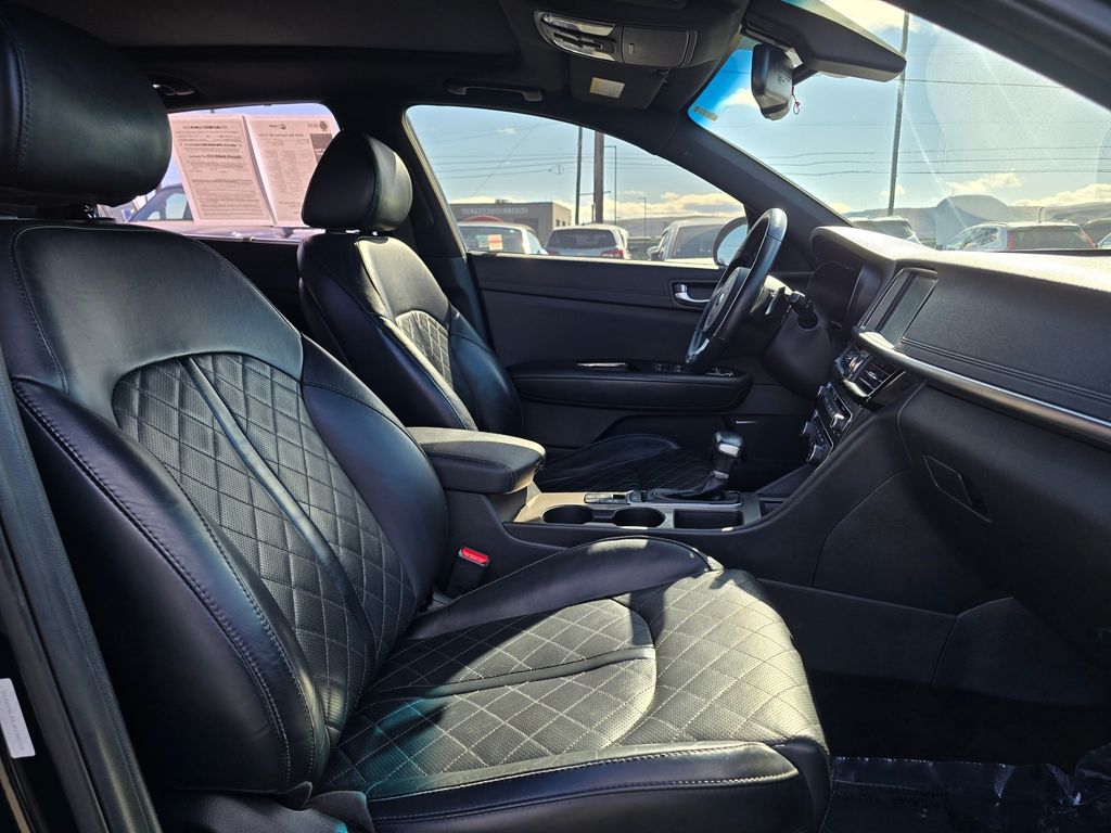 This is an excellent vehicle at an affordable price! A turbocharger further enhances performance, while also preserving fuel economy. This 4 door, 5 passenger sedan has just over 90,000 miles. Kia infused the interior with top shelf amenities, such as: a blind spot monitoring system, power moon roof, and voice activated navigation. It features an automatic transmission, front-wheel drive, and a 2 liter 4 cylinder engine.