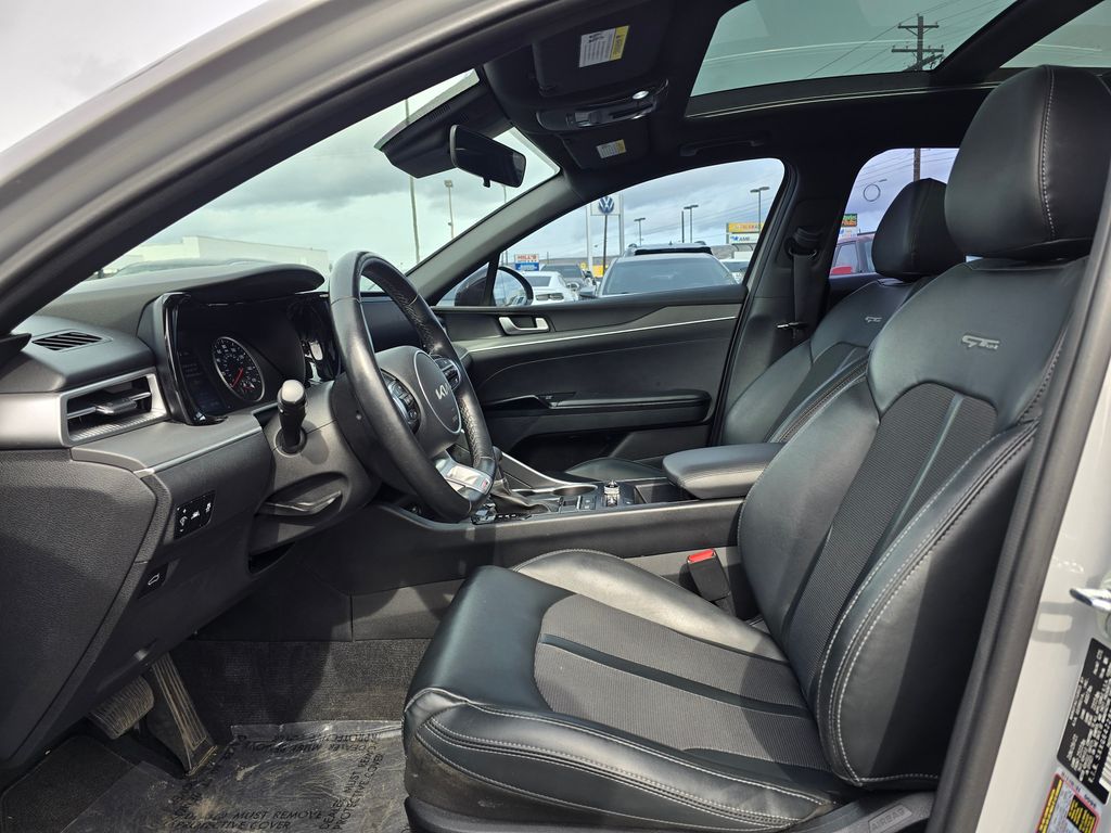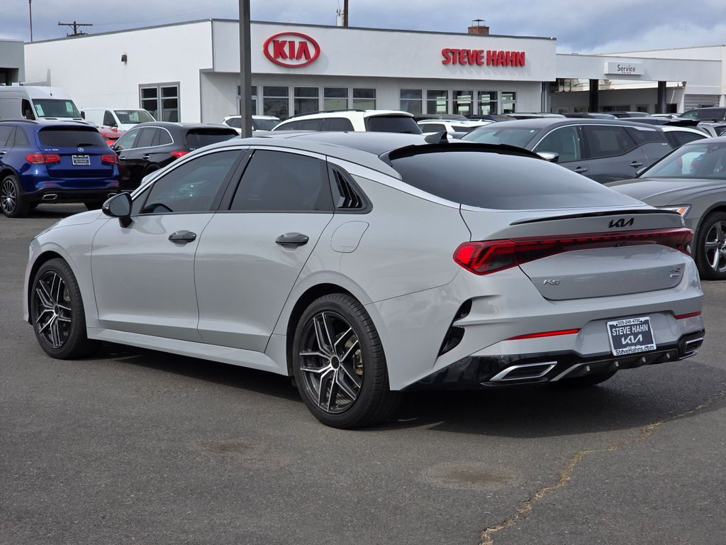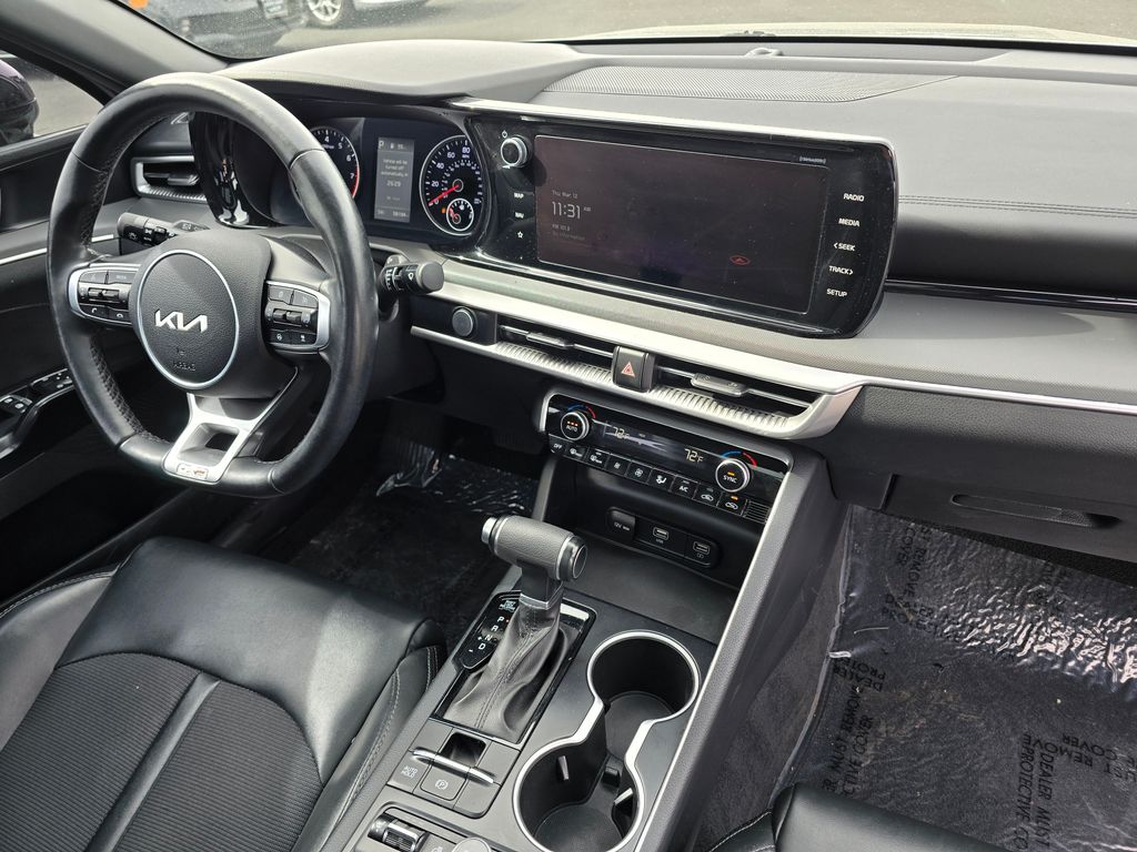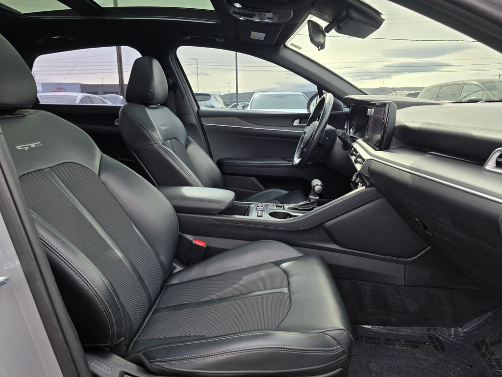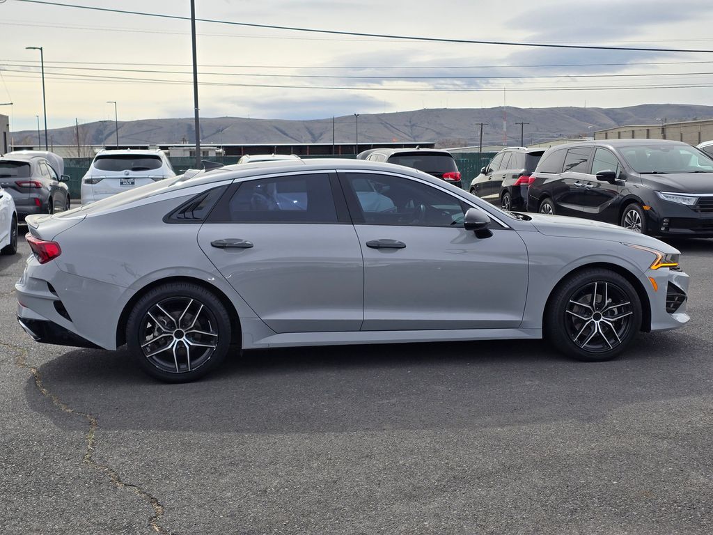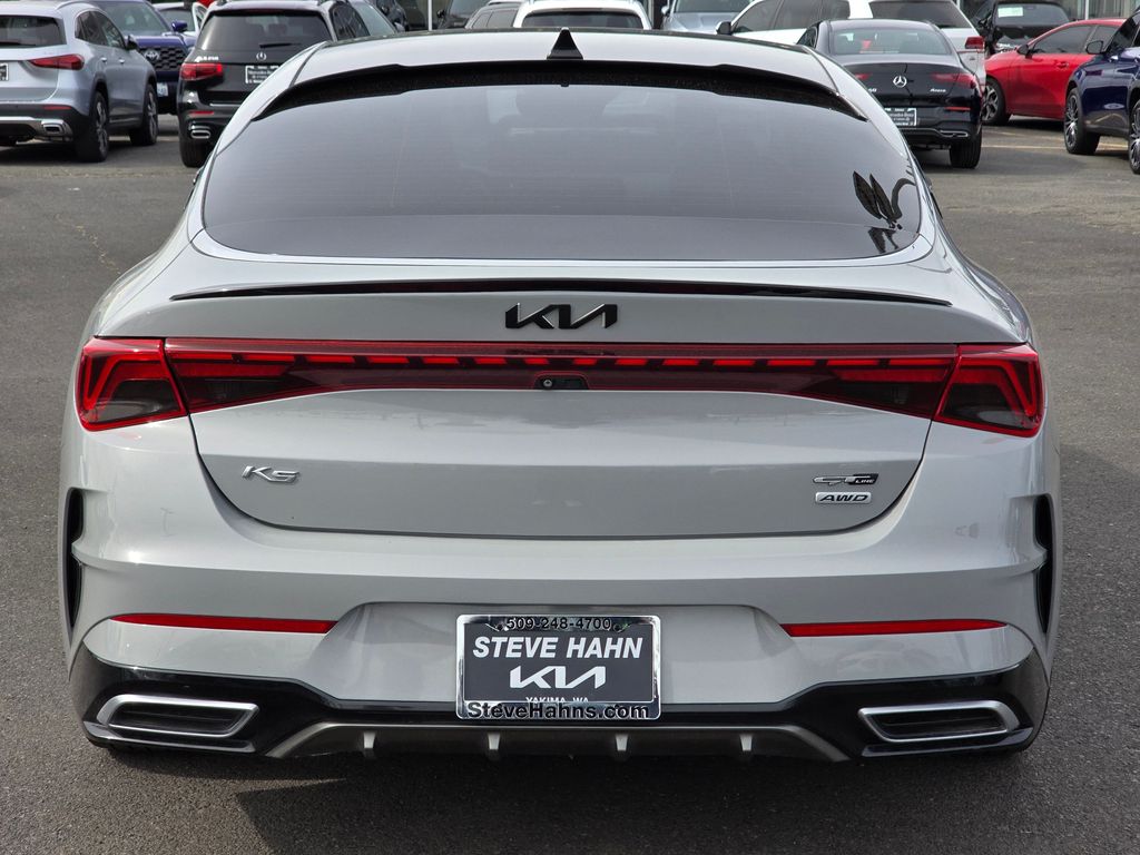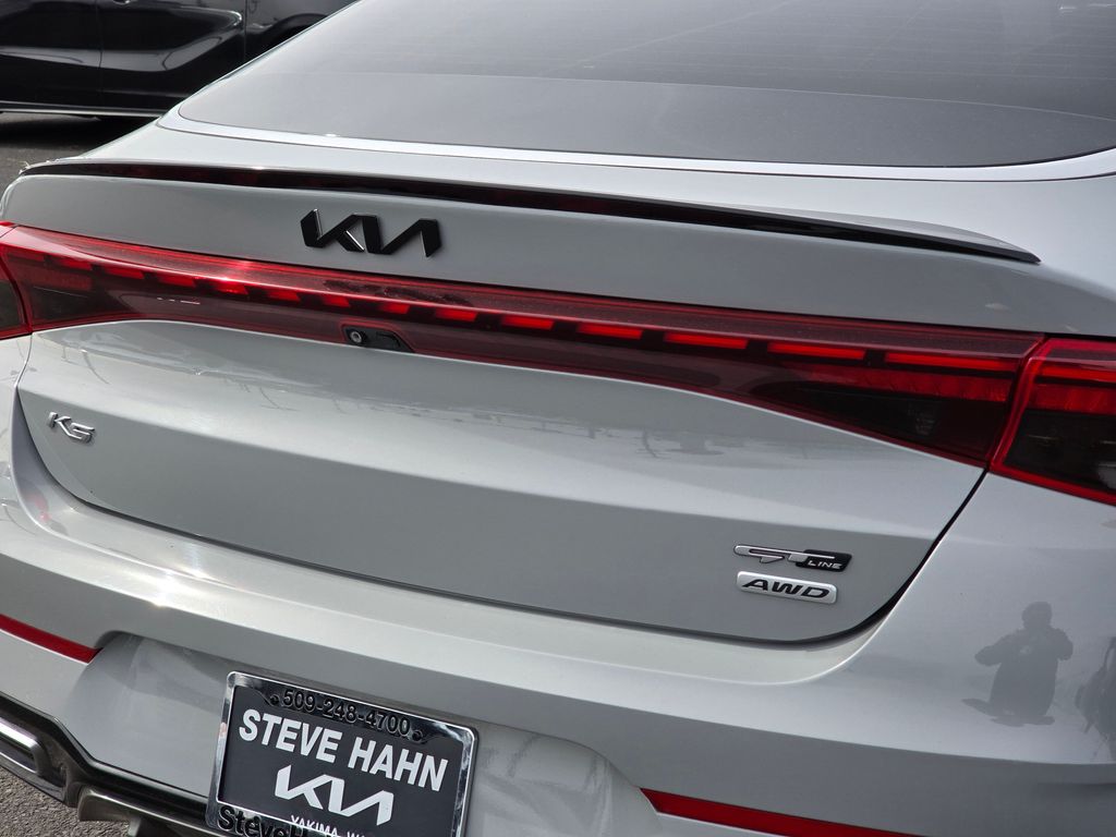 Recent Arrival! Wolf Gray 2022 Kia K5 GT-Line I4 8-Speed Automatic AWD 4D Sedan 4-Wheel Disc Brakes, 6 Speakers, ABS brakes, Air Conditioning, Alloy wheels, AM/FM radio: SiriusXM, Apple CarPlay & Android Auto, Auto High-beam Headlights, Automatic temperature control, Brake assist, Bumpers: body-color, Cargo Mat, Carpeted Floor Mats, Cloth/Leatherette Seat Trim, Delay-off headlights, Driver door bin, Driver vanity mirror, Dual front impact airbags, Dual front side impact airbags, Electronic Stability Control, Four wheel independent suspension, Front anti-roll bar, Front Bucket Seats, Front Center Armrest, Front dual zone A/C, Front fog lights, Front reading lights, Fully automatic headlights, GT-Line AWD Premium Package, Heated door mirrors, Heated Front Bucket Seats, Heated front seats, Heated Steering Wheel, Illuminated entry, Knee airbag, LED Interior Lighting, LED Projection Headlights, Low tire pressure warning, Navigation System, Navigation-Based Smart Cruise Control - Curve, Occupant sensing airbag, Outside temperature display, Overhead airbag, Overhead console, Panic alarm, Panoramic Sunroof, Passenger door bin, Passenger vanity mirror, Power door mirrors, Power driver seat, Power steering, Power windows, Radio data system, Radio: AM/FM/MP3 Audio System, Rear anti-roll bar, Rear seat center armrest, Rear side impact airbag, Rear window defroster, Remote keyless entry, Security system, Smart Cruise Control w/Stop & Go, Speed control, Speed-sensing steering, Split folding rear seat, Spoiler, Sport steering wheel, Steering wheel mounted audio controls, Tachometer, Telescoping steering wheel, Tilt steering wheel, Traction control, Trip computer, Turn signal indicator mirrors, Variably intermittent wipers, Wheels: 7.5J x 18" Gloss Black Machined Finish Alloy.