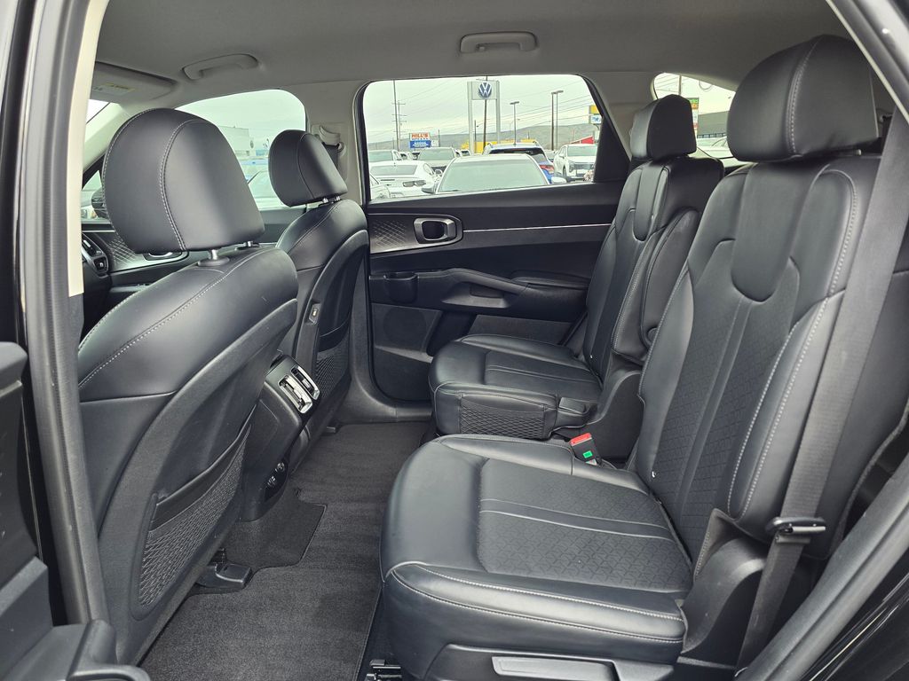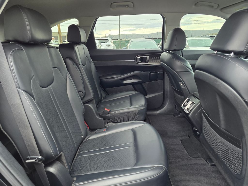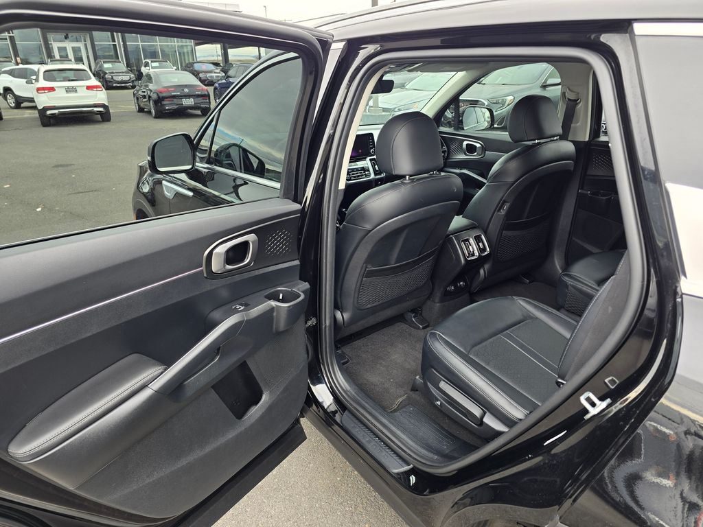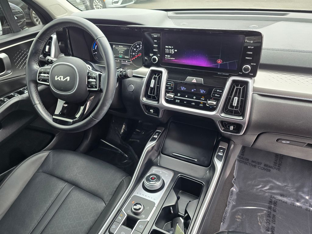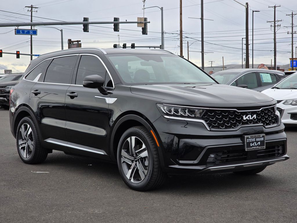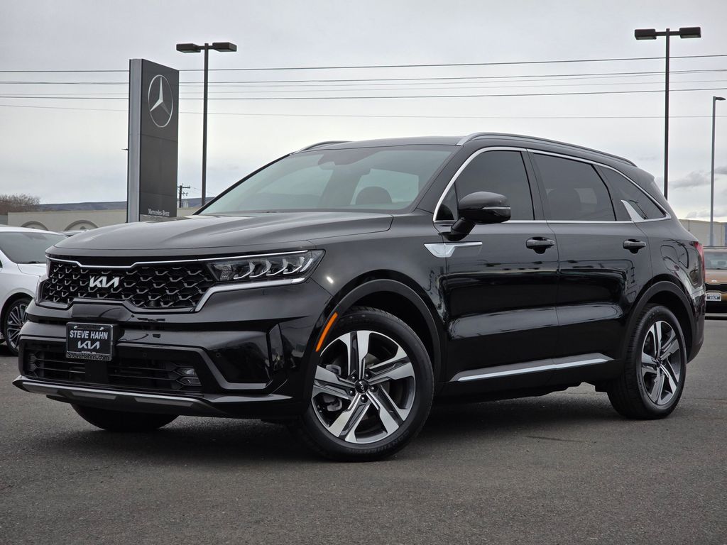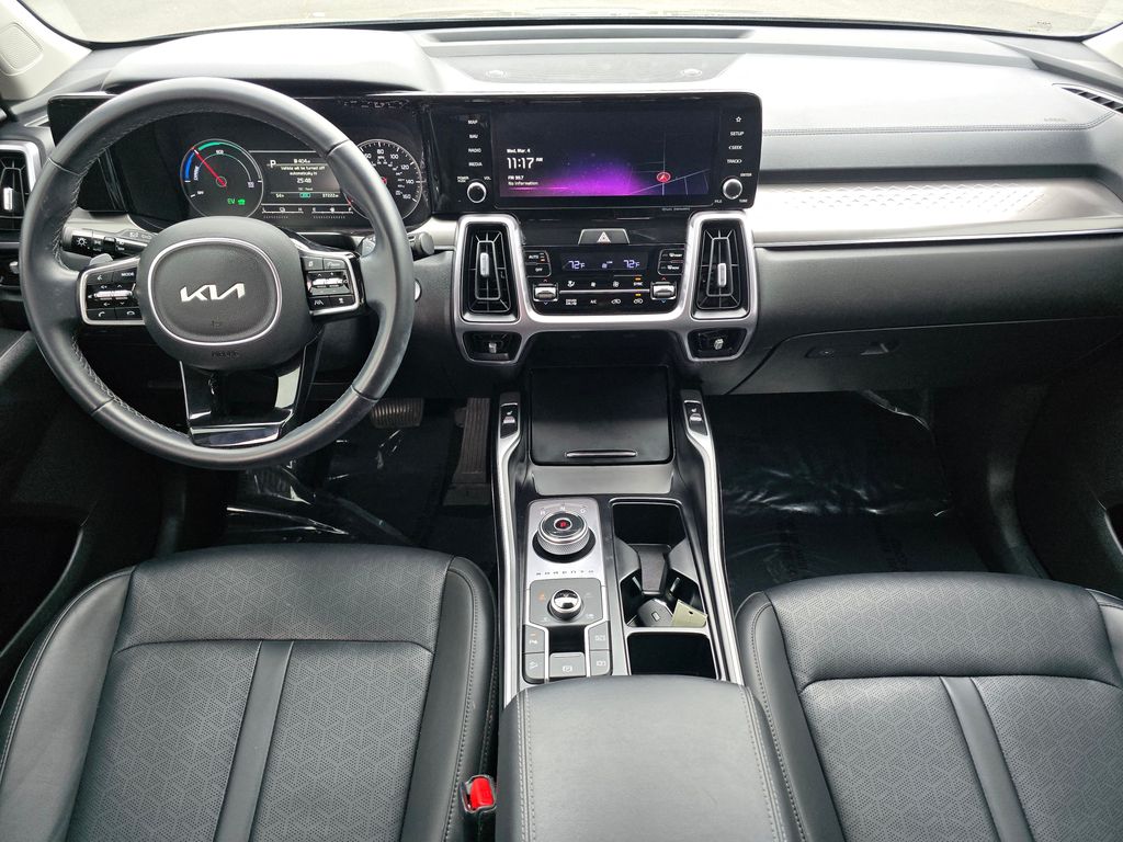 Recent Arrival! Clean CARFAX. Aurora Black 2023 Kia Sorento Hybrid EX 1.6L I4 DGI Hybrid Turbocharged DOHC 16V LEV3-ULEV70 6-Speed Automatic AWD 4D Sport Utility 1.6L I4 DGI Hybrid Turbocharged DOHC 16V LEV3-ULEV70, 3rd row seats: split-bench, 4-Wheel Disc Brakes, 6 Speakers, ABS brakes, Air Conditioning, Alloy wheels, AM/FM radio: SiriusXM, Apple CarPlay & Android Auto, Auto High-beam Headlights, Automatic temperature control, Axle Ratio: 3.510, Brake assist, Bumpers: body-color, Cargo Cover, Carpet Floor Mats, Delay-off headlights, Driver door bin, Driver vanity mirror, Dual front impact airbags, Dual front side impact airbags, Electronic Stability Control, Emergency communication system, Exterior Parking Camera Rear, Folding Cargo Tray, Four wheel independent suspension, Front anti-roll bar, Front Bucket Seats, Front Center Armrest, Front dual zone A/C, Front fog lights, Front reading lights, Fully automatic headlights, Heated door mirrors, Heated Front Bucket Seats, Heated front seats, Illuminated entry, Knee airbag, Leather steering wheel, Low tire pressure warning, Navigation System, Occupant sensing airbag, Outside temperature display, Overhead airbag, Overhead console, Panic alarm, Passenger door bin, Passenger vanity mirror, Power door mirrors, Power driver seat, Power Liftgate, Power passenger seat, Power steering, Power windows, Radio data system, Radio: AM/FM/HD Radio/SiriusXM Audio System, Rear air conditioning, Rear anti-roll bar, Rear reading lights, Rear window defroster, Rear window wiper, Remote keyless entry, Roof rack: rails only, Security system, Smart Key w/ Push Button and Remote Start, Speed control, Speed-sensing steering, Split folding rear seat, Spoiler, Steering wheel mounted audio controls, SynTex Artificial Leather Seat Trim, Tachometer, Telescoping steering wheel, Tilt steering wheel, Traction control, Trip computer, Turn signal indicator mirrors, Variably intermittent wipers, Wheels: 19" Machine-Finished Alloy, 1.6L I4 DGI Hybrid Turbocharged DOHC 16V LEV3-ULEV70.