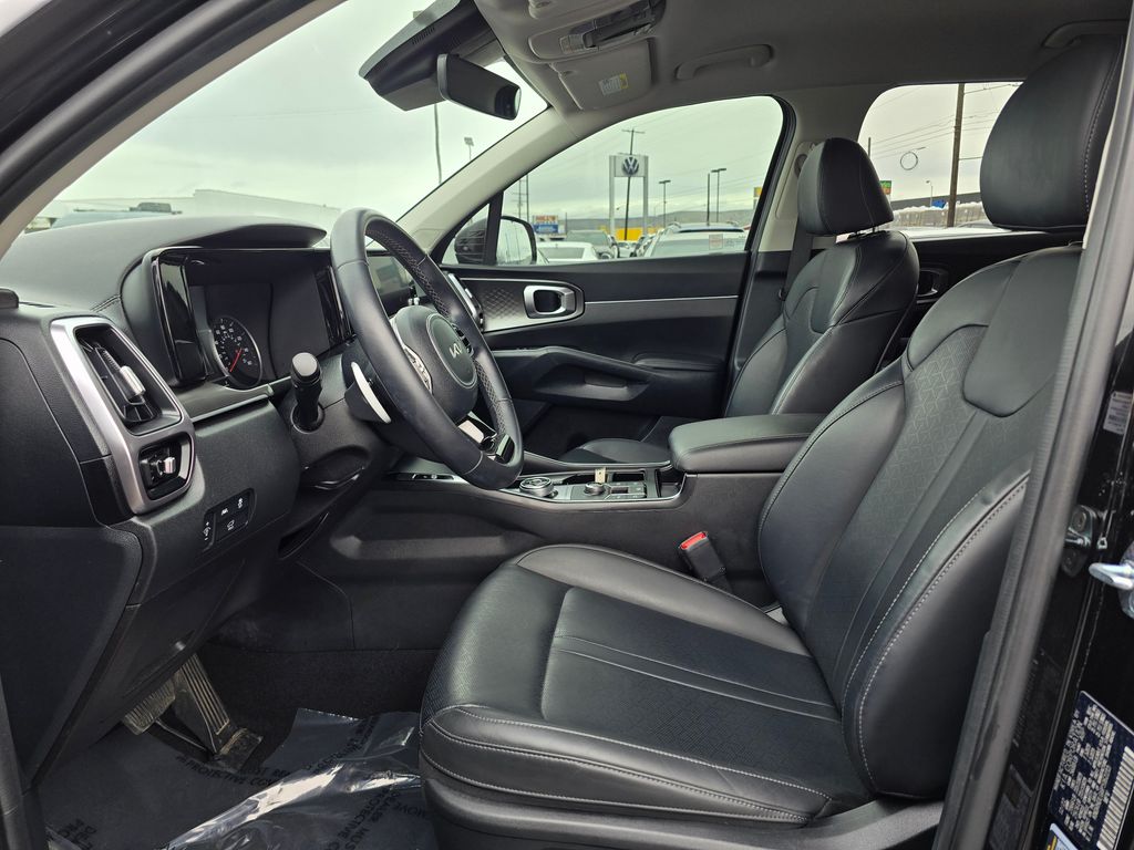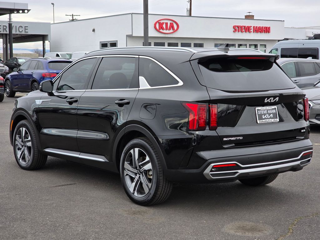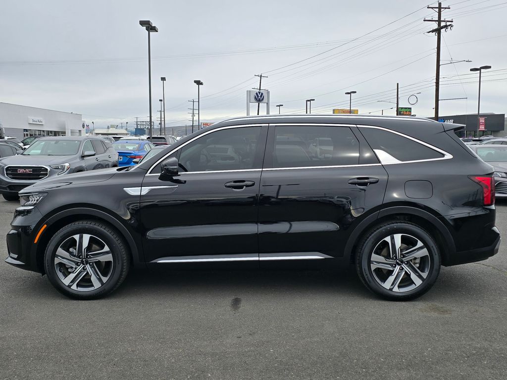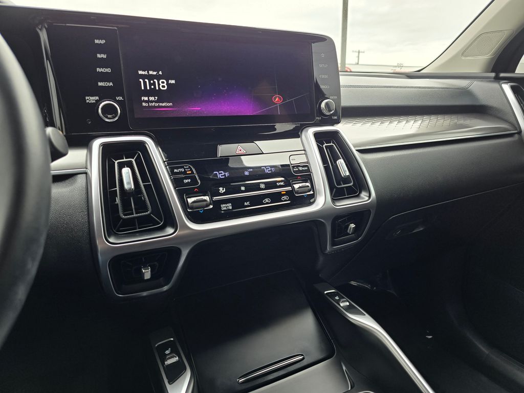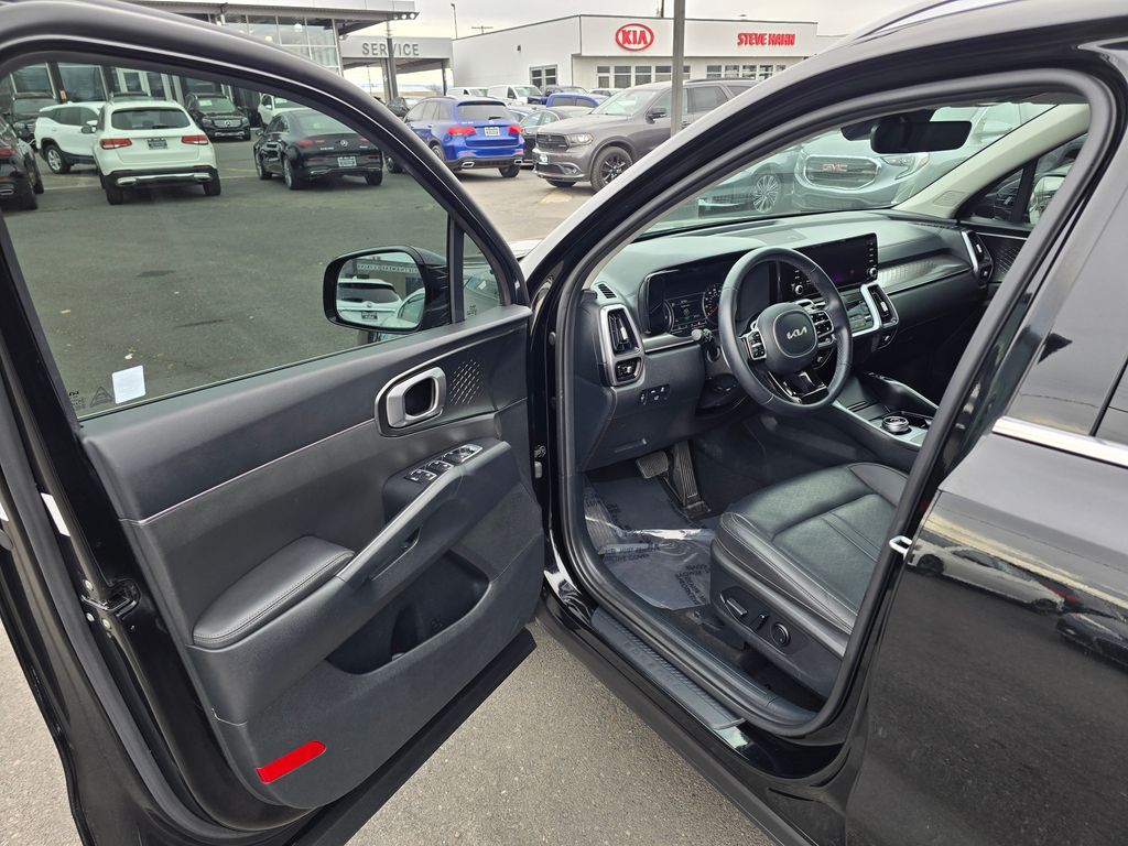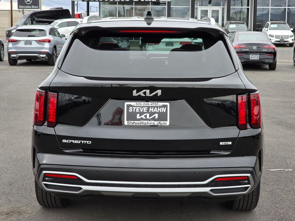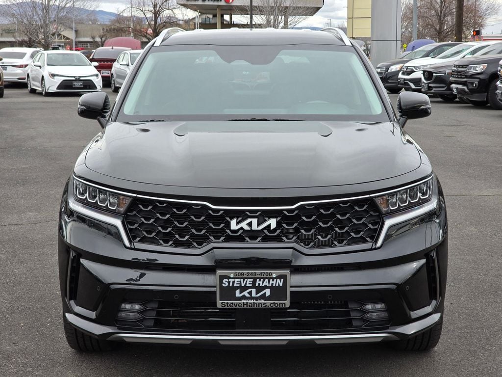 Recent Arrival! Clean CARFAX. Aurora Black 2023 Kia Sorento Hybrid EX 1.6L I4 DGI Hybrid Turbocharged DOHC 16V LEV3-ULEV70 6-Speed Automatic AWD 4D Sport Utility 1.6L I4 DGI Hybrid Turbocharged DOHC 16V LEV3-ULEV70, 3rd row seats: split-bench, 4-Wheel Disc Brakes, 6 Speakers, ABS brakes, Air Conditioning, Alloy wheels, AM/FM radio: SiriusXM, Apple CarPlay & Android Auto, Auto High-beam Headlights, Automatic temperature control, Axle Ratio: 3.510, Brake assist, Bumpers: body-color, Cargo Cover, Carpet Floor Mats, Delay-off headlights, Driver door bin, Driver vanity mirror, Dual front impact airbags, Dual front side impact airbags, Electronic Stability Control, Emergency communication system, Exterior Parking Camera Rear, Folding Cargo Tray, Four wheel independent suspension, Front anti-roll bar, Front Bucket Seats, Front Center Armrest, Front dual zone A/C, Front fog lights, Front reading lights, Fully automatic headlights, Heated door mirrors, Heated Front Bucket Seats, Heated front seats, Illuminated entry, Knee airbag, Leather steering wheel, Low tire pressure warning, Navigation System, Occupant sensing airbag, Outside temperature display, Overhead airbag, Overhead console, Panic alarm, Passenger door bin, Passenger vanity mirror, Power door mirrors, Power driver seat, Power Liftgate, Power passenger seat, Power steering, Power windows, Radio data system, Radio: AM/FM/HD Radio/SiriusXM Audio System, Rear air conditioning, Rear anti-roll bar, Rear reading lights, Rear window defroster, Rear window wiper, Remote keyless entry, Roof rack: rails only, Security system, Smart Key w/ Push Button and Remote Start, Speed control, Speed-sensing steering, Split folding rear seat, Spoiler, Steering wheel mounted audio controls, SynTex Artificial Leather Seat Trim, Tachometer, Telescoping steering wheel, Tilt steering wheel, Traction control, Trip computer, Turn signal indicator mirrors, Variably intermittent wipers, Wheels: 19" Machine-Finished Alloy, 1.6L I4 DGI Hybrid Turbocharged DOHC 16V LEV3-ULEV70.
