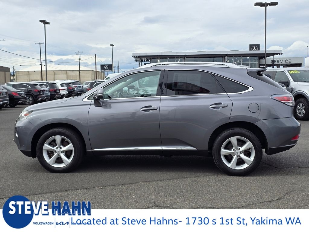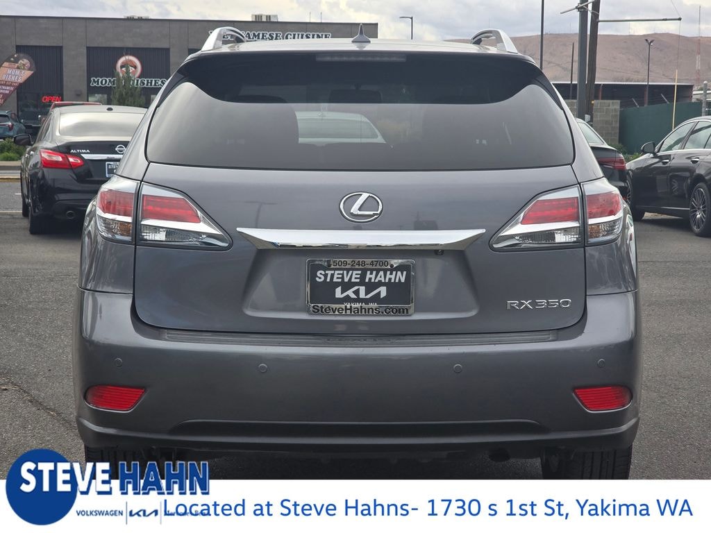 Clean CARFAX. Gray 2013 Lexus RX 350 3.5L V6 DOHC Dual VVT-i 24V 6-Speed Automatic with Sequential Shift ECT-i AWD 4D Sport Utility AWD, Cloth, 18" x 7.5" 5-Spoke Aluminum Wheels, 4-Wheel Disc Brakes, 4.398 Axle Ratio, 9 Speakers, ABS brakes, Air Conditioning, Alloy wheels, AM/FM radio: SiriusXM, Anti-whiplash front head restraints, Auto-dimming door mirrors, Auto-dimming Rear-View mirror, Automatic temperature control, Bluetooth® Hands-Free Phone, Brake assist, Bumpers: body-color, CD player, Compass, Delay-off headlights, Driver door bin, Driver vanity mirror, Dual front impact airbags, Dual front side impact airbags, Electronic Stability Control, Emergency communication system: Safety Connect, Fabric Seat Trim, Four wheel independent suspension, Front anti-roll bar, Front Bucket Seats, Front Center Armrest, Front dual zone A/C, Front fog lights, Front reading lights, Fully automatic headlights, Garage door transmitter: HomeLink, Genuine wood console insert, Genuine wood door panel insert, Heated door mirrors, Illuminated entry, Knee airbag, Leather Seat Trim, Low tire pressure warning, Occupant sensing airbag, Outside temperature display, Overhead airbag, Overhead console, Panic alarm, Passenger door bin, Passenger vanity mirror, Power door mirrors, Power driver seat, Power Liftgate, Power passenger seat, Power steering, Power windows, Radio data system, Rear anti-roll bar, Rear reading lights, Rear seat center armrest, Rear side impact airbag, Rear window defroster, Rear window wiper, Remote keyless entry, Security system, Speed control, Speed-sensing steering, Split folding rear seat, Spoiler, Steering wheel mounted audio controls, Tachometer, Telescoping steering wheel, Tilt steering wheel, Traction control, Trip computer, Turn signal indicator mirrors, Variably intermittent wipers, AWD, Cloth.