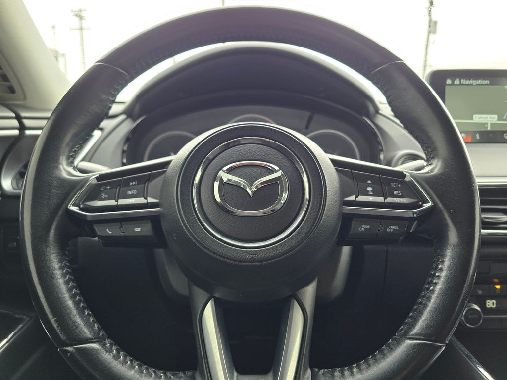 Lane Keep Assist in the Mazda CX-9 helps maintain safe driving by gently steering to stay within the lane. This model enhances safety with a blind spot monitor, alerting drivers to potential dangers in adjacent lanes. This Mazda CX-9 keeps you comfortable with Auto Climate. This unit features a hands-free Bluetooth phone system. Protect this unit from unwanted accidents with a cutting edge backup camera system. You'll never again be lost in a crowded city or a country region with the navigation system on this vehicle. The vehicle comes equipped with Android Auto for seamless smartphone integration on the road. Apple CarPlay: Seamless smartphone integration for this Mazda CX-9 - stay connected and entertained on the go! The leather seats in it are a must for buyers looking for comfort, durability, and style. Quickly unlock this 2019 Mazda CX-9 with keyless entry. Enjoy the convenience of the power liftgate on this vehicle.