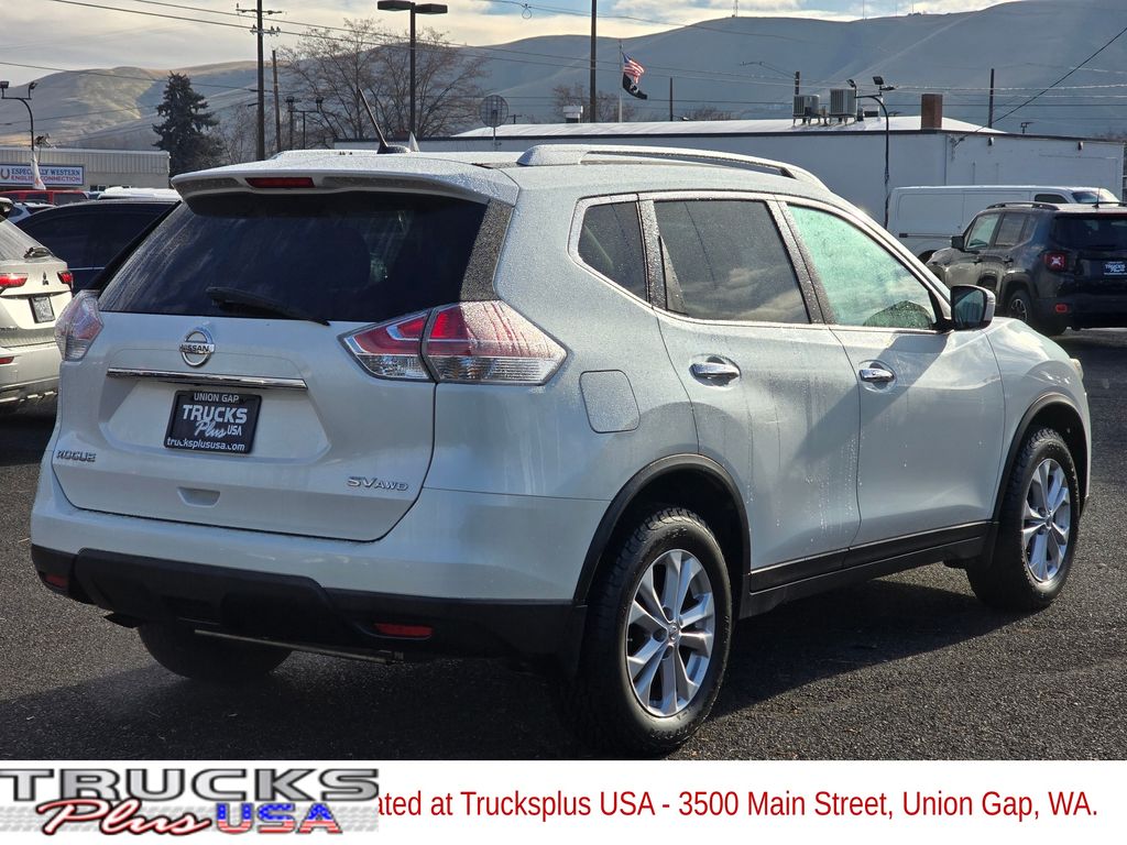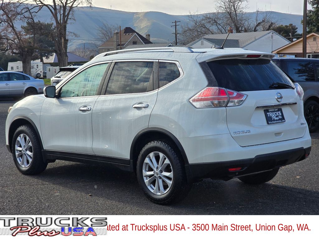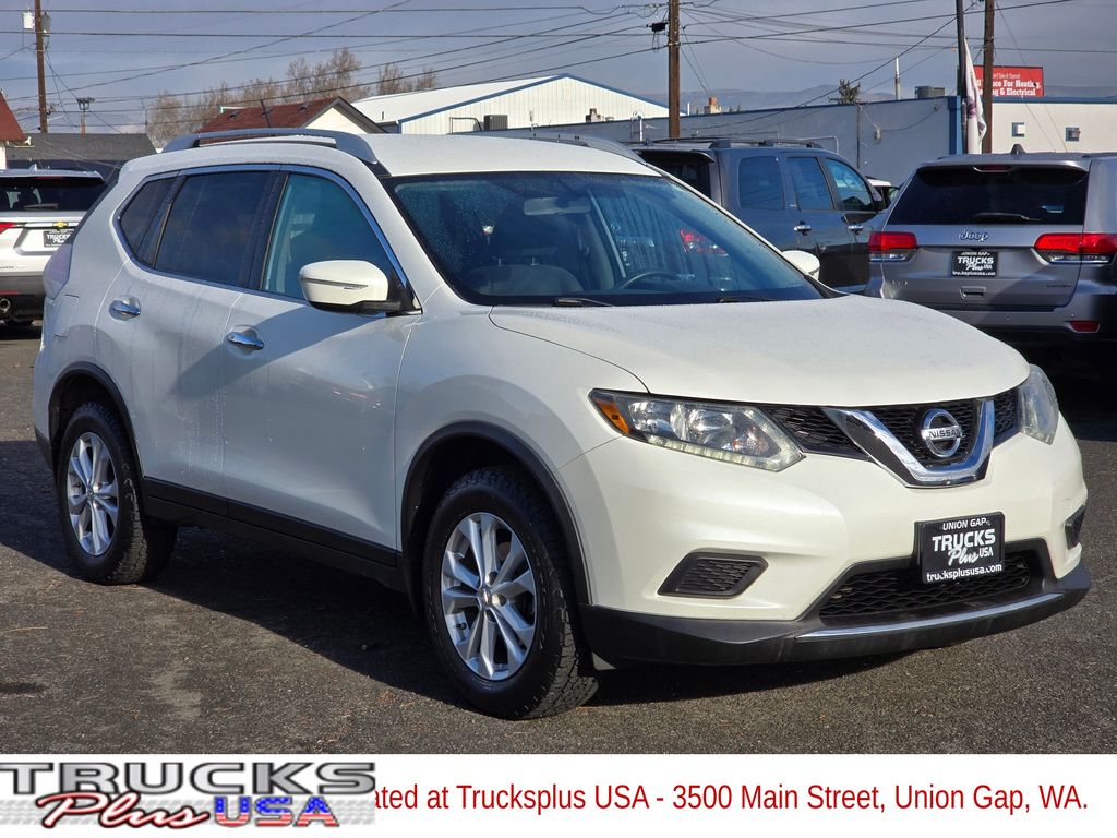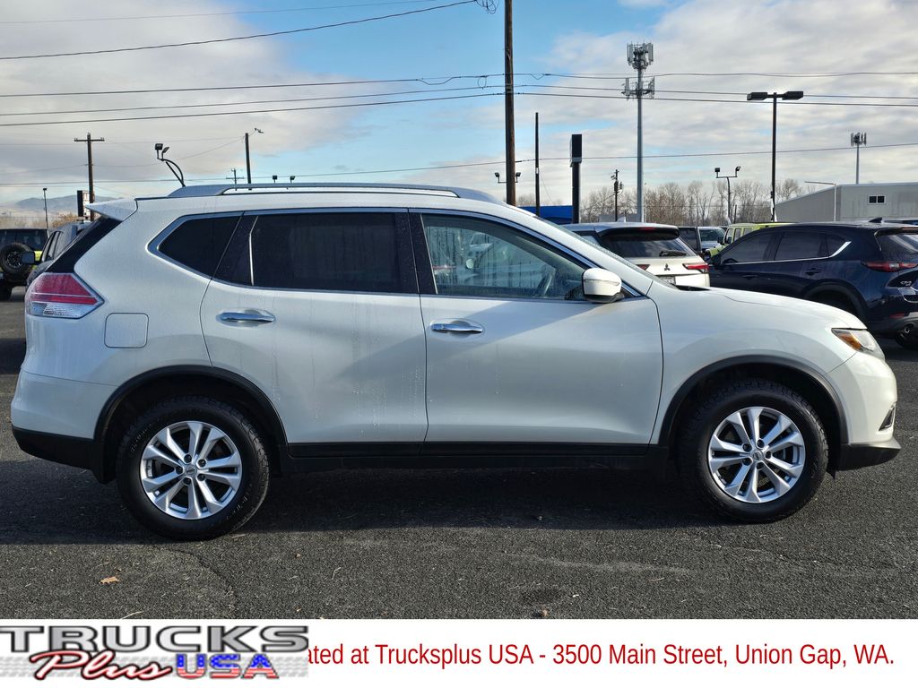 Recent Arrival! Pearl White 2015 Nissan Rogue SV 2.5L I4 DOHC 16V CVT with Xtronic AWD 4D Sport Utility AWD, 17" Aluminum Alloy Wheels, 4-Wheel Disc Brakes, 5.694 Axle Ratio, 6 Speakers, ABS brakes, Air Conditioning, Alloy wheels, AM/FM radio: SiriusXM, Anti-whiplash front head restraints, Automatic temperature control, Brake assist, Bumpers: body-color, CD player, Cloth Seat Trim, Delay-off headlights, Driver door bin, Driver vanity mirror, Dual front impact airbags, Dual front side impact airbags, Electronic Stability Control, Exterior Parking Camera Rear, Four wheel independent suspension, Front anti-roll bar, Front Bucket Seats, Front Center Armrest w/Storage, Front dual zone A/C, Front reading lights, Fully automatic headlights, Illuminated entry, Low tire pressure warning, Occupant sensing airbag, Outside temperature display, Overhead airbag, Overhead console, Panic alarm, Passenger door bin, Passenger vanity mirror, Power door mirrors, Power driver seat, Power Liftgate, Power steering, Power windows, Radio data system, Radio: AM/FM/CD/RDS/AUX NissanConnect, Radio: AM/FM/CD/RDS/AUX NissanConnect w/Navigation, Rear anti-roll bar, Rear window defroster, Rear window wiper, Remote keyless entry, Roof rack: rails only, Security system, Speed control, Speed-sensing steering, Split folding rear seat, Spoiler, Steering wheel mounted audio controls, Tachometer, Telescoping steering wheel, Tilt steering wheel, Traction control, Trip computer, Turn signal indicator mirrors, Variably intermittent wipers, AWD.