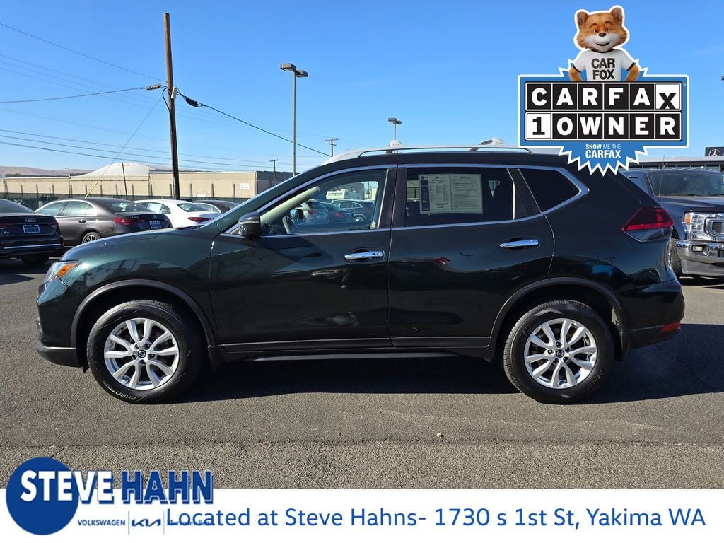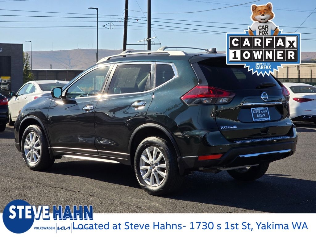 CARFAX One-Owner. Midnight Pine Metallic 2020 Nissan Rogue SV 2.5L I4 DOHC 16V CVT with Xtronic AWD 4D Sport Utility AWD, 17" Aluminum Alloy Wheels, 4-Wheel Disc Brakes, 6 Speakers, 6.386 Axle Ratio, ABS brakes, Air Conditioning, Alloy wheels, AM/FM radio: SiriusXM, Anti-whiplash front head restraints, Auto High-beam Headlights, Automatic temperature control, Black Splash Guards (Set of 4), Blind Spot Warning, Brake assist, Bumpers: body-color, CD player, Chrome Rear Bumper Protector, Cloth Seat Trim, Delay-off headlights, Driver door bin, Driver vanity mirror, Dual front impact airbags, Dual front side impact airbags, Electronic Stability Control, First Aid Kit, Floor Mats & 2-PC Cargo Area Protector, Four wheel independent suspension, Front anti-roll bar, Front Bucket Seats, Front Center Armrest w/Storage, Front dual zone A/C, Front reading lights, Fully automatic headlights, Heated door mirrors, Heated Front Bucket Seats, Heated front seats, Illuminated entry, Lane Departure Warning System, Leather Shift Knob, Low tire pressure warning, NissanConnect featuring Apple CarPlay and Android Auto, Occupant sensing airbag, Outside temperature display, Overhead airbag, Overhead console, Panic alarm, Passenger door bin, Passenger vanity mirror, Power door mirrors, Power driver seat, Power Liftgate, Power steering, Power windows, Radio data system, Radio: AM/FM/CD/AUX, Radio: AM/FM/CD/AUX NissanConnect w/Navigation, Rear anti-roll bar, Rear Parking Sensors, Rear seat center armrest, Rear USB Ports, Rear window defroster, Rear window wiper, Remote keyless entry, Roof rack: rails only, Roof Rail Cross Bars, Security system, Speed control, Speed-sensing steering, Split folding rear seat, Spoiler, Steering wheel mounted audio controls, Tachometer, Telescoping steering wheel, Tilt steering wheel, Traction control, Trip computer, Turn signal indicator mirrors, Variably intermittent wipers, AWD.