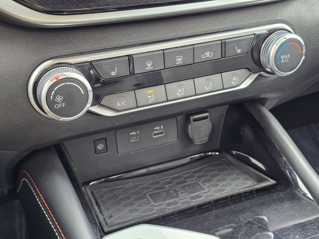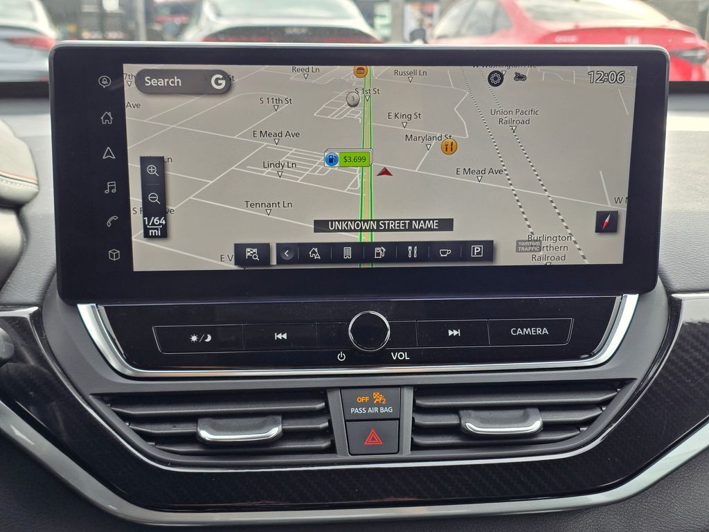 ⢠SR Premium Package: Heated Front Seats, 2-way driver power lumbar and 4-way power passenger seat, NissanConnect, 12.3" HD color display with multi-touch control, Nissan door-to-door navigation, wireless Apple CarPlay and Android Auto, premium Traffic and MapCare with complimentary trial, SiriusXM Traffic, SiriusXM Travel Link, wireless charging pad, NissanConnect services powered by SiriusXM and Wi-Fi hotspot, Single Panel Moonroof, Premium Sport Interior Finishers, Black Outside Mirrors