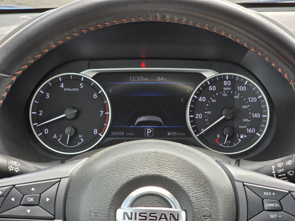 The Sentra SR's interior is designed with your comfort and convenience in mind. Enjoy the spacious and well-appointed cabin, complete with premium cloth seating, a leather-wrapped steering wheel, and a host of advanced tech features, including NissanConnect with Apple CarPlay and Android Auto integration.