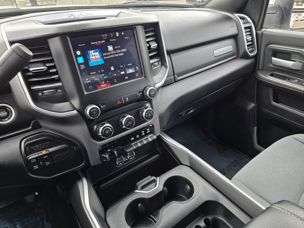 Quick Order Package 2HZ Big Horn. Cold Weather Group: Engine Block Heater; MOPAR Winter Front Grille Cover. Off Road Package. Level 1 Equipment Group: Google Android Auto; SiriusXM Radio Service; Bluetooth Handsfree Phone and Audio; Integrated Center Stack Radio; For Details. Visit DriveUconnect.com; For More Info. Call 800-643-2112; Leather Wrapped Steering Wheel; Rear Dome with On/off Switch Lamp; Front Fog Lamps; Integrated Voice Command with Bluetooth; Connectivity - US/Canada; Glove Box Lamp; Auto Power-Folding Mirrors; Footwell Courtesy Lamp; 4G LTE Wi-Fi Hot Spot; GPS Antenna Input; Exterior Mirrors with Heating Element; Global Telematics Box Module; Mirror Running Lights; Uconnect 5 W Radio with 8.4 Display; 8.4 Touchscreen Display; Foam Bottle Insert (door Trim Panel); Black Exterior Mirrors; 18 X 8.0 Polished Aluminum Wheels; Apple CarPlay; Big Horn Instrument Panel Badge; Power Adjustable Convex Aux Mirrors; Forward and Reverse Utility Lights; Locking Lower Glove Box; Selectable Tire Fill Alert; SiriusXM Satellite Radio; Power Heated Fold Telescope Mirrors; Exterior Mirrors with Supplemental Signals; Steering Wheel Mounted Audio Controls; Exterior Mirrors Courtesy Lamps; Dual Glove Boxes; Center Hub; Power Adjust Mirrors; 2nd Row in Floor Storage Bins; Power Telescoping Mirrors. Heavy Duty Snow Plow Prep Group: Transfer Case Skid Plate Shield; 220 Amp Alternator. Quick Order Package 2GZ Big Horn. Chrome Flat Cab-Length Side Steps. MOPAR Spray in Bedliner. Anti-Spin Differential Rear Axle. ParkSense Front/rear Park Assist System. LT275/70R18E OWL On/off Road Tires. Premium Cloth Bucket Seats. Front Fog Lamps. Rear Window Defroster. Rear Backup Alarm. Tow Hooks. **Equipment listed is based on original vehicle build and subject to change. Please confirm the accuracy of the included equipment by calling the dealer prior to purchase.**