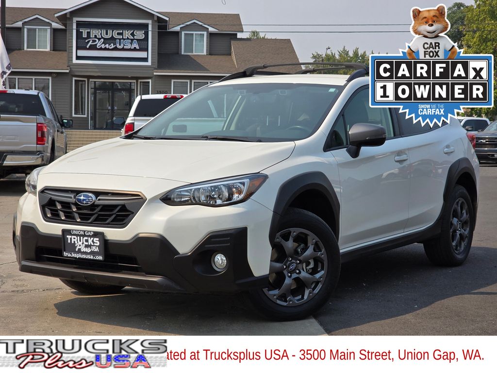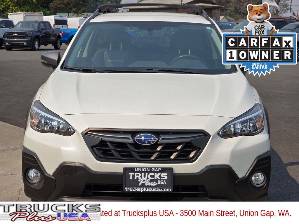 Recent Arrival! Clean CARFAX. Crystal White Pearl 2022 Subaru Crosstrek Sport 2.5L 4-Cylinder DOHC 16V Lineartronic CVT AWD 4D Sport Utility 3.70 Axle Ratio, 4-Wheel Disc Brakes, 6 Speakers, ABS brakes, Aero Crossbar Set, Air Conditioning, Alloy wheels, AM/FM radio: SiriusXM, Anti-whiplash front head restraints, Auto-Dimming Exterior Mirror w/Approach Light, Auto-Dimming Mirror w/Compass & HomeLink, Automatic temperature control, Brake assist, Bumpers: body-color, CD player, Driver door bin, Driver vanity mirror, Dual front impact airbags, Dual front side impact airbags, Electronic Stability Control, Emergency communication system: STARLINK Safety and Security (Subscription Required), Exterior Parking Camera Rear, Four wheel independent suspension, Front anti-roll bar, Front Bucket Seats, Front Center Armrest, Front fog lights, Front reading lights, Fully automatic headlights, Heated door mirrors, Heated Front Bucket Seats, Heated front seats, Illuminated entry, Knee airbag, Leather Shift Knob, Low tire pressure warning, Occupant sensing airbag, Outside temperature display, Overhead airbag, Overhead console, Panic alarm, Passenger door bin, Passenger vanity mirror, Power door mirrors, Power steering, Power windows, Radio data system, Radio: Subaru STARLINK 6.5" Multimedia Plus System, Rear anti-roll bar, Rear Bumper Cover, Rear window defroster, Rear window wiper, Remote keyless entry, Security system, Speed control, Speed-sensing steering, Splash Guards, Split folding rear seat, Spoiler, Standard Model, STARLINK/Apple CarPlay/Android Auto, StarTex Upholstery, Steering wheel mounted audio controls, Subaru STARLINK Smartphone Integration, Tachometer, Telescoping steering wheel, Tilt steering wheel, Traction control, Trip computer, Turn signal indicator mirrors, Variably intermittent wipers, Wheels: 17" x 7.0J Alloy Dark Gray Finish.