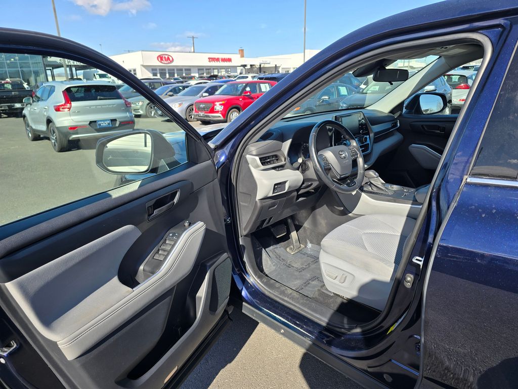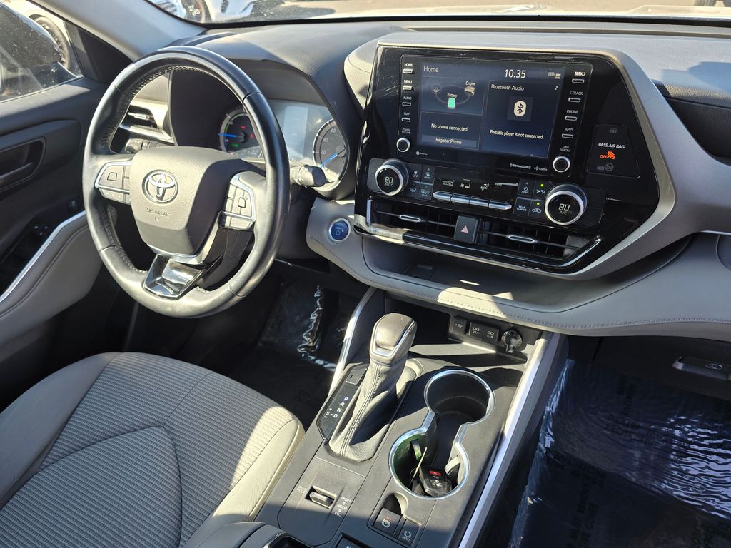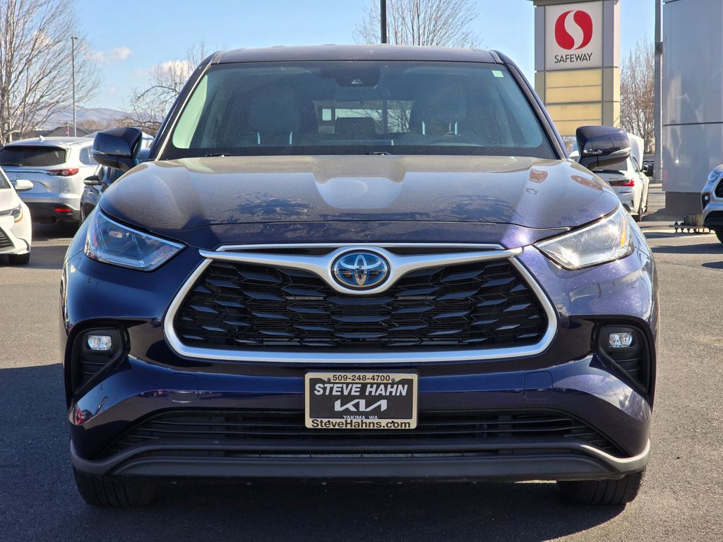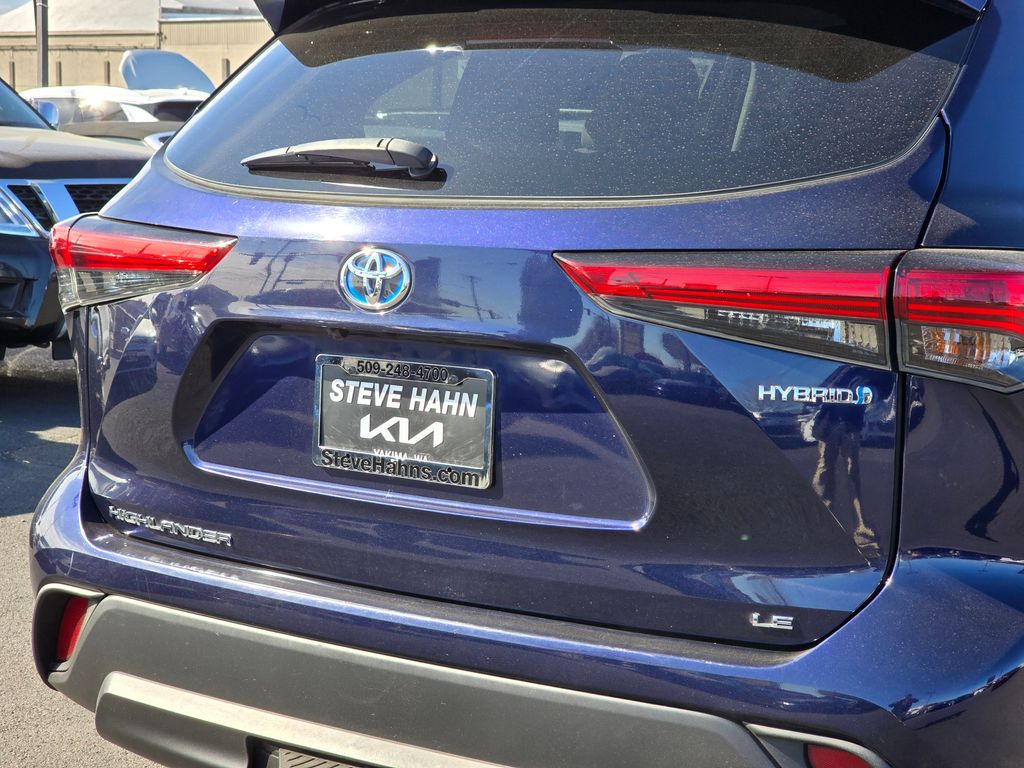CARFAX One-Owner. Blue 2021 Toyota Highlander Hybrid LE 2.5L I4 PDI Hybrid DOHC 16V LEV3-SULEV30 186hp eCVT AWD 4D Sport Utility 2.5L I4 PDI Hybrid DOHC 16V LEV3-SULEV30 186hp, 18" Painted Alloy Wheels, 3rd row seats: split-bench, 4-Wheel Disc Brakes, 6 Speakers, ABS brakes, Air Conditioning, Alloy wheels, AM/FM radio: SiriusXM, Apple CarPlay/Android Auto, Auto High-beam Headlights, Automatic temperature control, Axle Ratio TBD, Brake assist, Bumpers: body-color, Delay-off headlights, Driver door bin, Driver vanity mirror, Dual front impact airbags, Dual front side impact airbags, Electronic Stability Control, Emergency communication system: Safety Connect with 1-year trial, Exterior Parking Camera Rear, Fabric Seat Trim, Four wheel independent suspension, Front anti-roll bar, Front Bucket Seats, Front Center Armrest, Front dual zone A/C, Front fog lights, Front reading lights, Fully automatic headlights, Heated door mirrors, Illuminated entry, Knee airbag, Leather Shift Knob, Low tire pressure warning, Occupant sensing airbag, Outside temperature display, Overhead airbag, Overhead console, Panic alarm, Passenger door bin, Passenger vanity mirror, Power door mirrors, Power driver seat, Power Liftgate, Power steering, Power windows, Radio: Audio Plus (T1 Hi), Rear air conditioning, Rear anti-roll bar, Rear reading lights, Rear seat center armrest, Rear window defroster, Rear window wiper, Reclining 3rd row seat, Remote keyless entry, Security system, Speed control, Speed-sensing steering, Split folding rear seat, Spoiler, Steering wheel mounted audio controls, Telescoping steering wheel, Tilt steering wheel, Traction control, Trip computer, Turn signal indicator mirrors, Variably intermittent wipers, 2.5L I4 PDI Hybrid DOHC 16V LEV3-SULEV30 186hp.