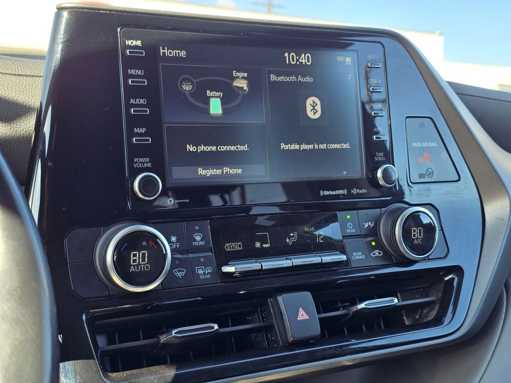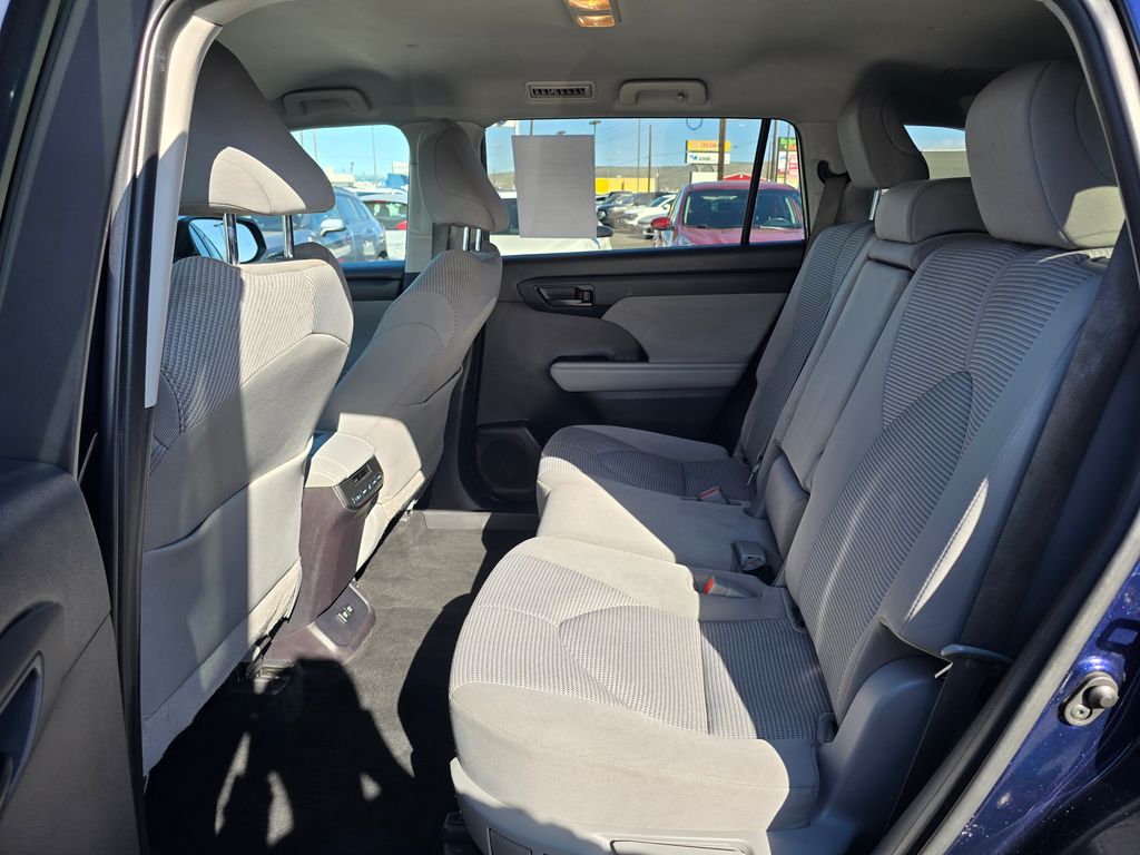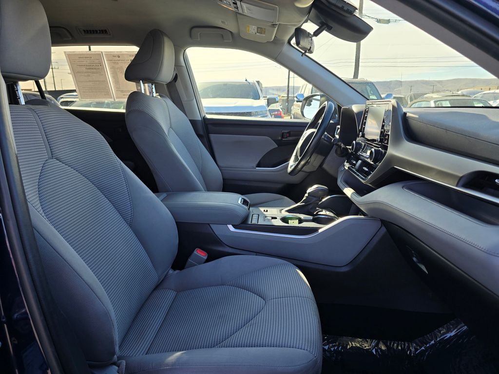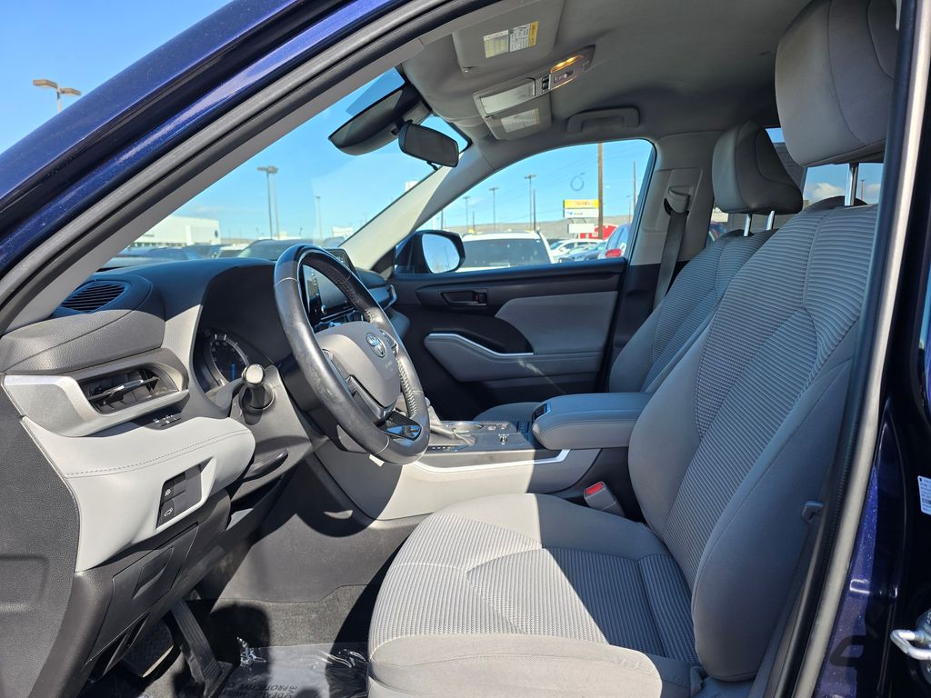 CARFAX One-Owner. Blue 2021 Toyota Highlander Hybrid LE 2.5L I4 PDI Hybrid DOHC 16V LEV3-SULEV30 186hp eCVT AWD 4D Sport Utility 2.5L I4 PDI Hybrid DOHC 16V LEV3-SULEV30 186hp, 18" Painted Alloy Wheels, 3rd row seats: split-bench, 4-Wheel Disc Brakes, 6 Speakers, ABS brakes, Air Conditioning, Alloy wheels, AM/FM radio: SiriusXM, Apple CarPlay/Android Auto, Auto High-beam Headlights, Automatic temperature control, Axle Ratio TBD, Brake assist, Bumpers: body-color, Delay-off headlights, Driver door bin, Driver vanity mirror, Dual front impact airbags, Dual front side impact airbags, Electronic Stability Control, Emergency communication system: Safety Connect with 1-year trial, Exterior Parking Camera Rear, Fabric Seat Trim, Four wheel independent suspension, Front anti-roll bar, Front Bucket Seats, Front Center Armrest, Front dual zone A/C, Front fog lights, Front reading lights, Fully automatic headlights, Heated door mirrors, Illuminated entry, Knee airbag, Leather Shift Knob, Low tire pressure warning, Occupant sensing airbag, Outside temperature display, Overhead airbag, Overhead console, Panic alarm, Passenger door bin, Passenger vanity mirror, Power door mirrors, Power driver seat, Power Liftgate, Power steering, Power windows, Radio: Audio Plus (T1 Hi), Rear air conditioning, Rear anti-roll bar, Rear reading lights, Rear seat center armrest, Rear window defroster, Rear window wiper, Reclining 3rd row seat, Remote keyless entry, Security system, Speed control, Speed-sensing steering, Split folding rear seat, Spoiler, Steering wheel mounted audio controls, Telescoping steering wheel, Tilt steering wheel, Traction control, Trip computer, Turn signal indicator mirrors, Variably intermittent wipers, 2.5L I4 PDI Hybrid DOHC 16V LEV3-SULEV30 186hp.