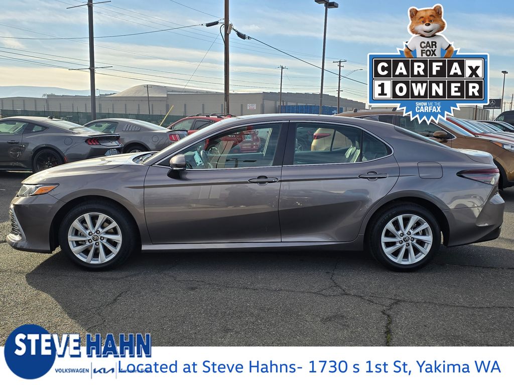 CARFAX One-Owner. Clean CARFAX. Gray 2024 Toyota Camry LE 2.5L I4 DOHC 16V 8-Speed Automatic AWD 4D Sedan Black Cloth, 4-Wheel Disc Brakes, 6 Speakers, ABS brakes, Air Conditioning, Alloy wheels, AM/FM radio: SiriusXM, Apple CarPlay/Android Auto, Auto High-beam Headlights, Automatic temperature control, Brake assist, Bumpers: body-color, Delay-off headlights, Driver door bin, Driver vanity mirror, Dual front impact airbags, Dual front side impact airbags, Electronic Stability Control, Emergency communication system: Safety Connect (1-year trial), Exterior Parking Camera Rear, Fabric Seat Trim, Four wheel independent suspension, Front anti-roll bar, Front Bucket Seats, Front Center Armrest, Front dual zone A/C, Front reading lights, Fully automatic headlights, Illuminated entry, Knee airbag, Low tire pressure warning, Occupant sensing airbag, Outside temperature display, Overhead airbag, Overhead console, Panic alarm, Passenger door bin, Passenger vanity mirror, Power door mirrors, Power driver seat, Power steering, Power windows, Radio data system, Radio: Audio, Rear anti-roll bar, Rear seat center armrest, Rear side impact airbag, Rear window defroster, Remote keyless entry, Security system, Speed control, Speed-sensing steering, Split folding rear seat, Steering wheel mounted audio controls, Tachometer, Telescoping steering wheel, Tilt steering wheel, Traction control, Trip computer, Variably intermittent wipers, Wheels: 17" x 7.5J Alloy, Black Cloth.