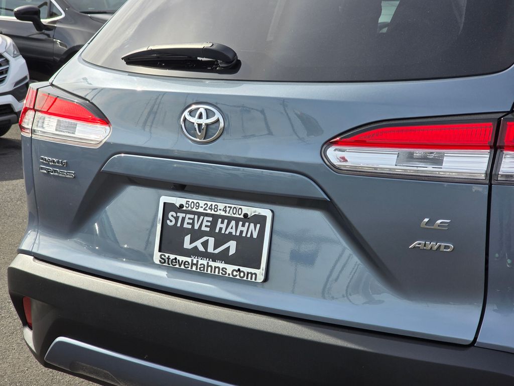 CARFAX One-Owner. Clean CARFAX. Gray 2024 Toyota Corolla Cross LE 2.0L I4 PDI DOHC 16V LEV3-SULEV30 169hp CVT AWD 4D Sport Utility 17" Silver Alloy Wheels, 4-Wheel Disc Brakes, 4.014 Axle Ratio, 6 Speakers, ABS brakes, Air Conditioning, Alloy wheels, AM/FM radio: SiriusXM, Auto High-beam Headlights, Automatic temperature control, Brake assist, Bumpers: body-color, Delay-off headlights, Driver door bin, Driver vanity mirror, Dual front impact airbags, Dual front side impact airbags, Electronic Stability Control, Emergency communication system: Safety Connect (10-year trial), Exterior Parking Camera Rear, Fabric Seat Trim, Four wheel independent suspension, Front anti-roll bar, Front Bucket Seats, Front Center Armrest, Front reading lights, Fully automatic headlights, Heated door mirrors, Illuminated entry, Knee airbag, Leather steering wheel, Low tire pressure warning, Occupant sensing airbag, Outside temperature display, Overhead airbag, Panic alarm, Passenger door bin, Passenger vanity mirror, Power door mirrors, Power steering, Power windows, Radio data system, Radio: 8" Touch-Screen Display Audio, Rear anti-roll bar, Rear side impact airbag, Rear window defroster, Rear window wiper, Remote keyless entry, Speed control, Split folding rear seat, Spoiler, Steering wheel mounted audio controls, Tachometer, Telescoping steering wheel, Tilt steering wheel, Traction control, Trip computer, Turn signal indicator mirrors, Variably intermittent wipers.